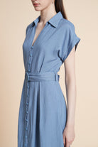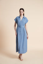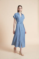 فستان ميدي بأكمام قصيرة بتصميم كلاسيكي