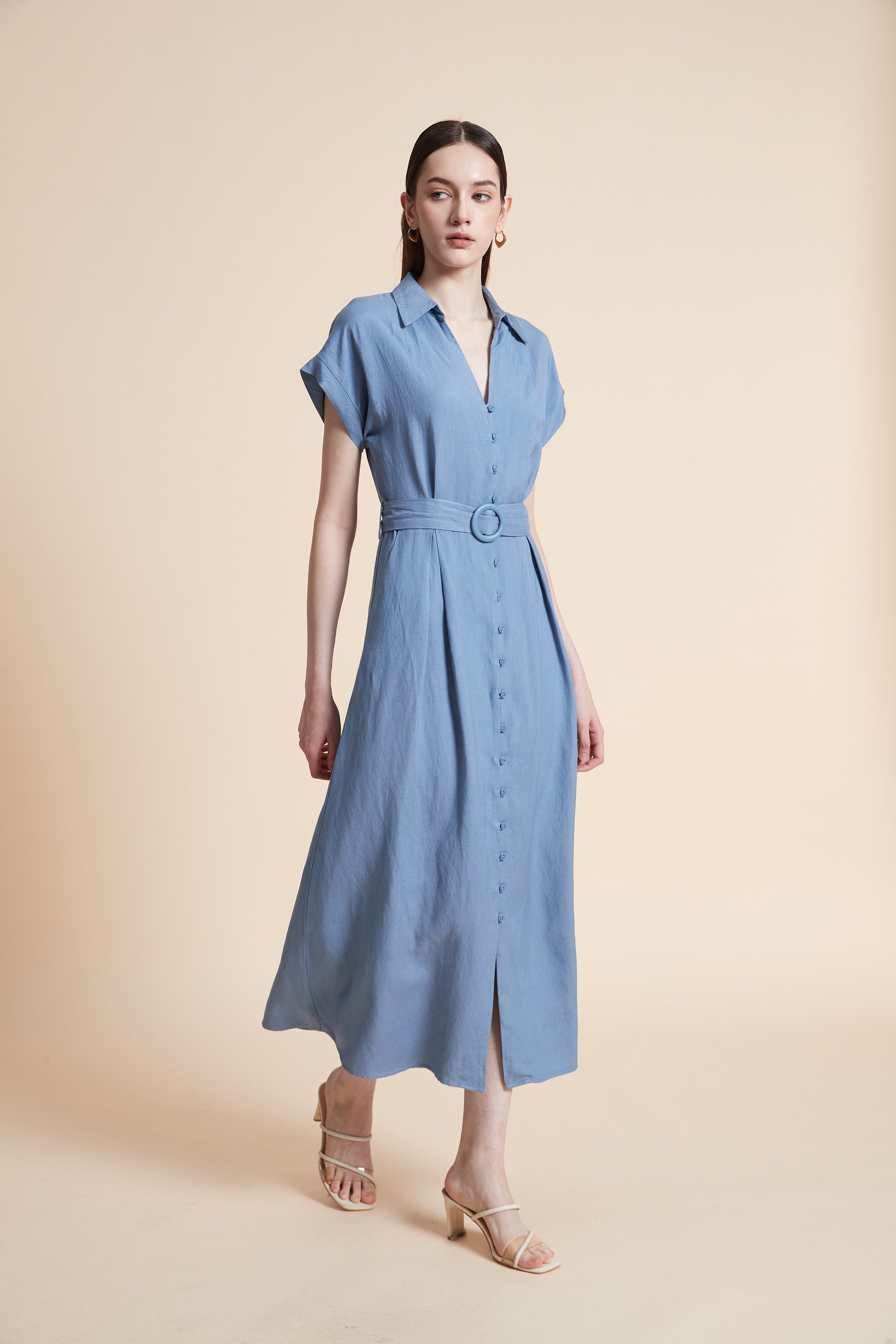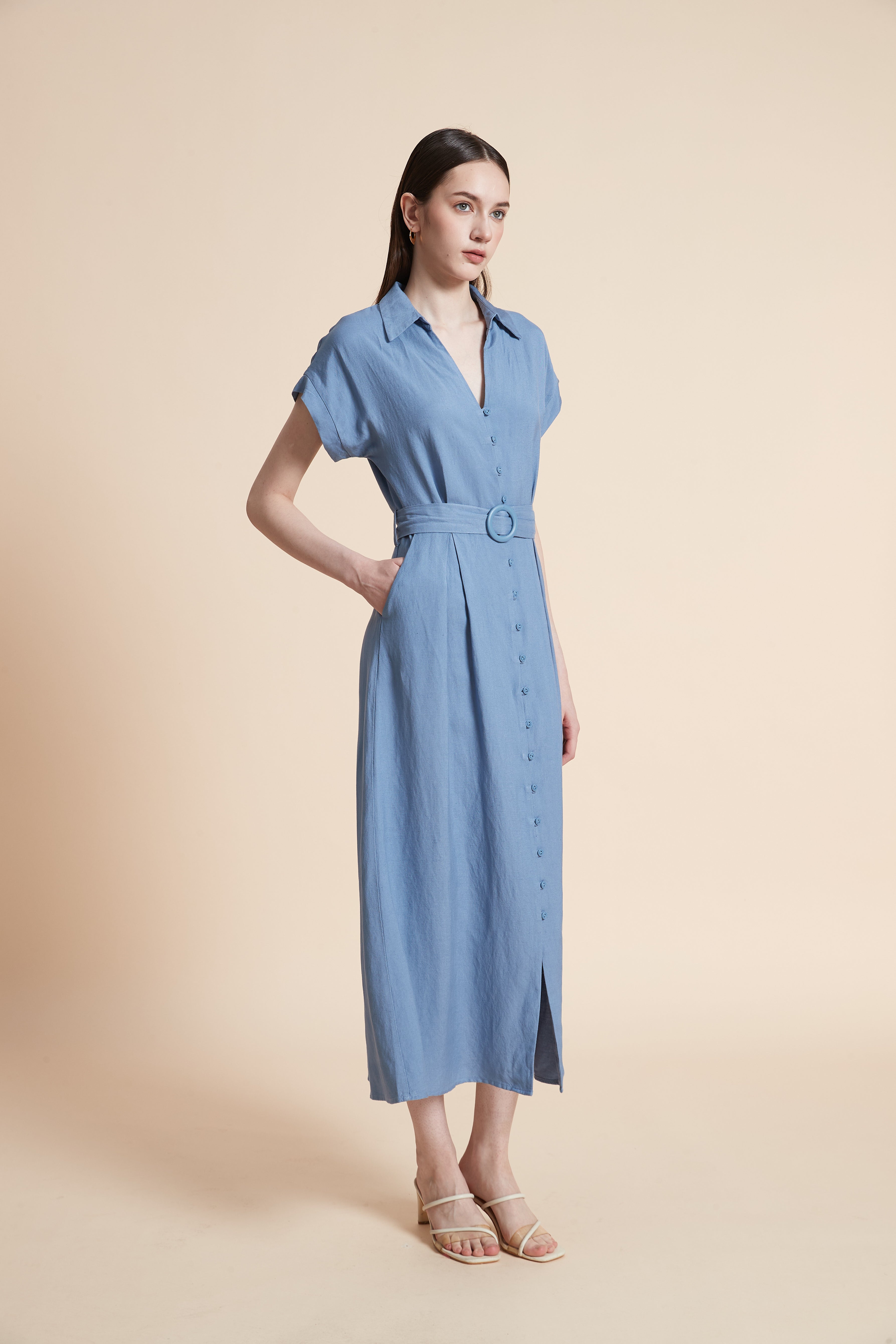 يمكنك تنسيق هذه القطعة بسهولة مع حذاء بكعب عالٍ لمظهر رسمي مناسب لأجواء العمل، أو مع حذاء مسطح وصندل مفتوح لنزهات نهاية الأسبوع المريحة. أضيفي حقيبة يد متوسطة الحجم وساعة يد ناعمة لإكمال المظهر بشكل متناسق، كما يمكن إضافة حزام رفيع إذا رغبتِ في تحديد الخصر.