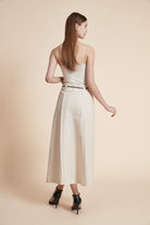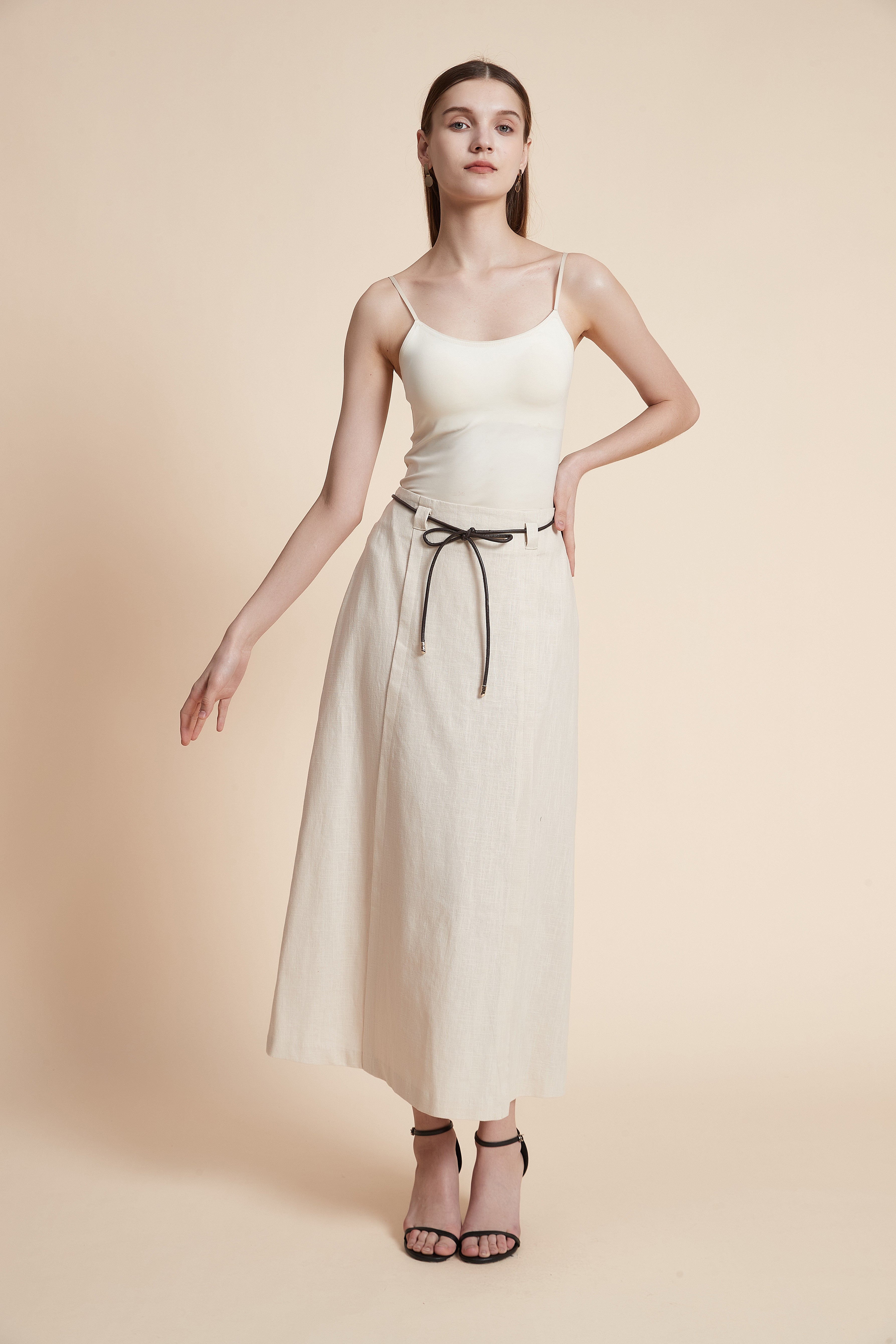 نسقي هذه التنورة الميدي مع بلوزة حريرية أنيقة وكعب عالٍ لمظهر مكتبي راقٍ، أو ارتديها مع تيشيرت قطني وحذاء رياضي لإطلالة عصرية ومريحة. أضيفي جاكيت دنيم أو كارديجان خفيف لإكمال مظهرك في الأيام الباردة.- غسل آلي بماء بارد.