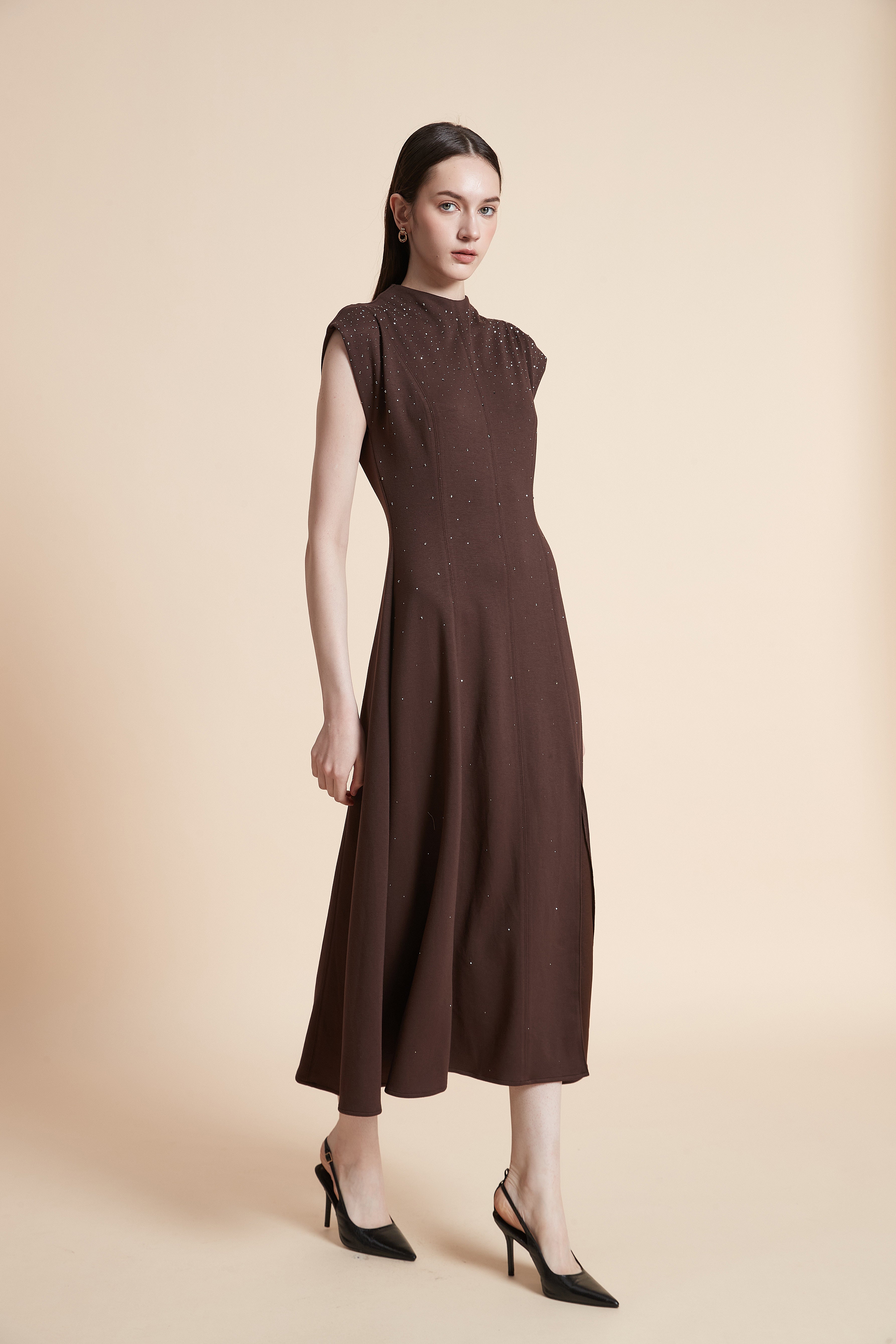 فستان ميدي بدون أكمام ناعم