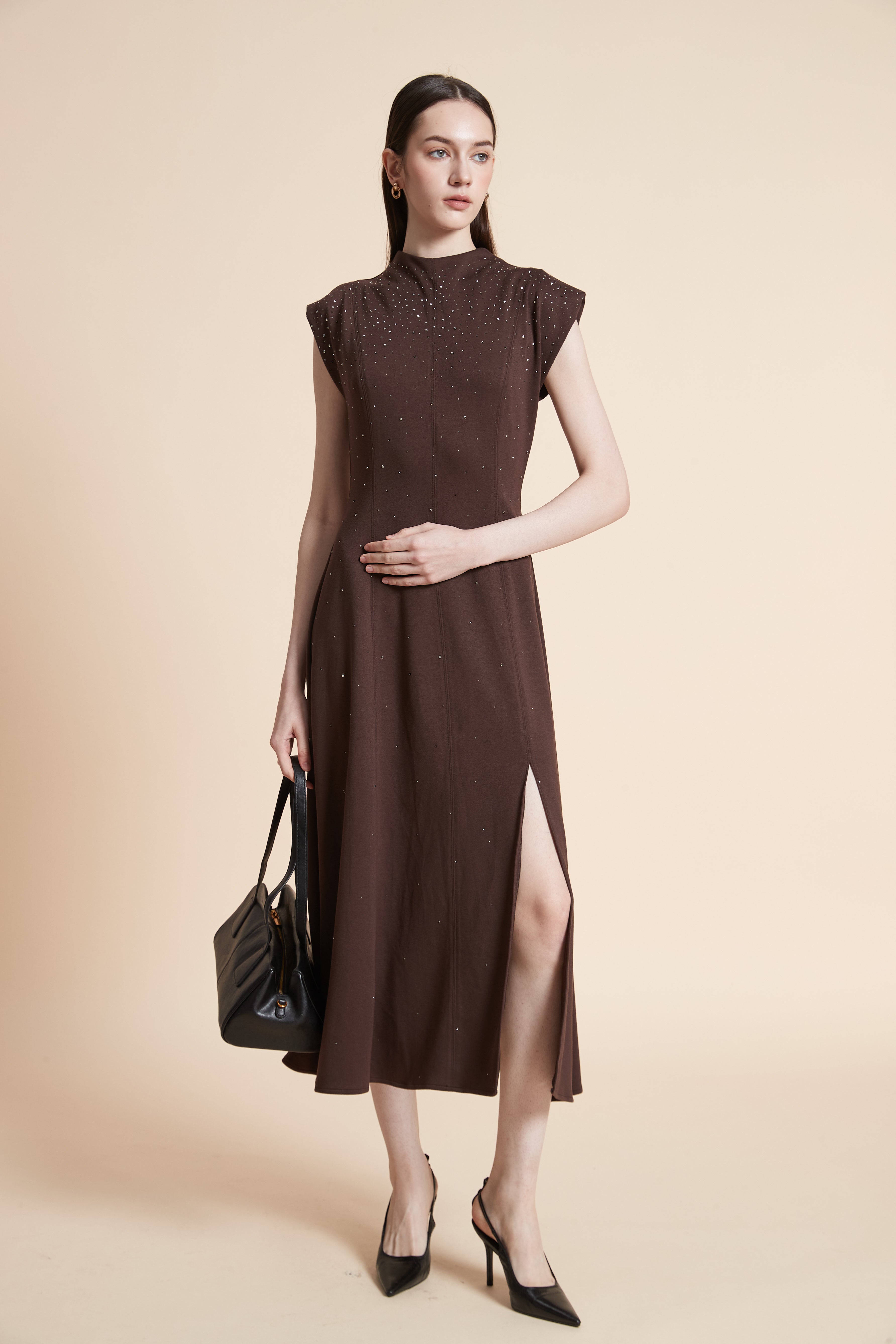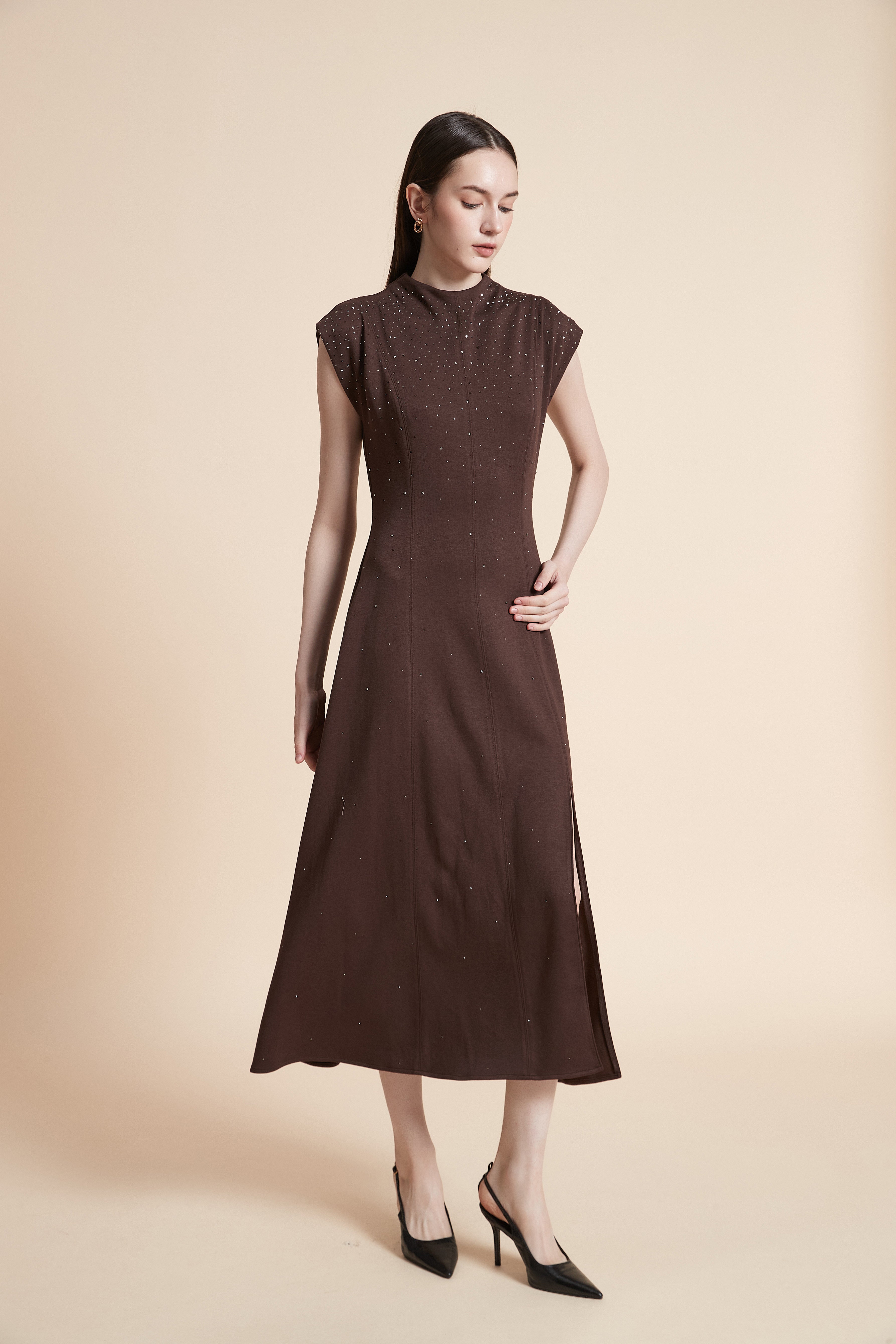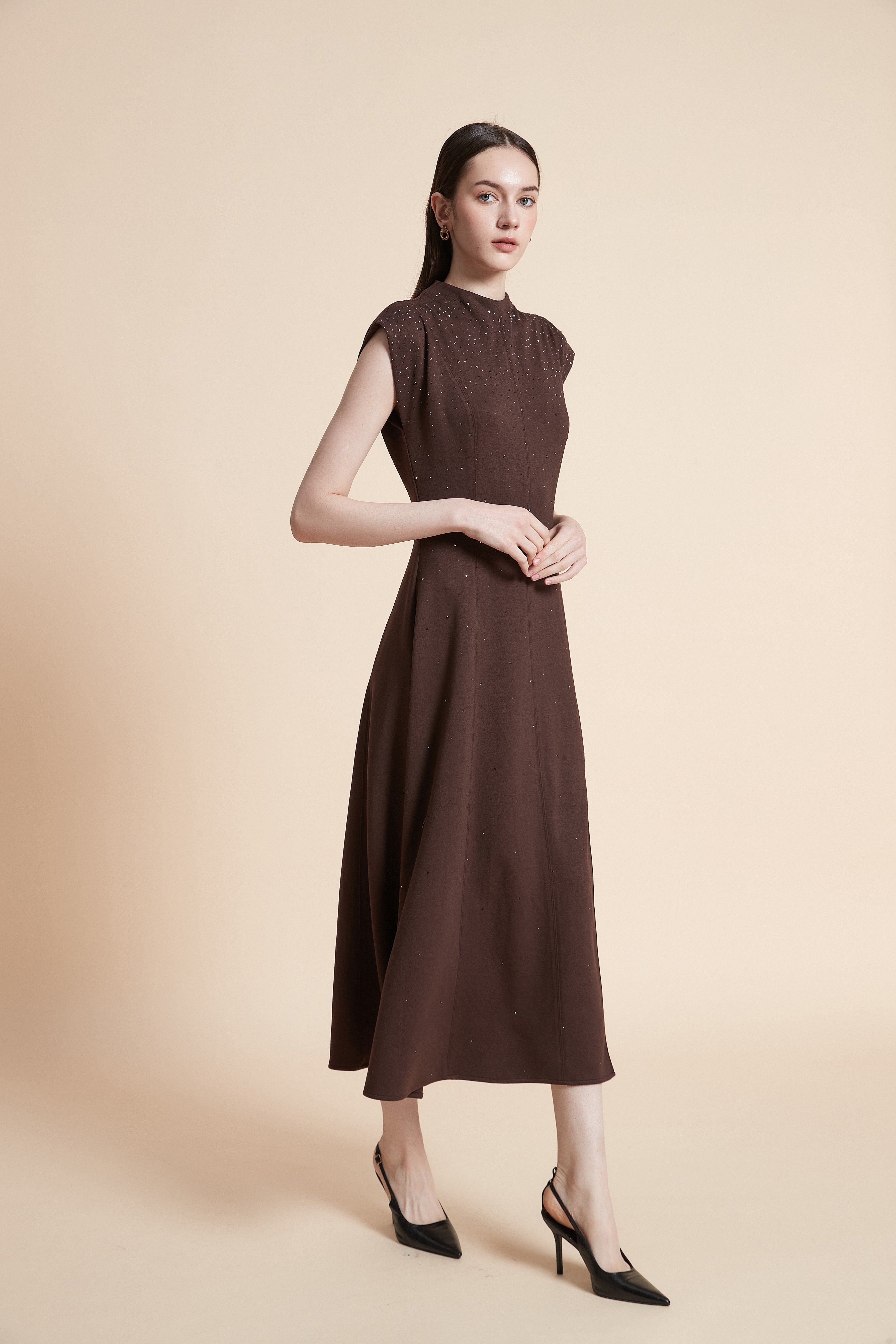 استمتعي بفستان ميدي أنيق بتصميم ناعم ولمسة لامعة خفيفة يمنحك إطلالة راقية تجمع بين البساطة والفخامة. مناسب للمناسبات المسائية والتجمعات الخاصة، ويبرز أنوثتك بأسلوب هادئ وعصري.