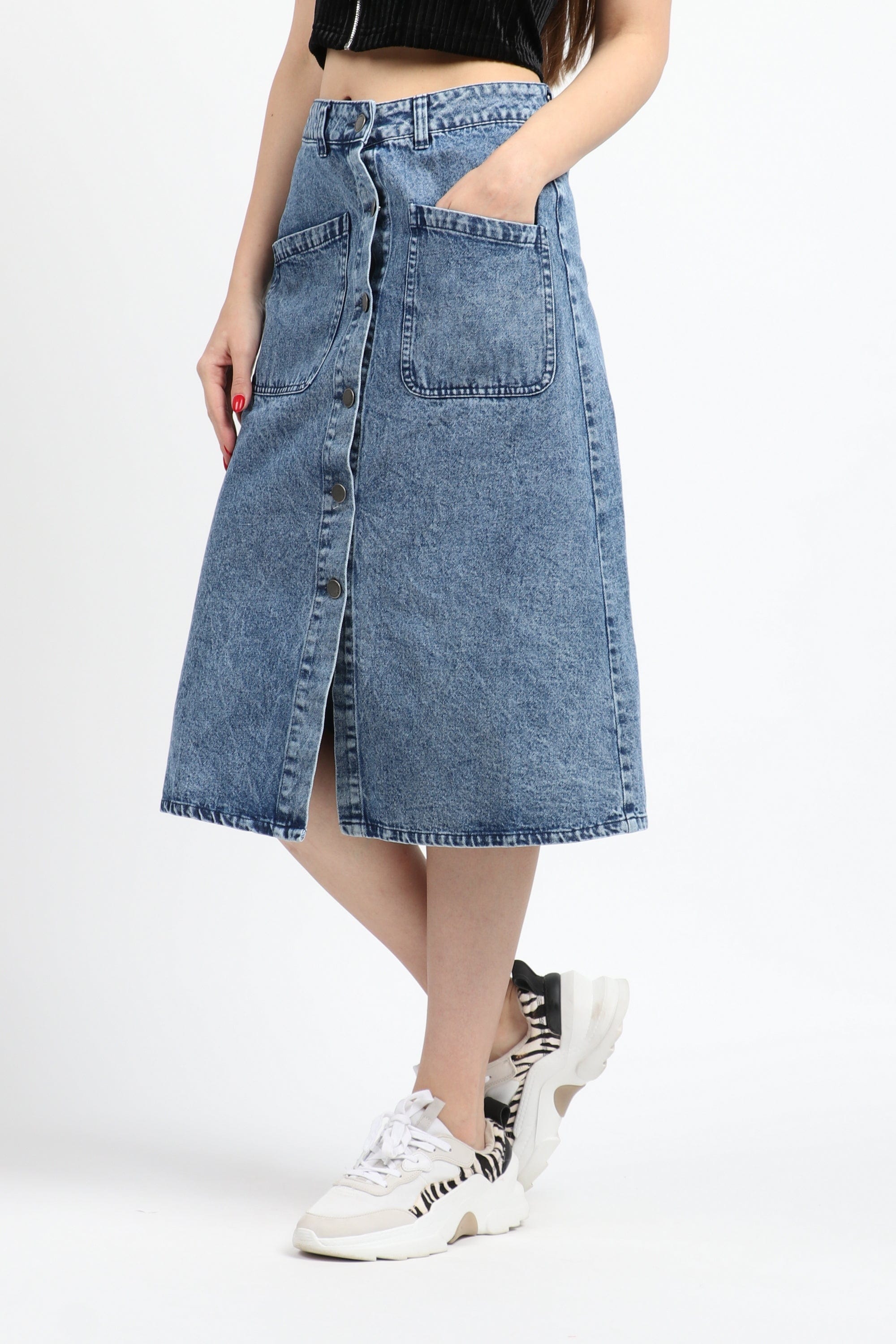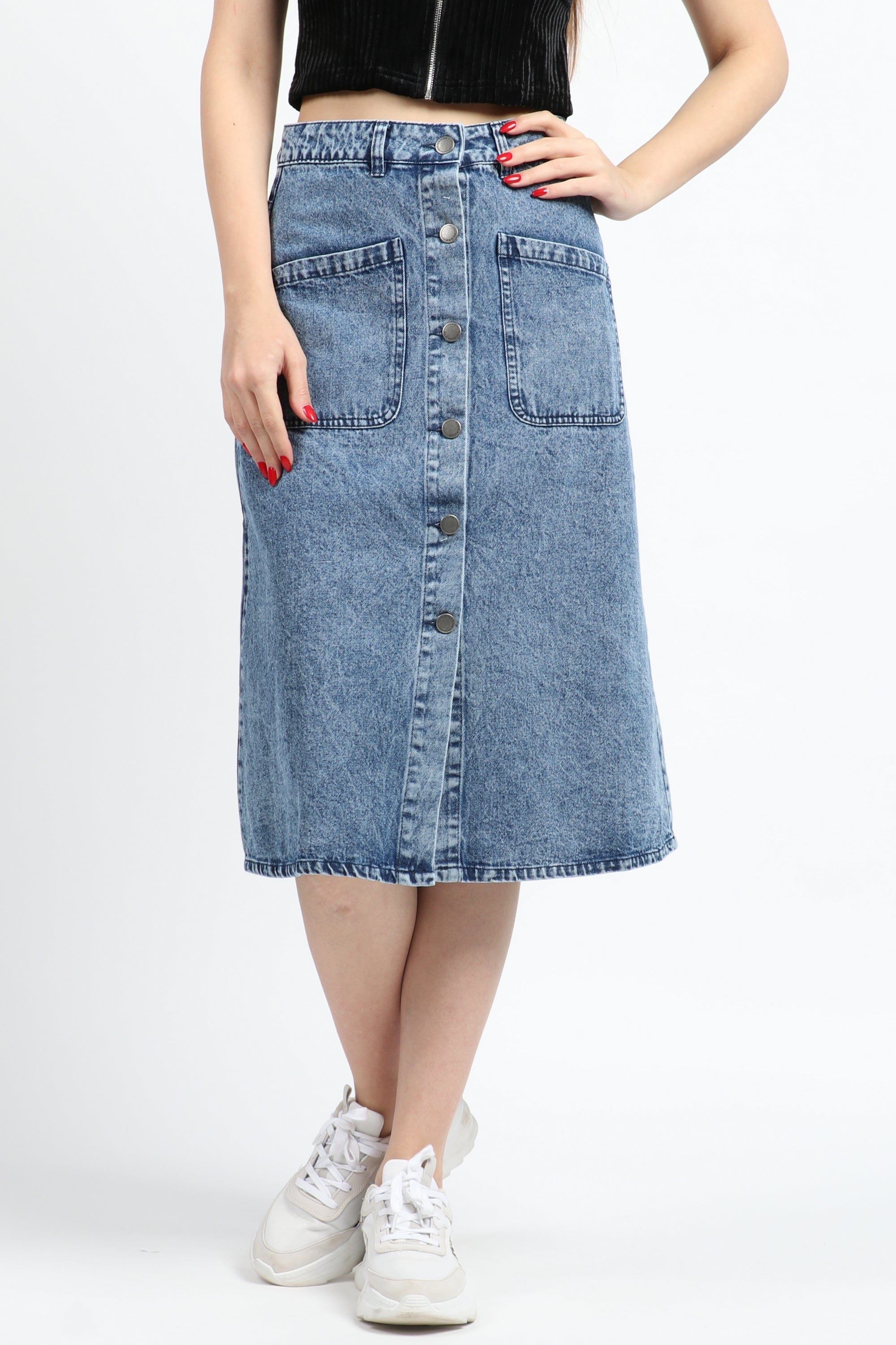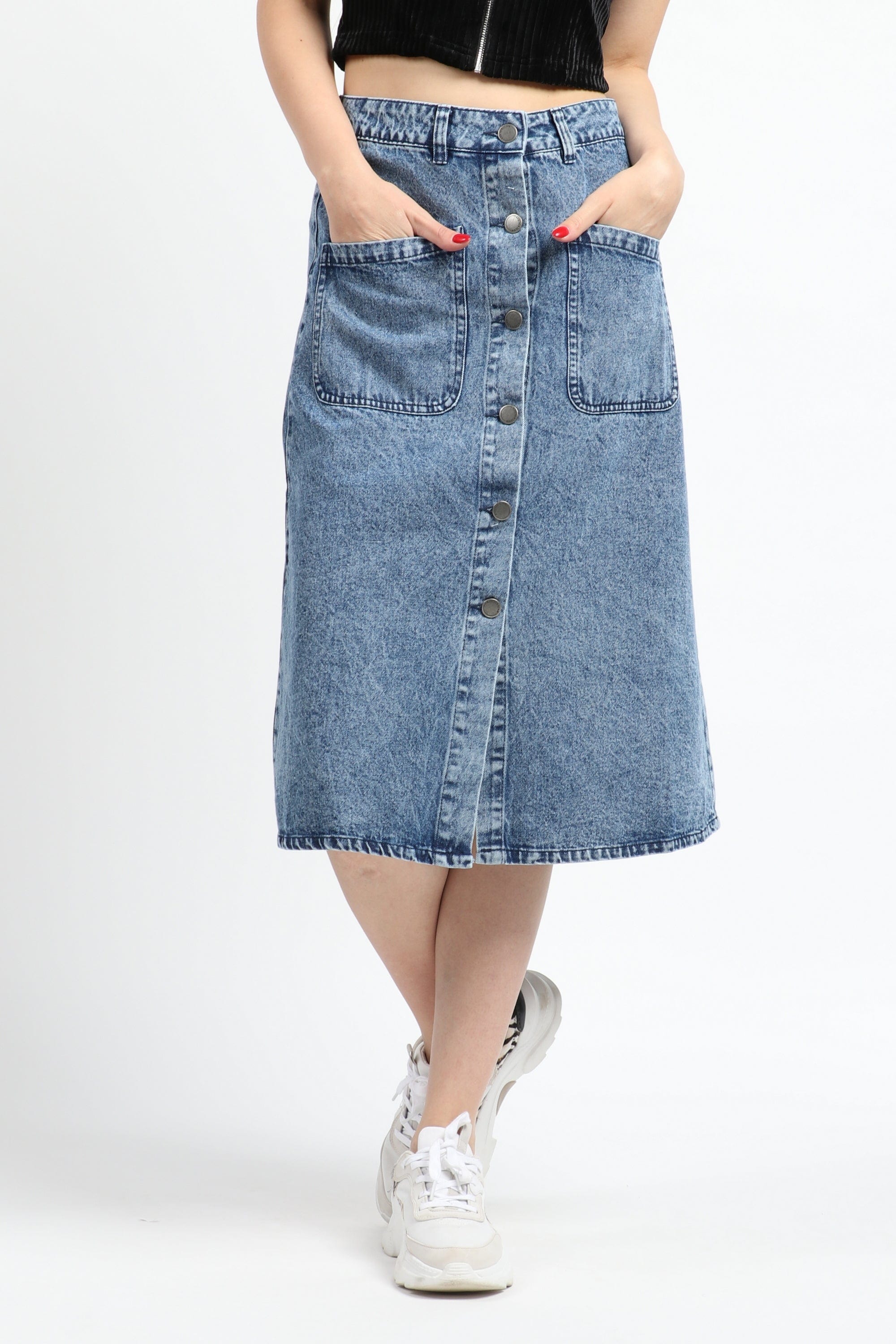 Stand out for a modern and elegant look with a midi denim skirt with front pockets and buttons from Kitschen. This skirt is available in a variety of colours including elegant black and attractive blue. This piece is designed with great elegance and its meticulous details make it perfect for any occasion. Front pockets and buttons add a modern and functional touch to the skirt. Style it with a chic blouse and high heels for a feminine look. Get now a denim skirt with front pockets and buttons from Kitschen Get ready for a great look. Order it now and enjoy the best fashion from Fashion Saudi Arabia. Product Number: 66-0021