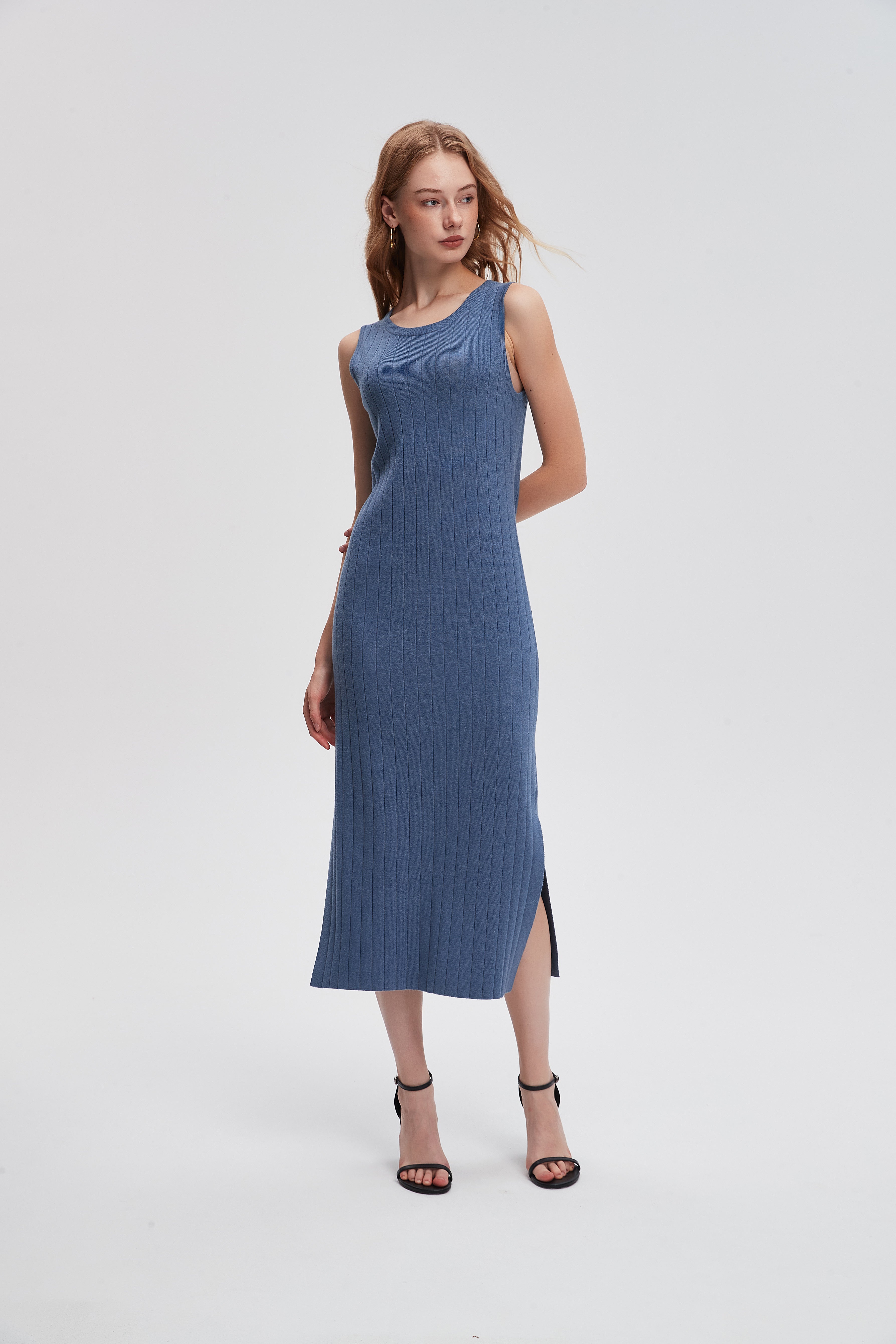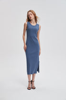 This sleek blue plain midi slit dress delivers a confident, modern silhouette—perfect for the fashion-forward woman. Designed in a sleeveless bodycon cut with a round neck and fitted mold, the dress sculpts the figure while the midi length and side slit create elegant movement and easy stride. Crafted from a medium-weight stretch fabric, it offers comfortable support and shape retention for all-day wear without restrictive layering. The unprinted solid color makes it a versatile closet staple that transitions effortlessly from casual brunches to evening plans; layer a lightweight blazer for smart-casual polish or pair with sneakers and a denim jacket for relaxed daytime styling. Pocketless and beltless for a clean, streamlined look, this Menta piece is available at Fashion SA — add this essential to your rotation today.