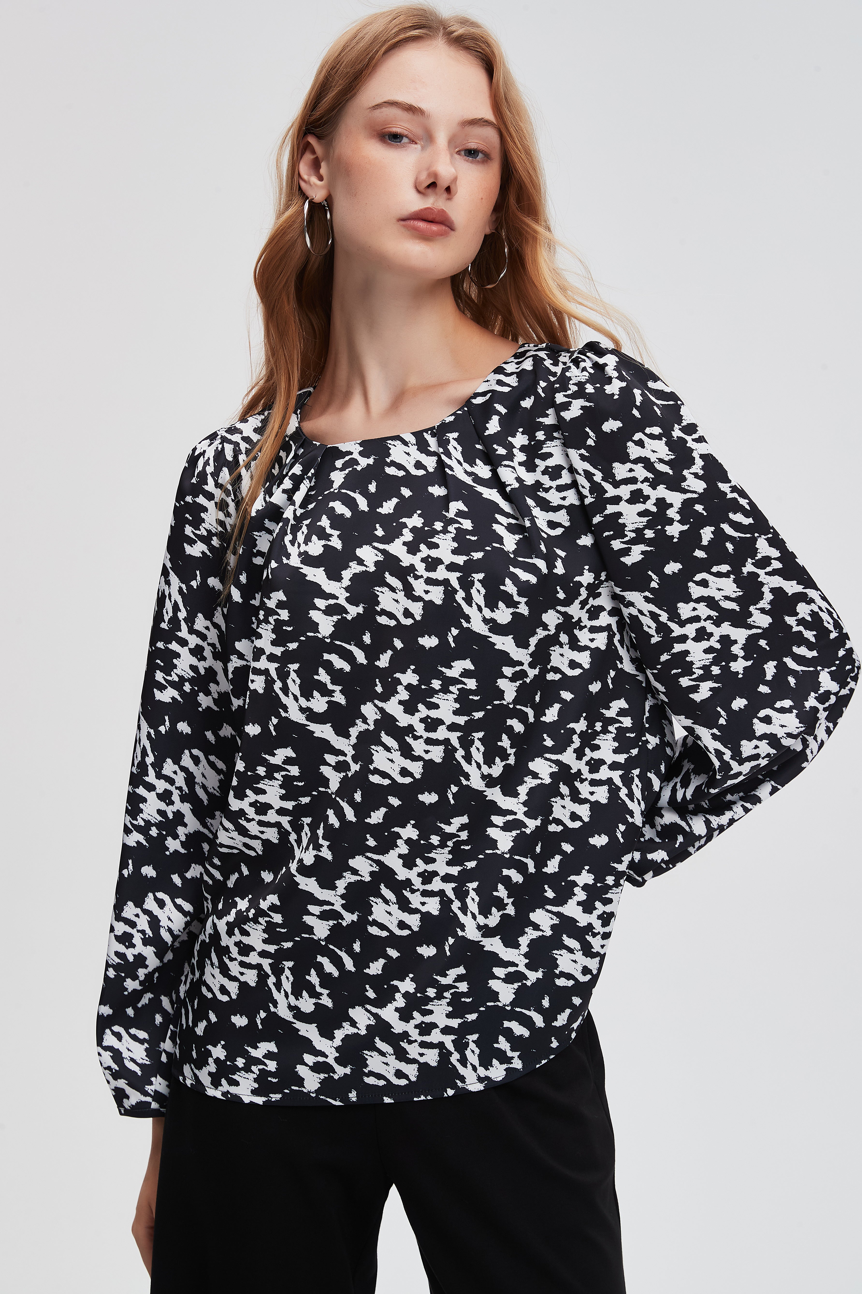 This long-sleeved patterned blouse adds a touch of elegance and comfort to your everyday look. Featuring a unique design that combines elegance and simplicity, this blouse is an ideal choice for a variety of occasions. Its soft fabric provides all-day comfort, while the attractive patterns add an artistic touch to your look. You can easily pair it with jeans or a skirt for a stunning look. Don't miss out—get your patterned blouse today and be the center of attention! Order it online now. Product number: ma0146w254jn