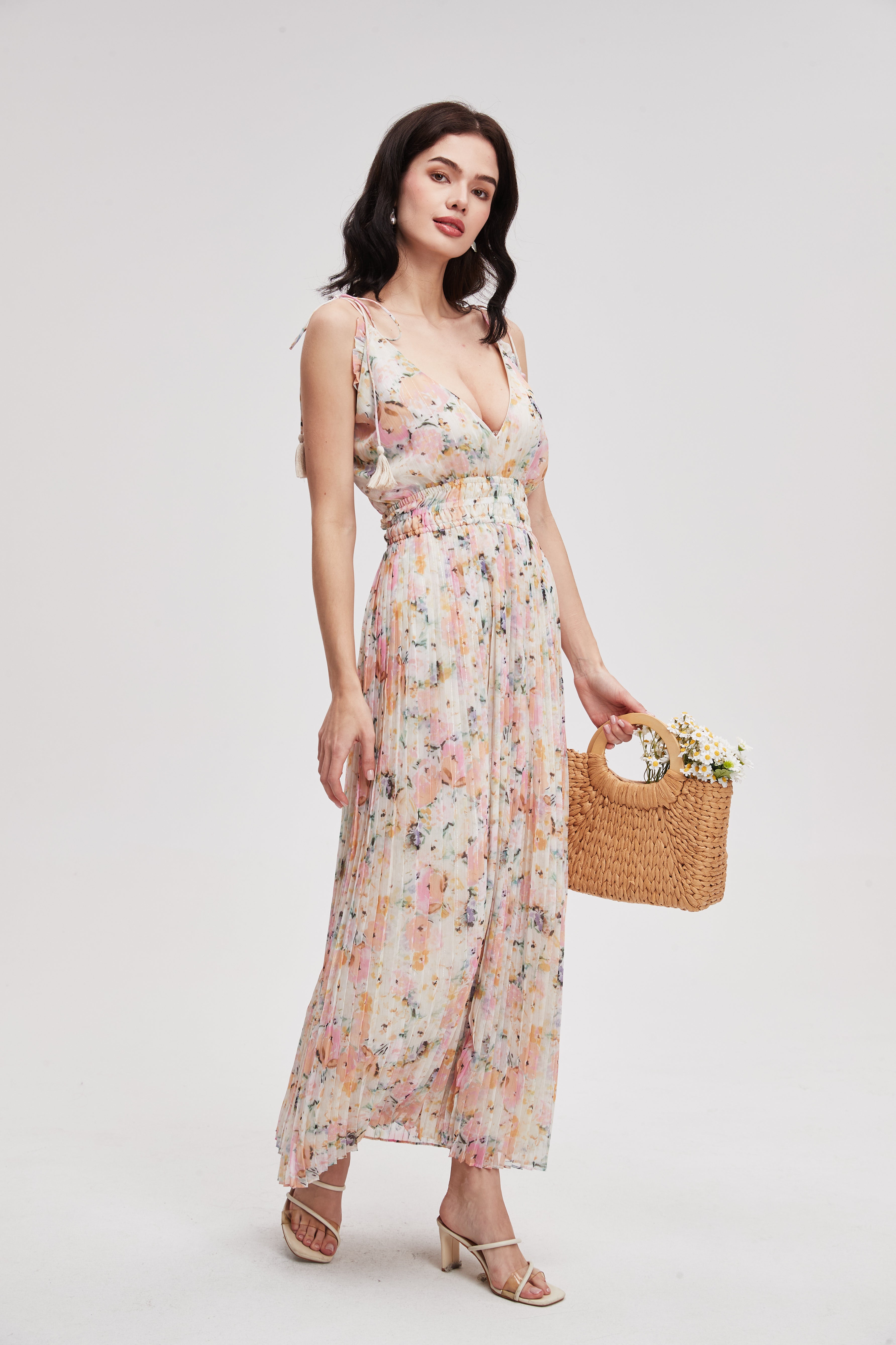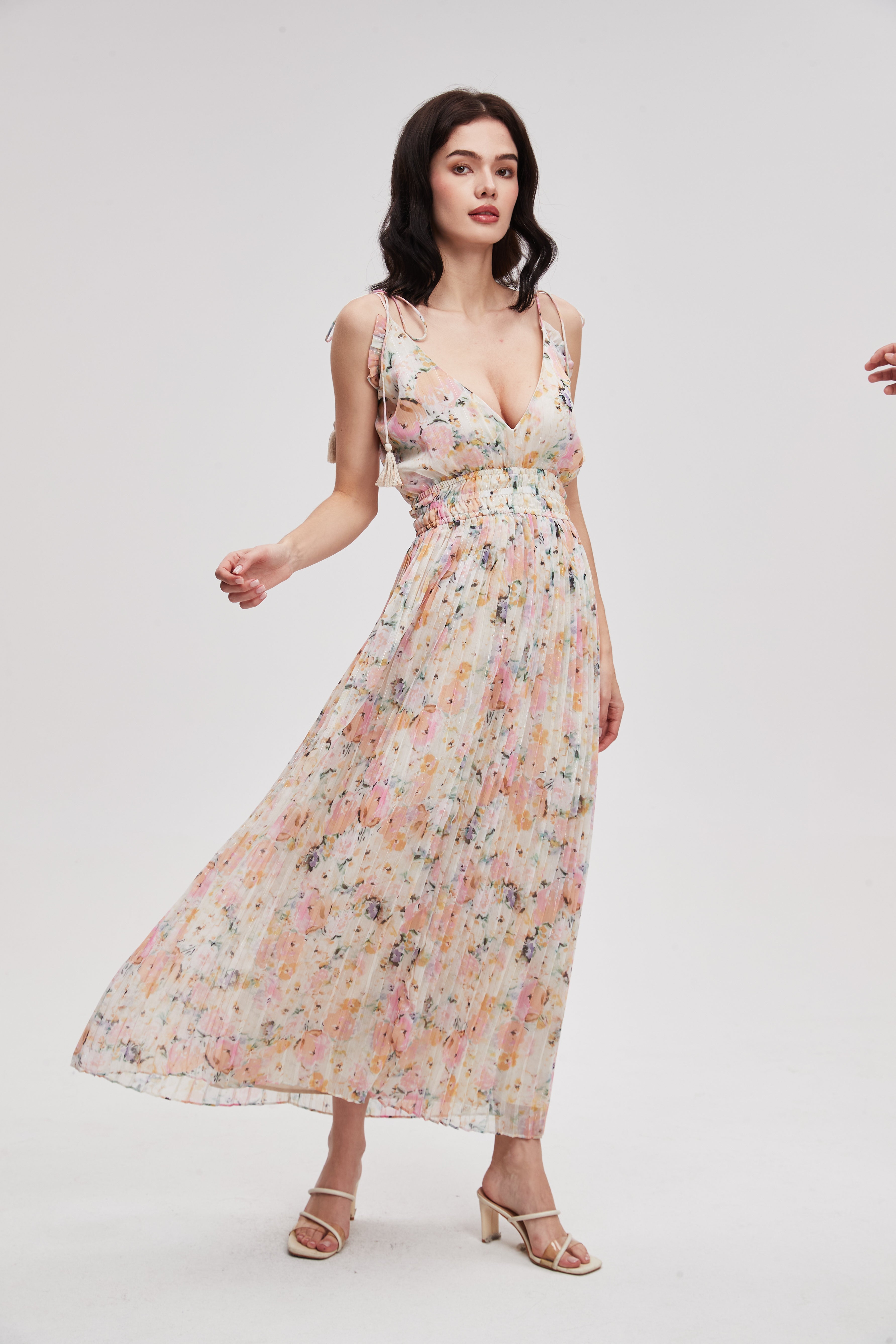 The fabric offers a soft touch against the skin, ensuring comfort throughout the day. It provides a beautiful drape that enhances the maxi silhouette without feeling heavy. Designed to maintain its shape and smooth texture over time, this material combines durability with a lightweight feel. It resists wrinkling effectively, making it a practical choice for travel or long events where looking fresh matters.
