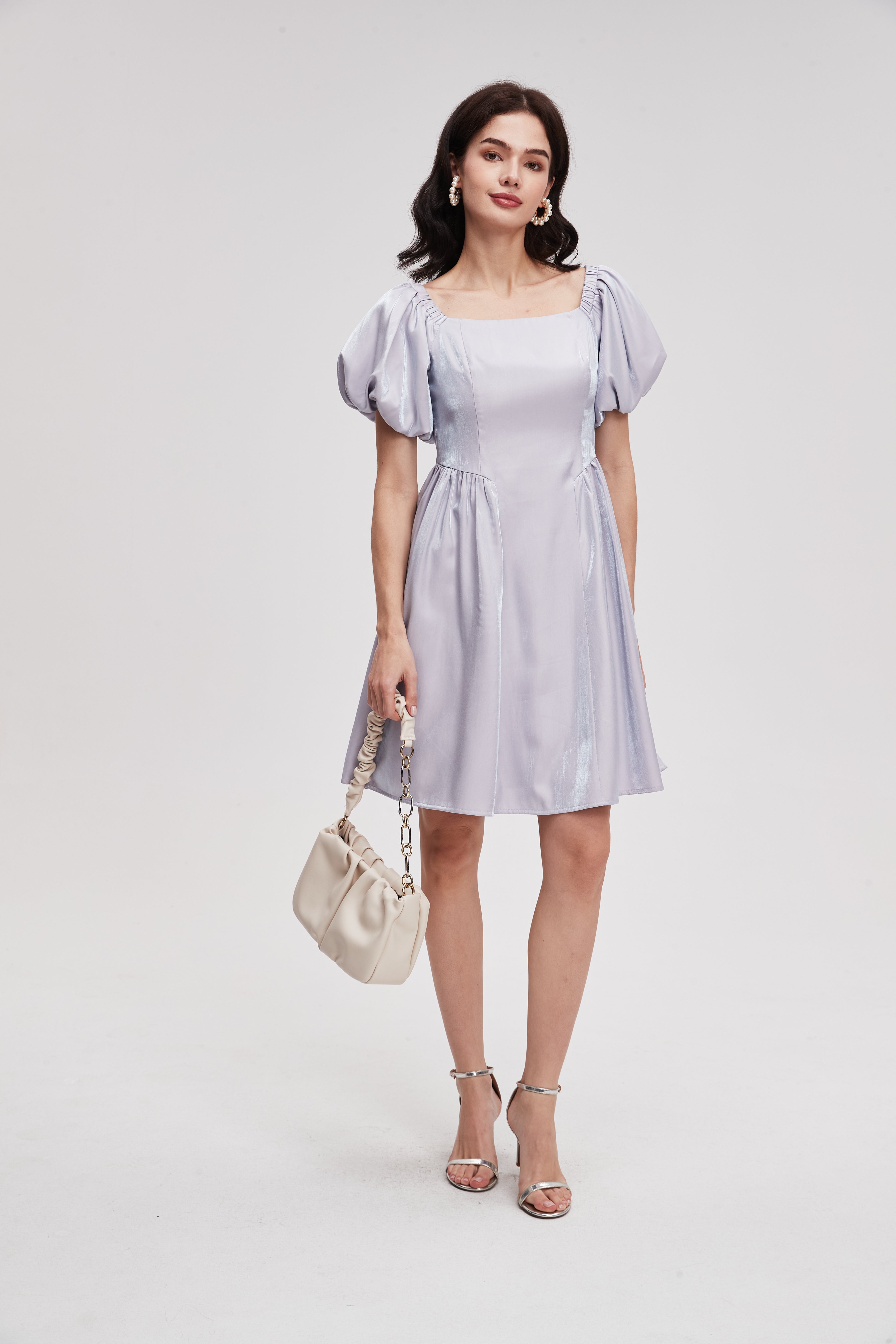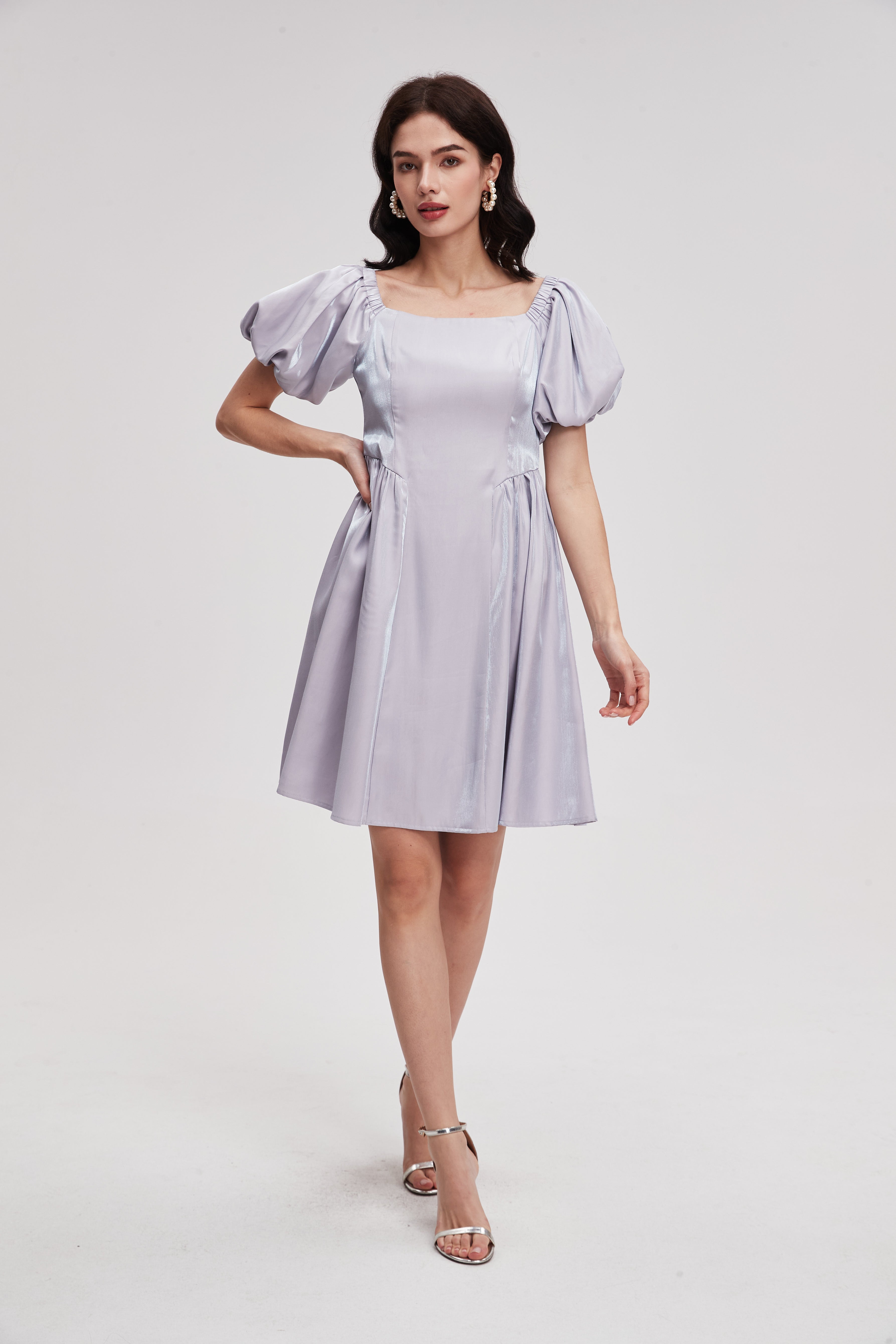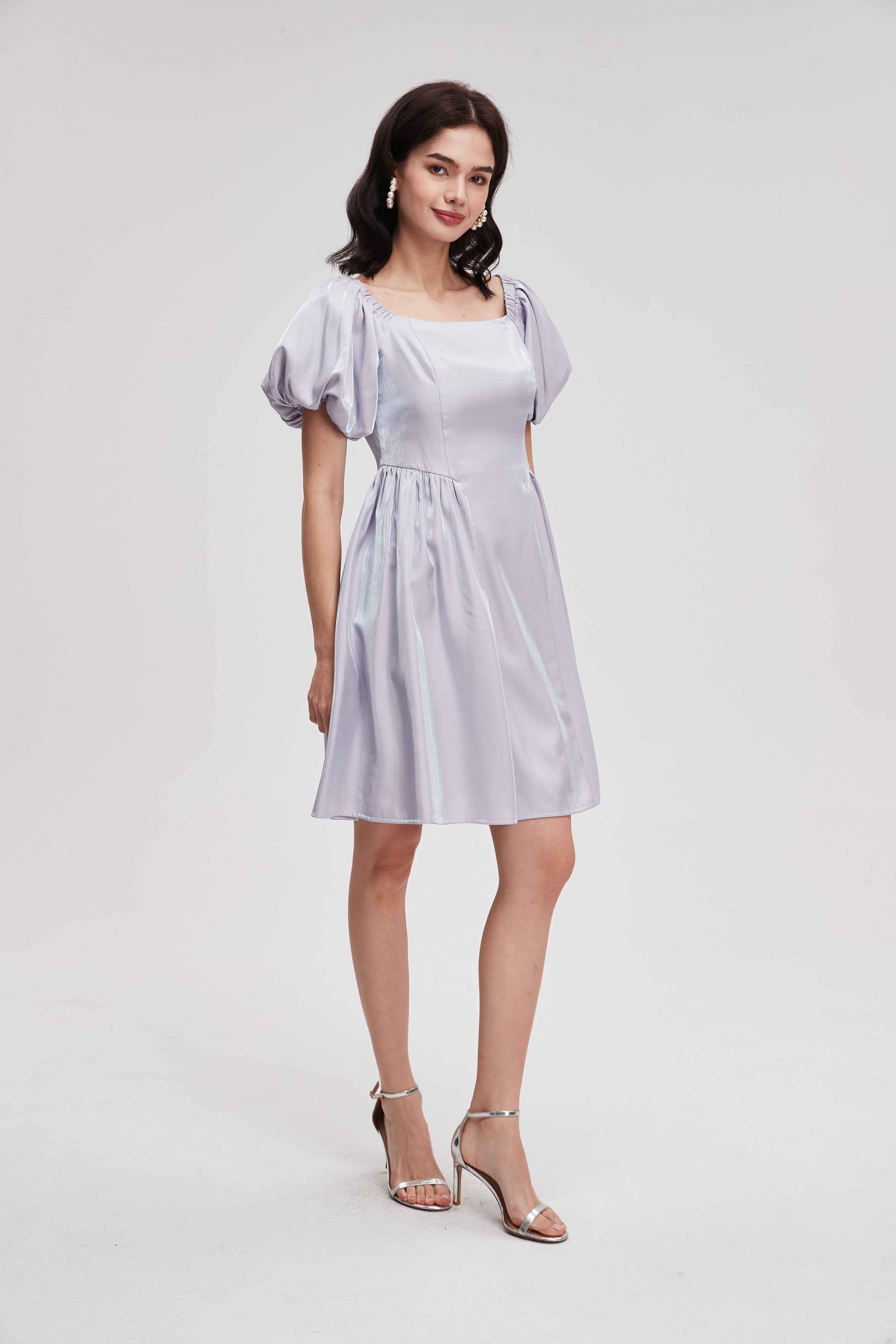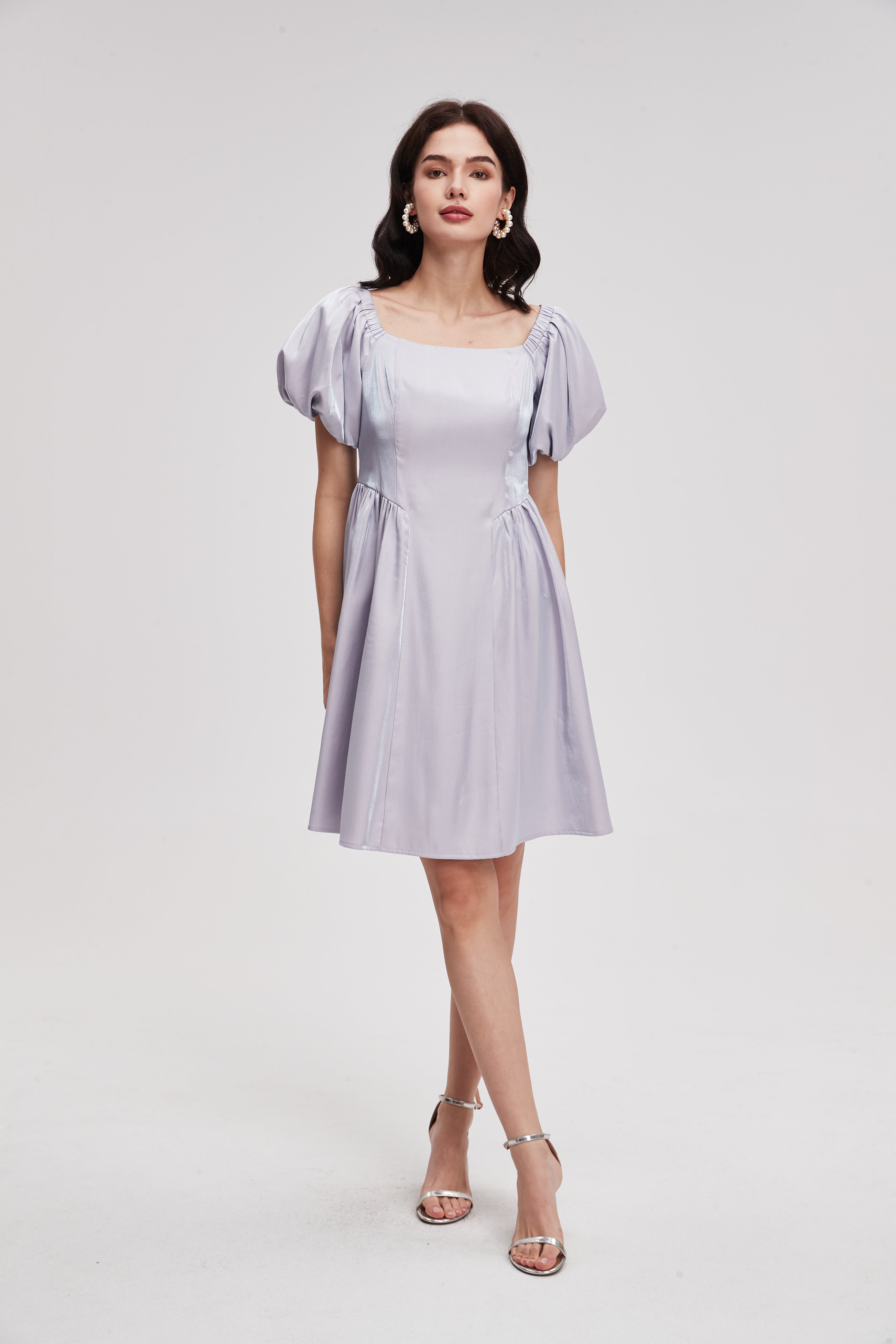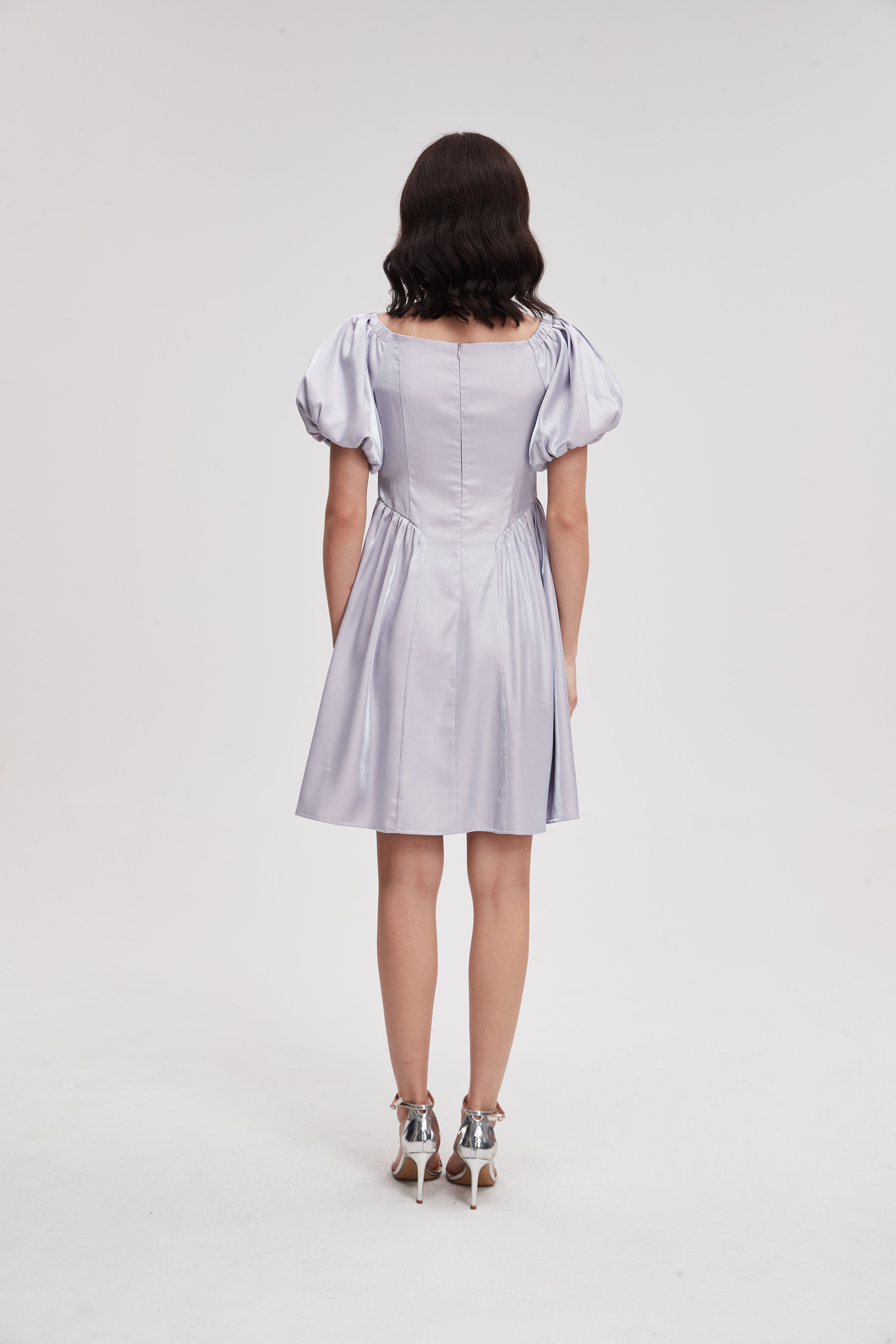 Plain Short Dress with Puff Sleeves