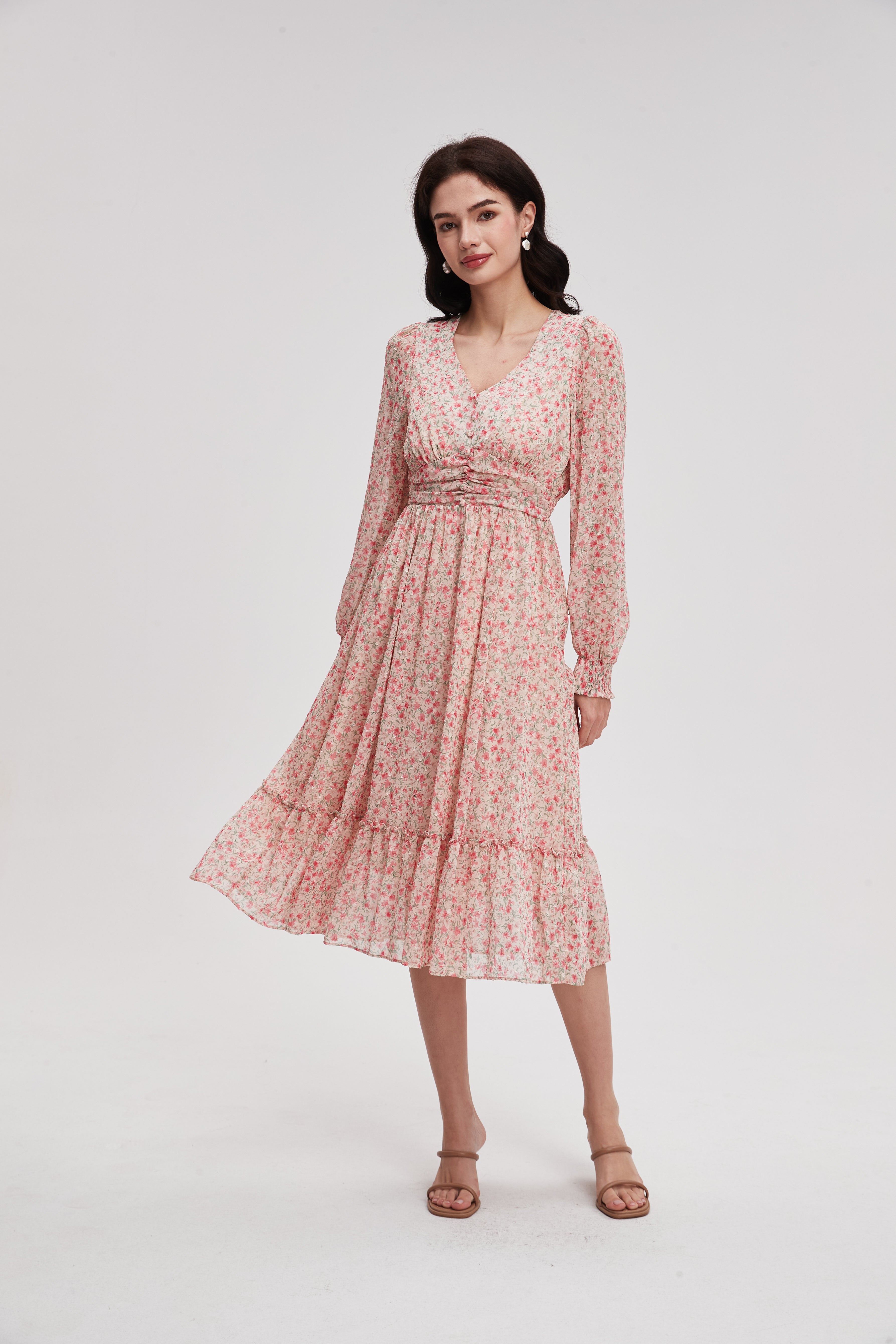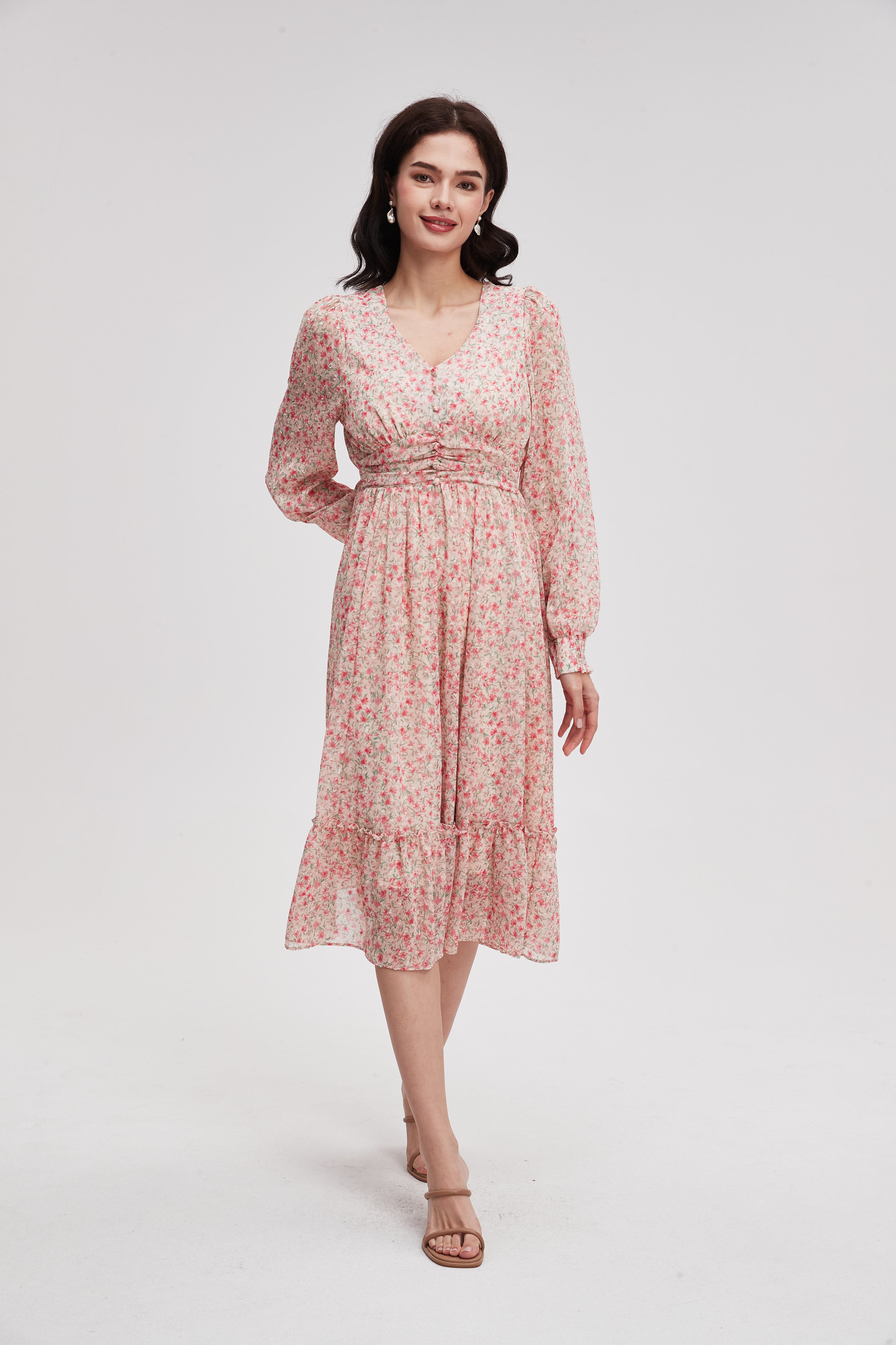 Long Sleeve Printed Midi Dress
