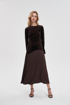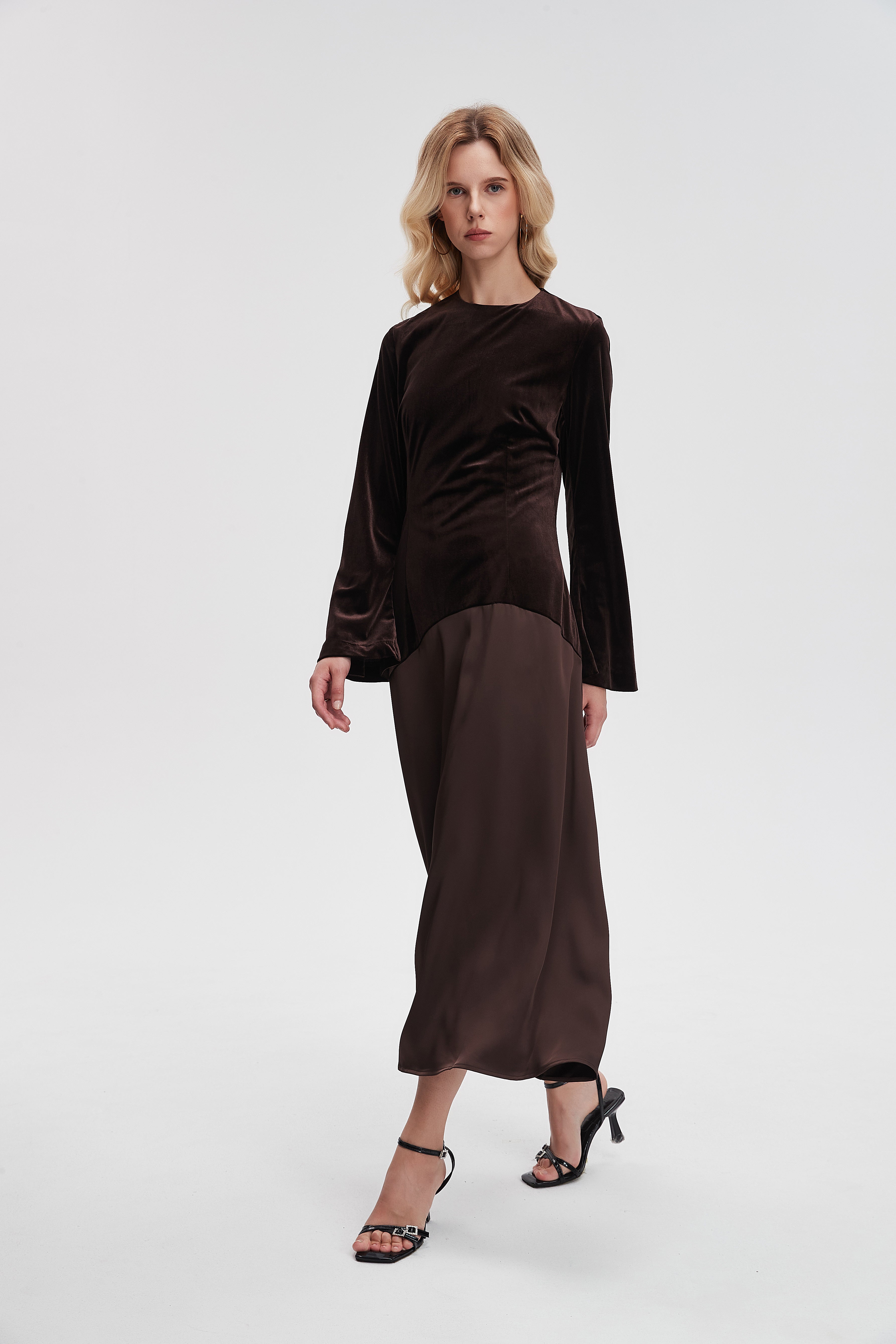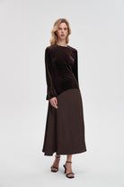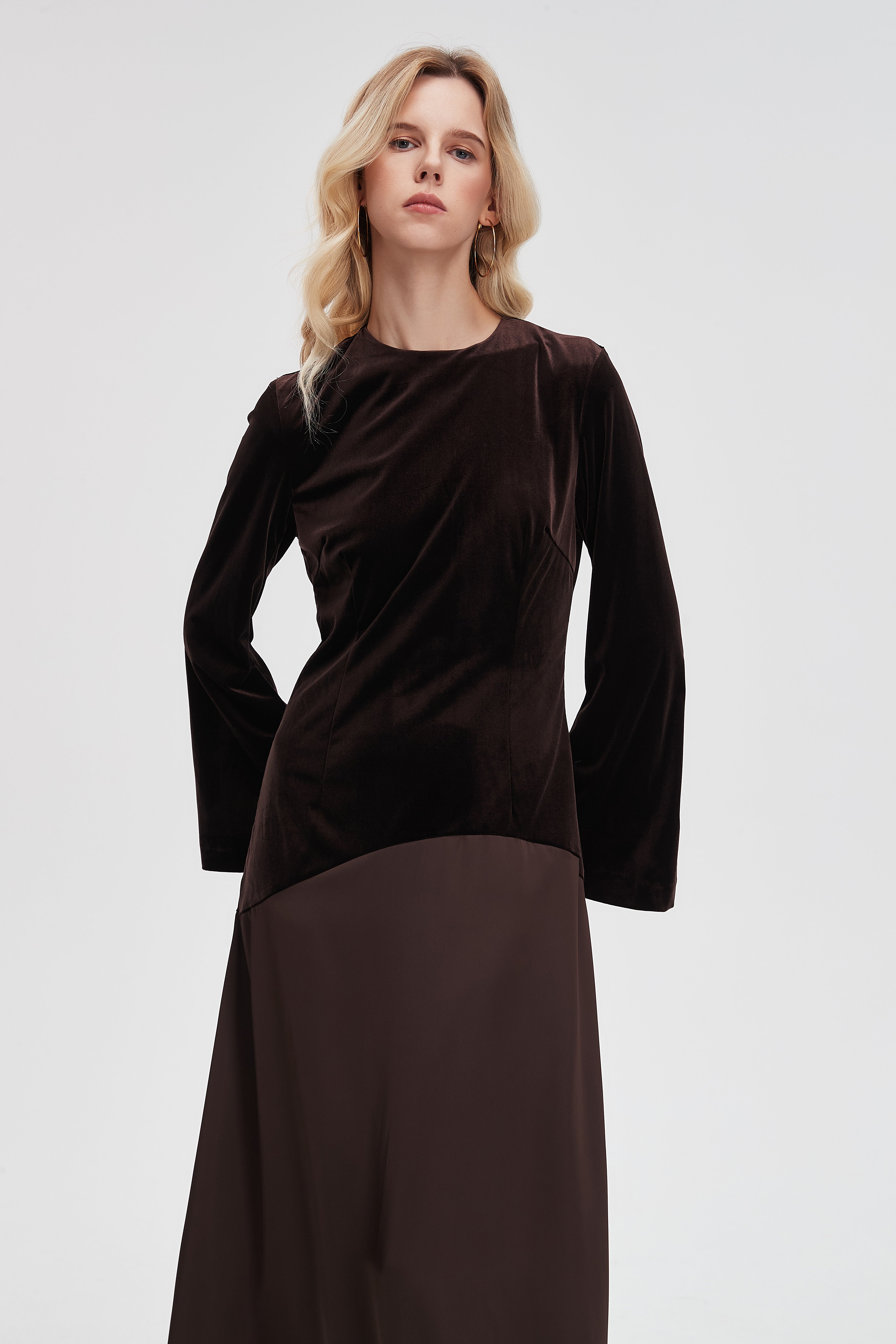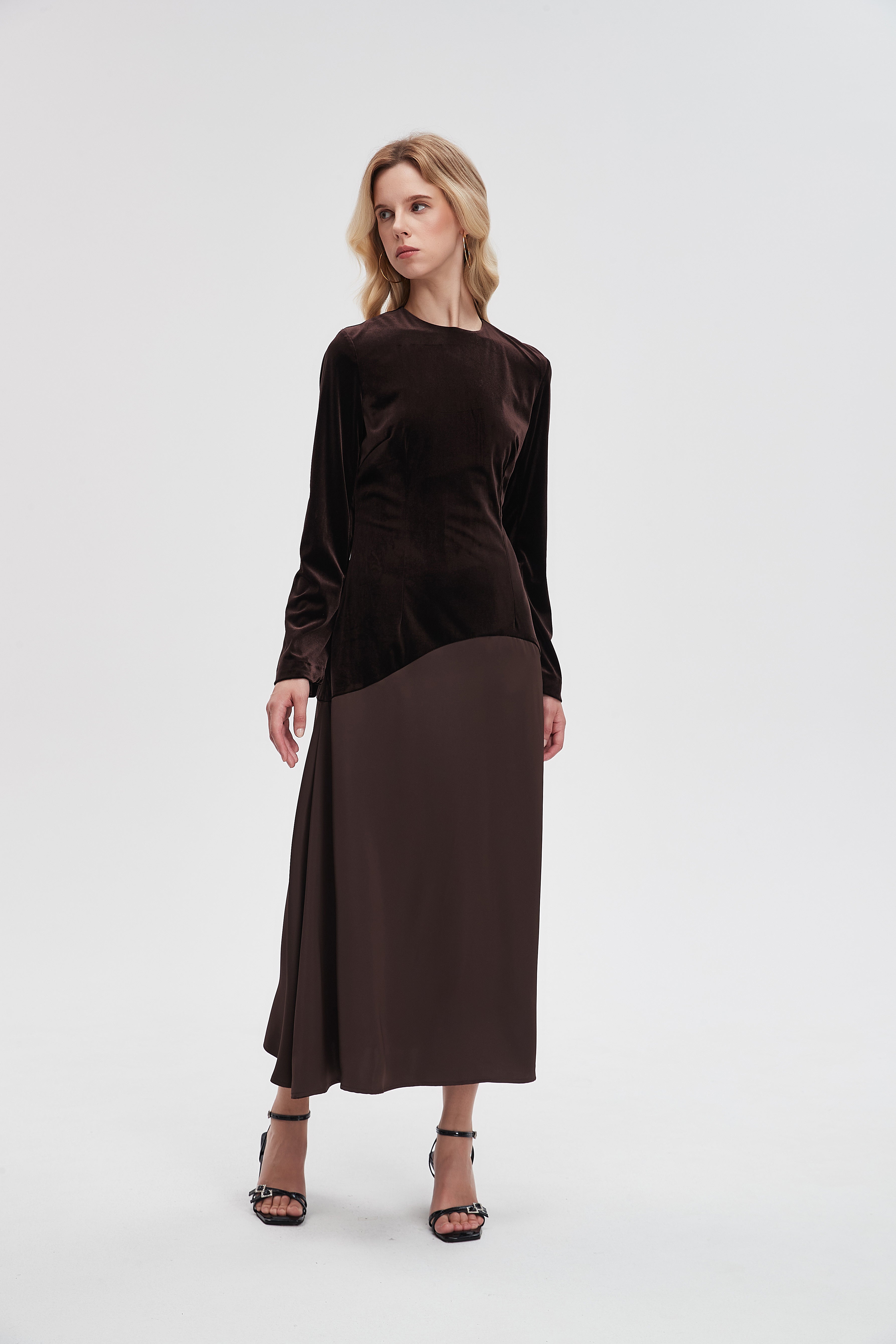 Effortlessly elegant and endlessly wearable, the Brown Plain Maxi Long-Sleeve Dress from Livia is a wardrobe staple that balances relaxed comfort with a refined silhouette. The flattering A-line cut skims the waist and falls to a sweeping maxi length in a solid brown plain pattern, while a classic round neck and long sleeves provide graceful coverage for cooler evenings. Crafted in a medium-weight, unlined construction with a regular fit, it drapes cleanly without clinging for breathable all-season comfort. Pocketless and beltless for a minimalist profile, the easy pull-on design keeps styling simple while allowing layered looks. Perfect for evening occasions or everyday wear, style it up or down with confidence — discover this versatile essential at Fashion SA and add it to your collection today.