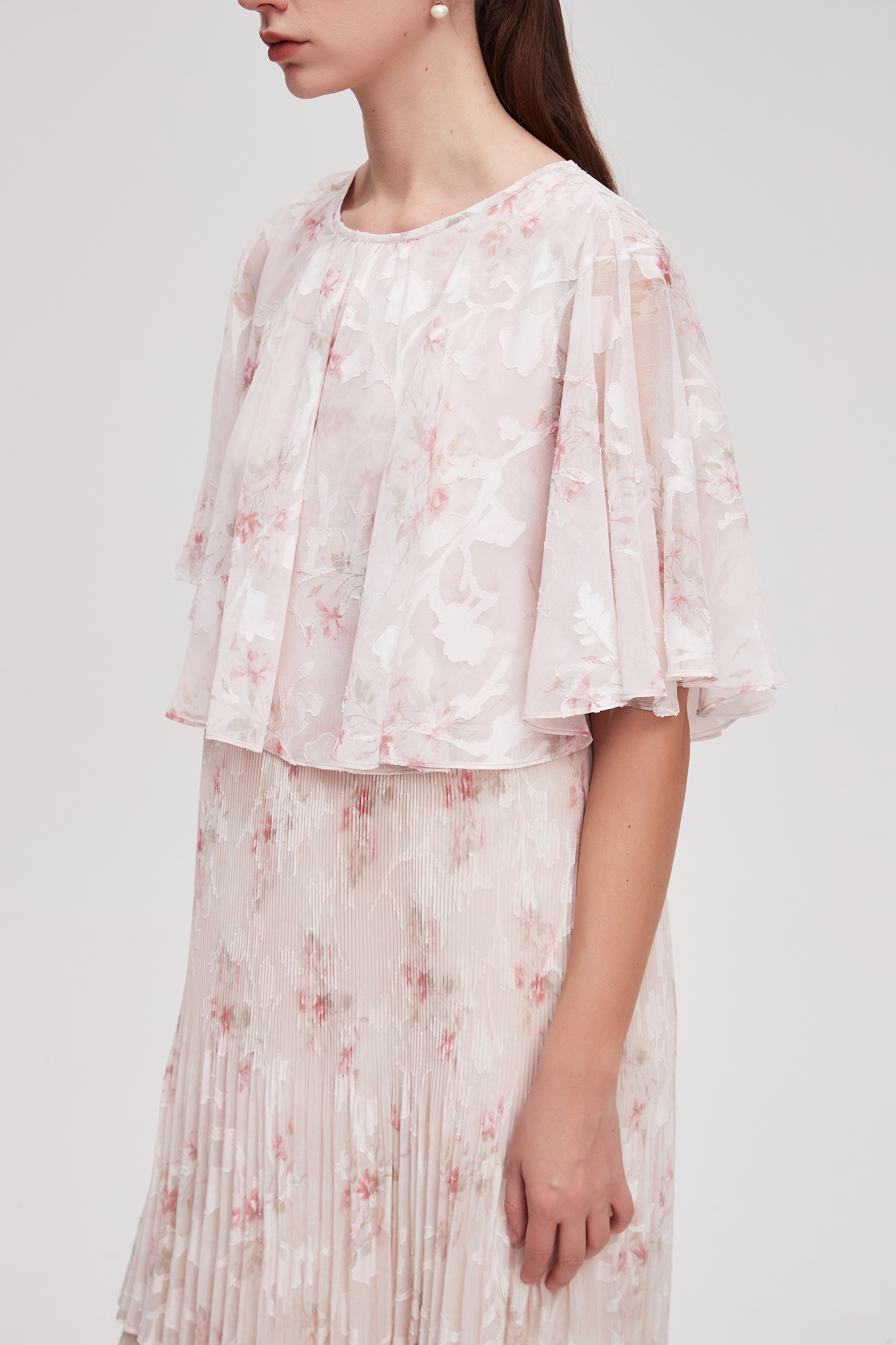 Layered Floral Maxi Dress with Butterfly Sleeves