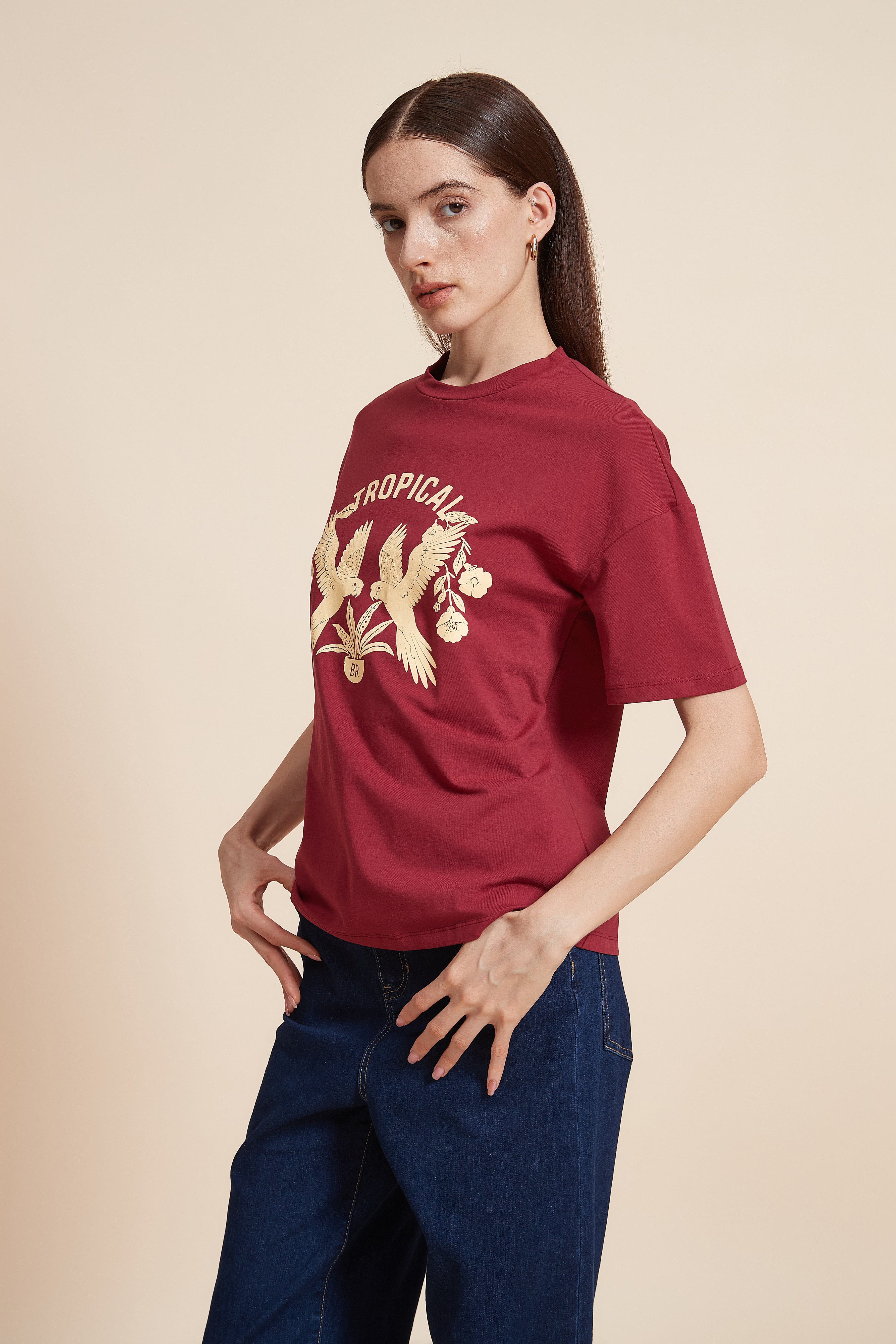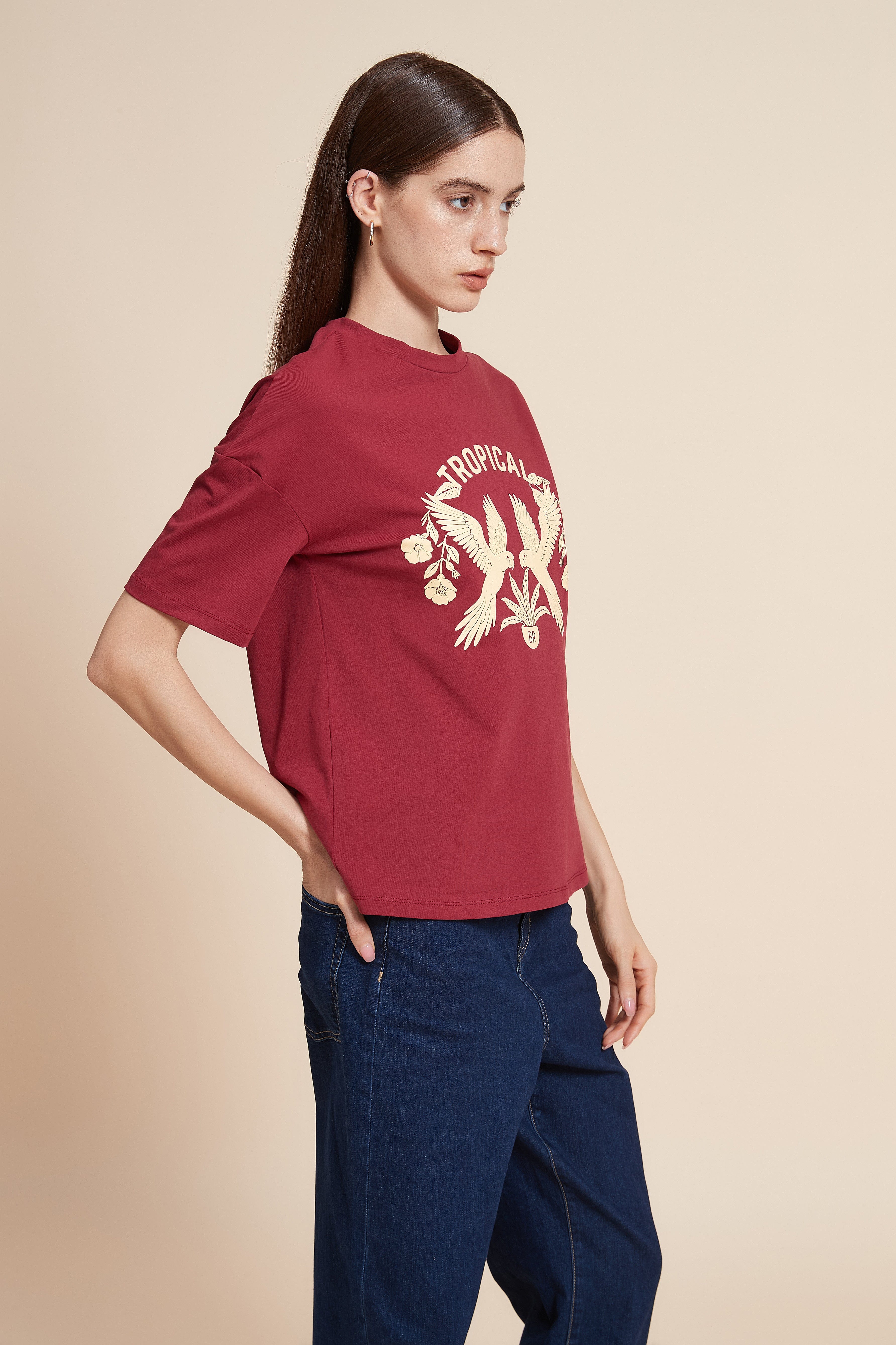 Half Sleeve Printed T-Shirt with Round Neck