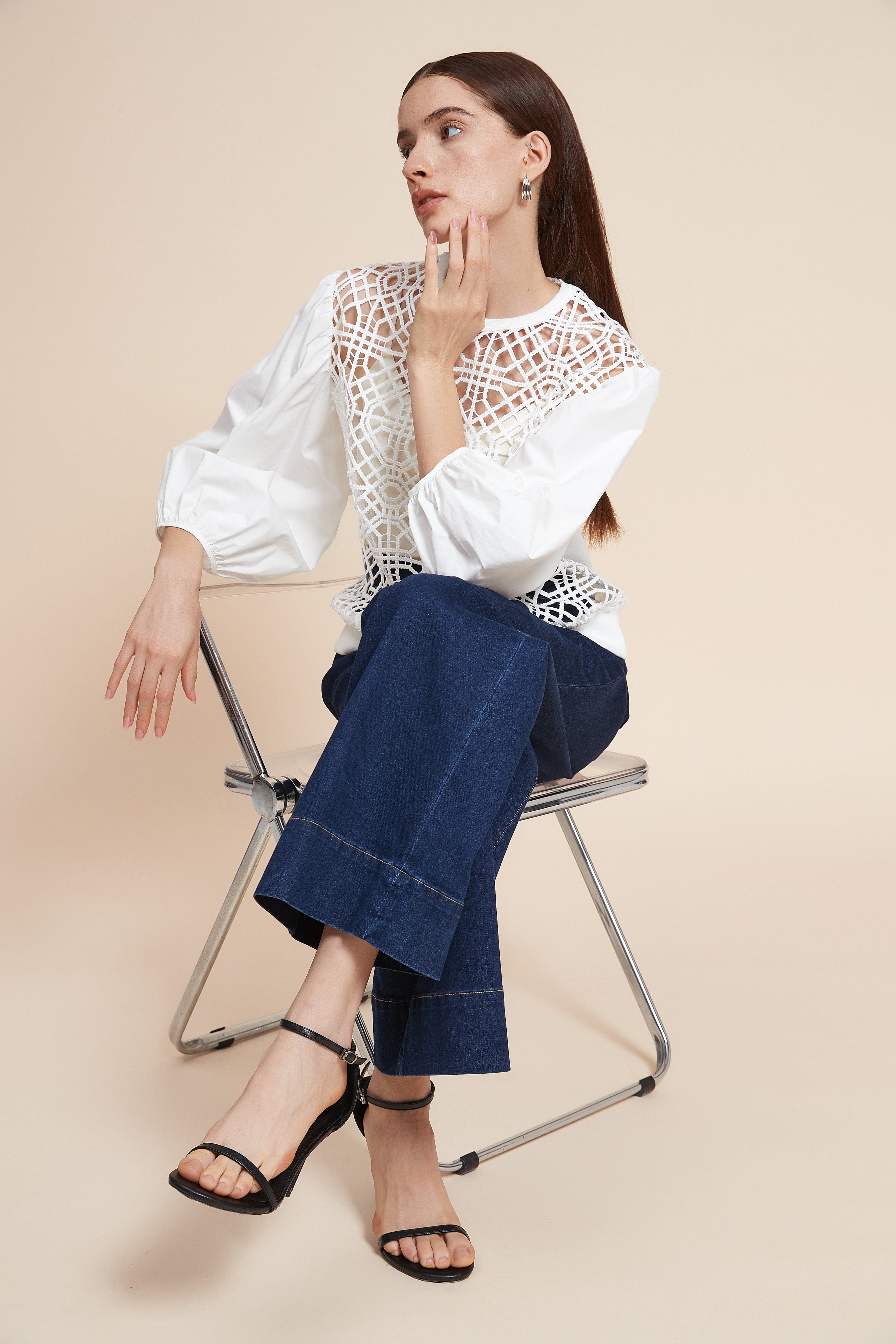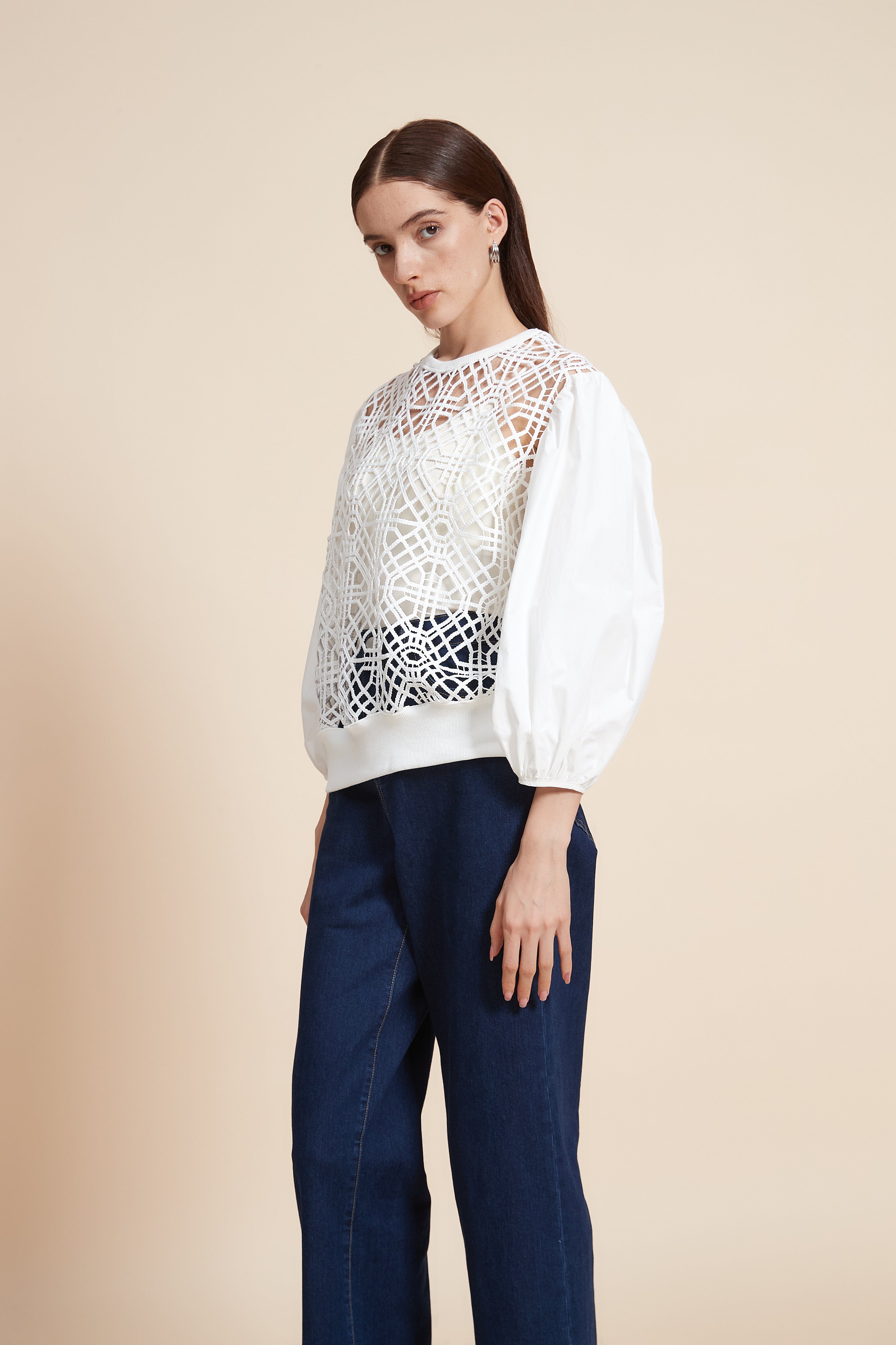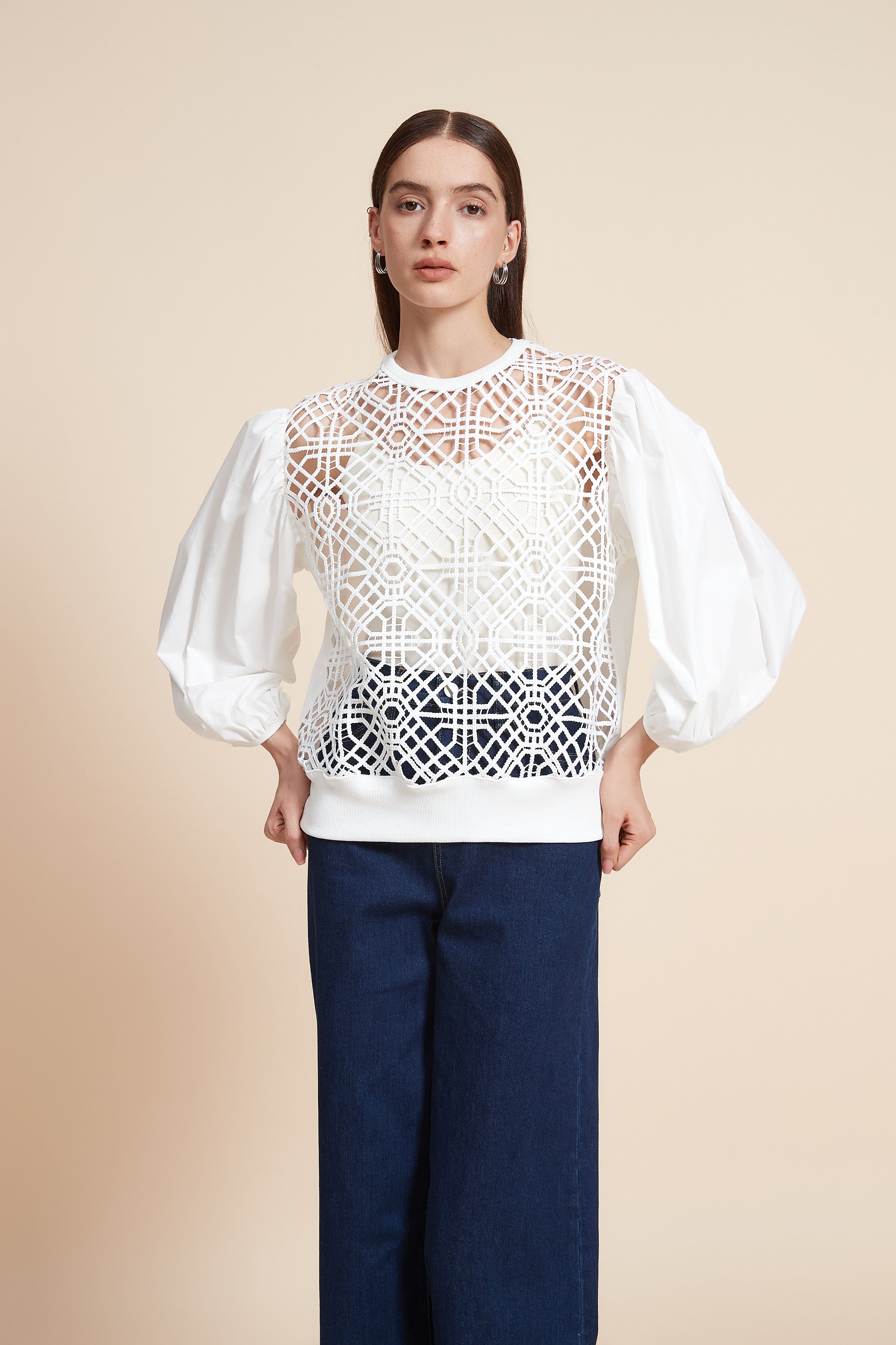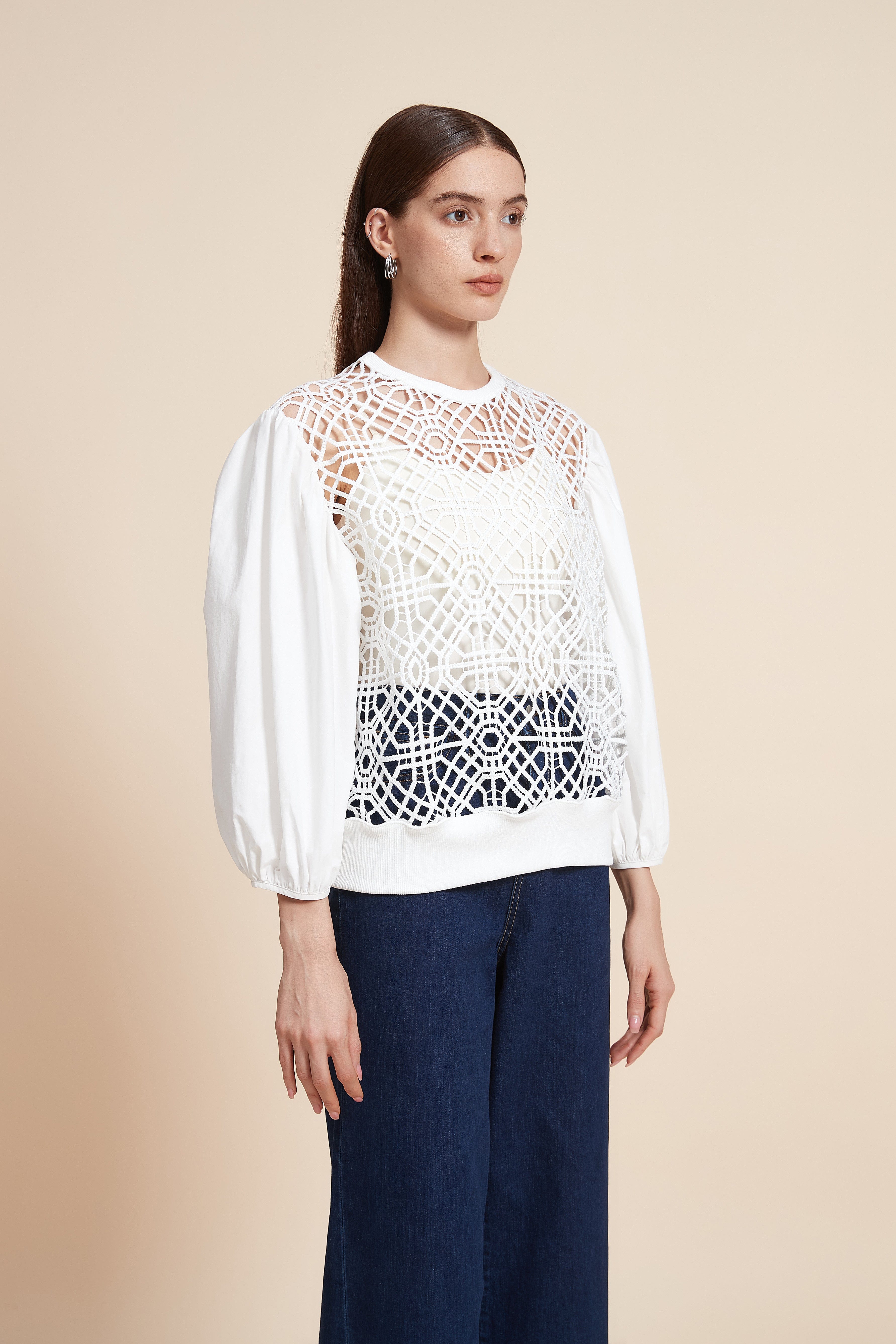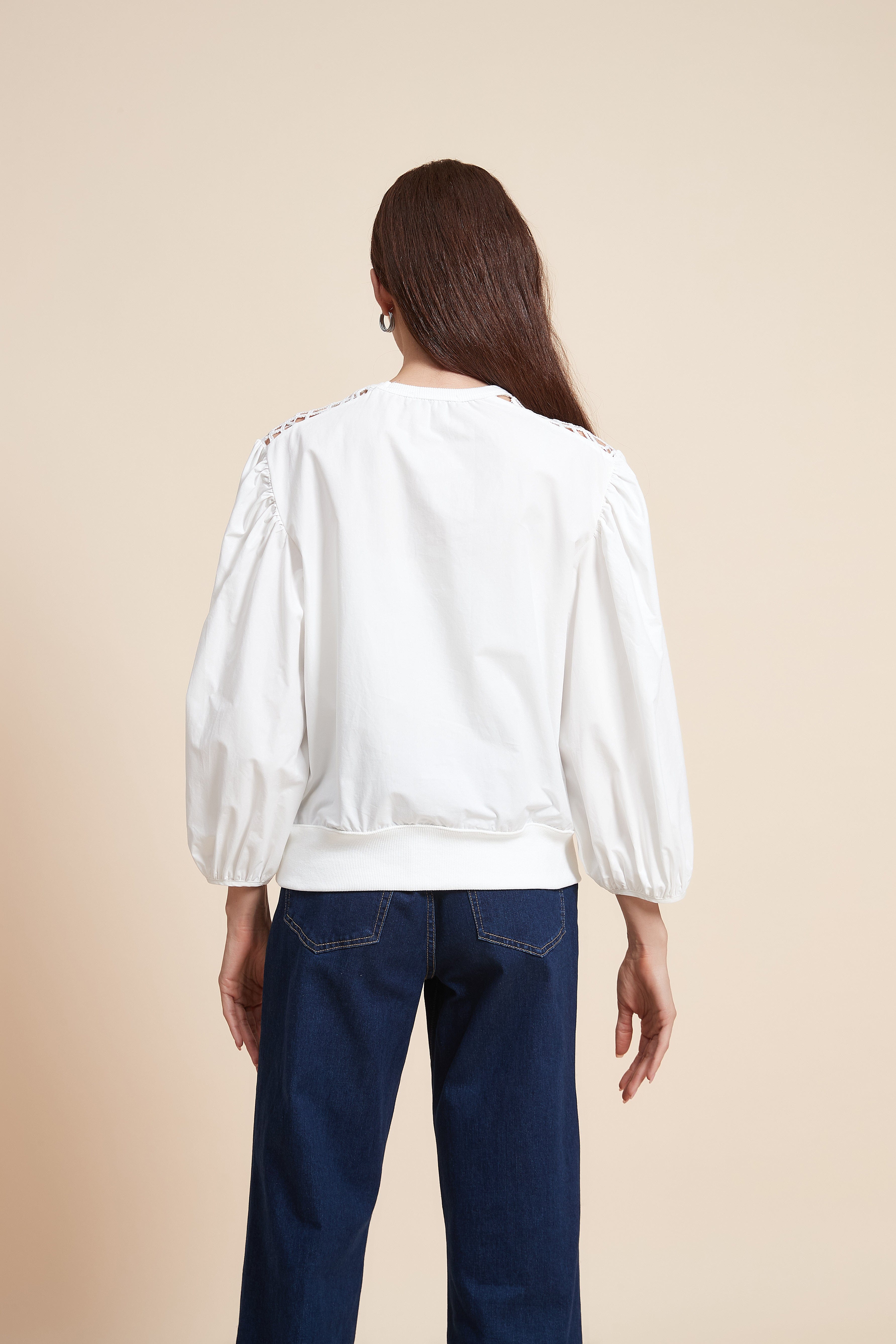 This 3/4-sleeve, puff-sleeve, openwork blouse is the perfect choice for every woman seeking both elegance and comfort. Featuring a unique design that combines modern elegance with a classic touch, this blouse is suitable for a variety of occasions. The puff sleeves add a beautiful touch, while the openwork details give it a soft, feminine feel. It can be easily paired with jeans or a skirt, making it a wardrobe staple. Don't miss out on this distinctive blouse. Order it online now and enjoy a fabulous look! Product number: iye206w254vt