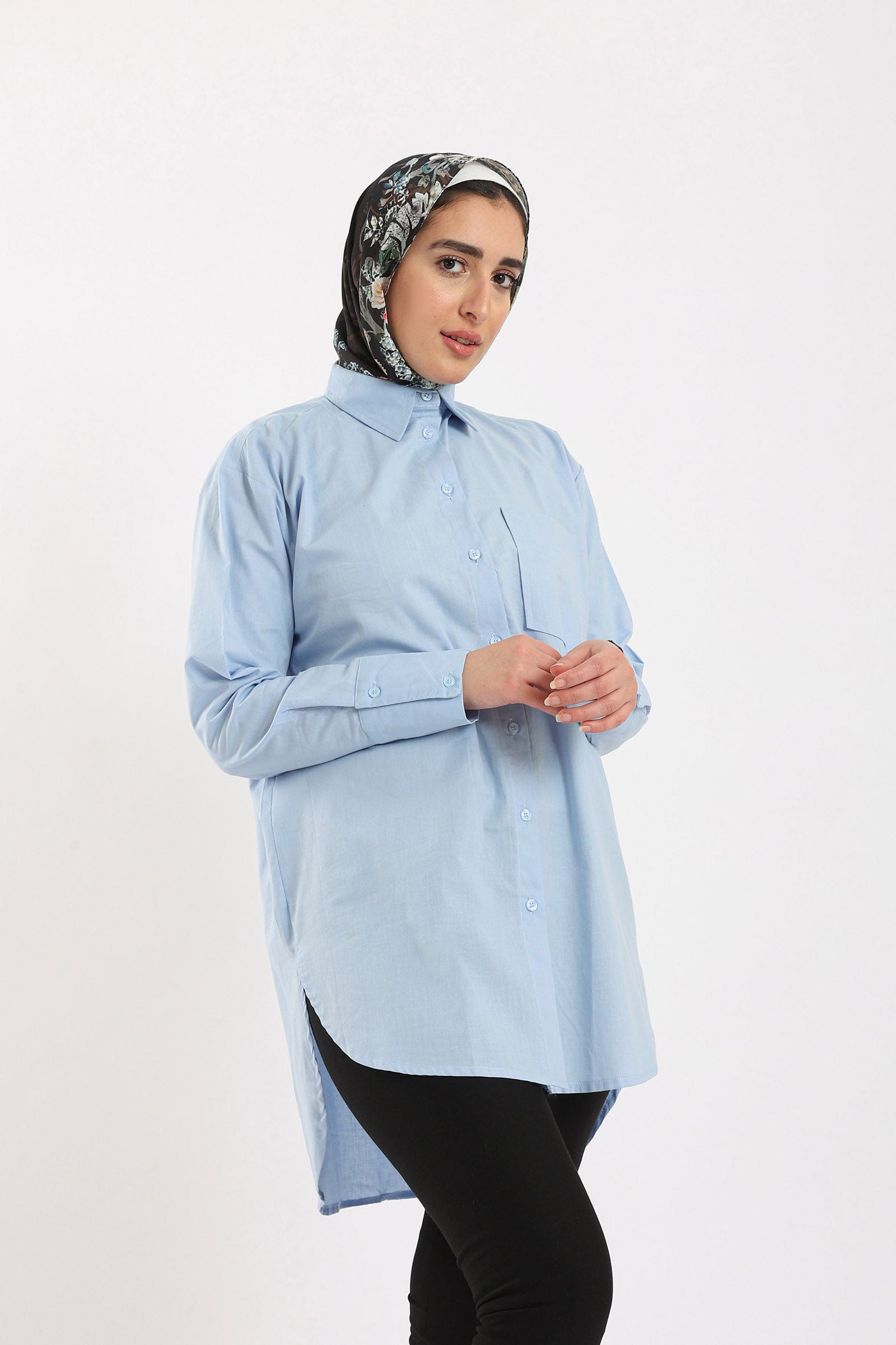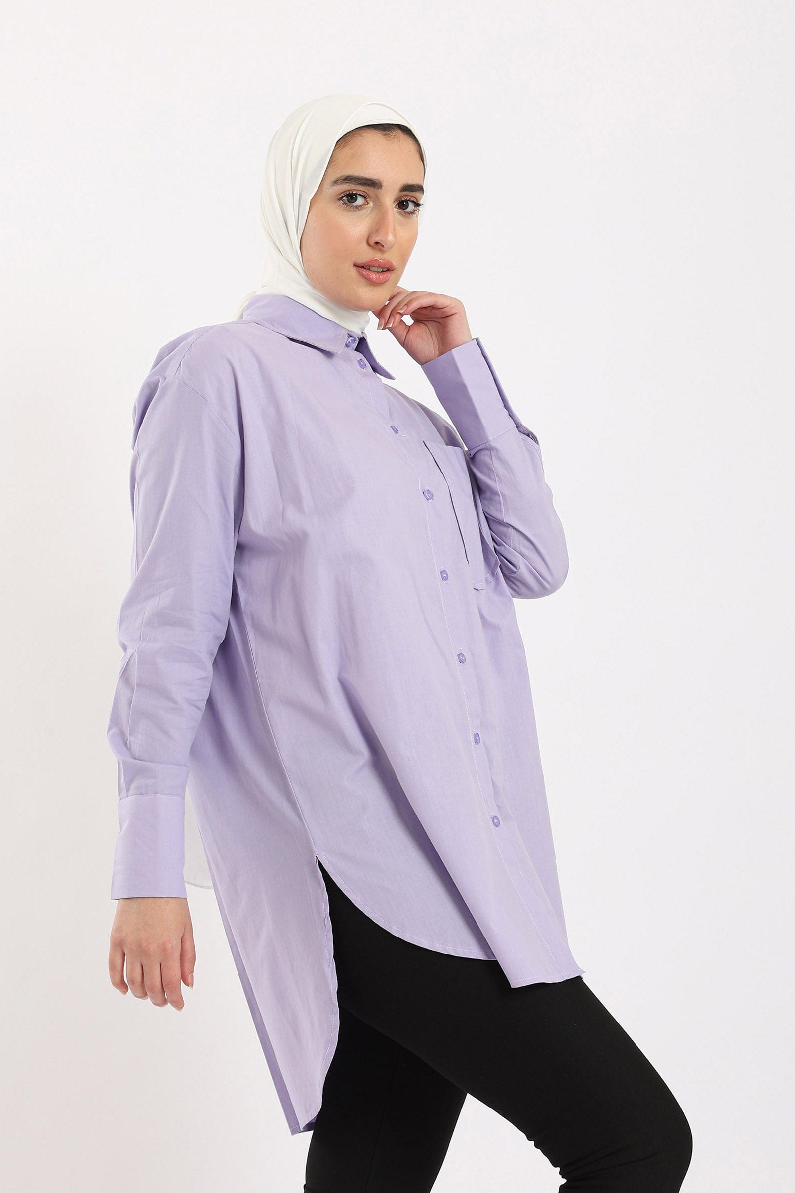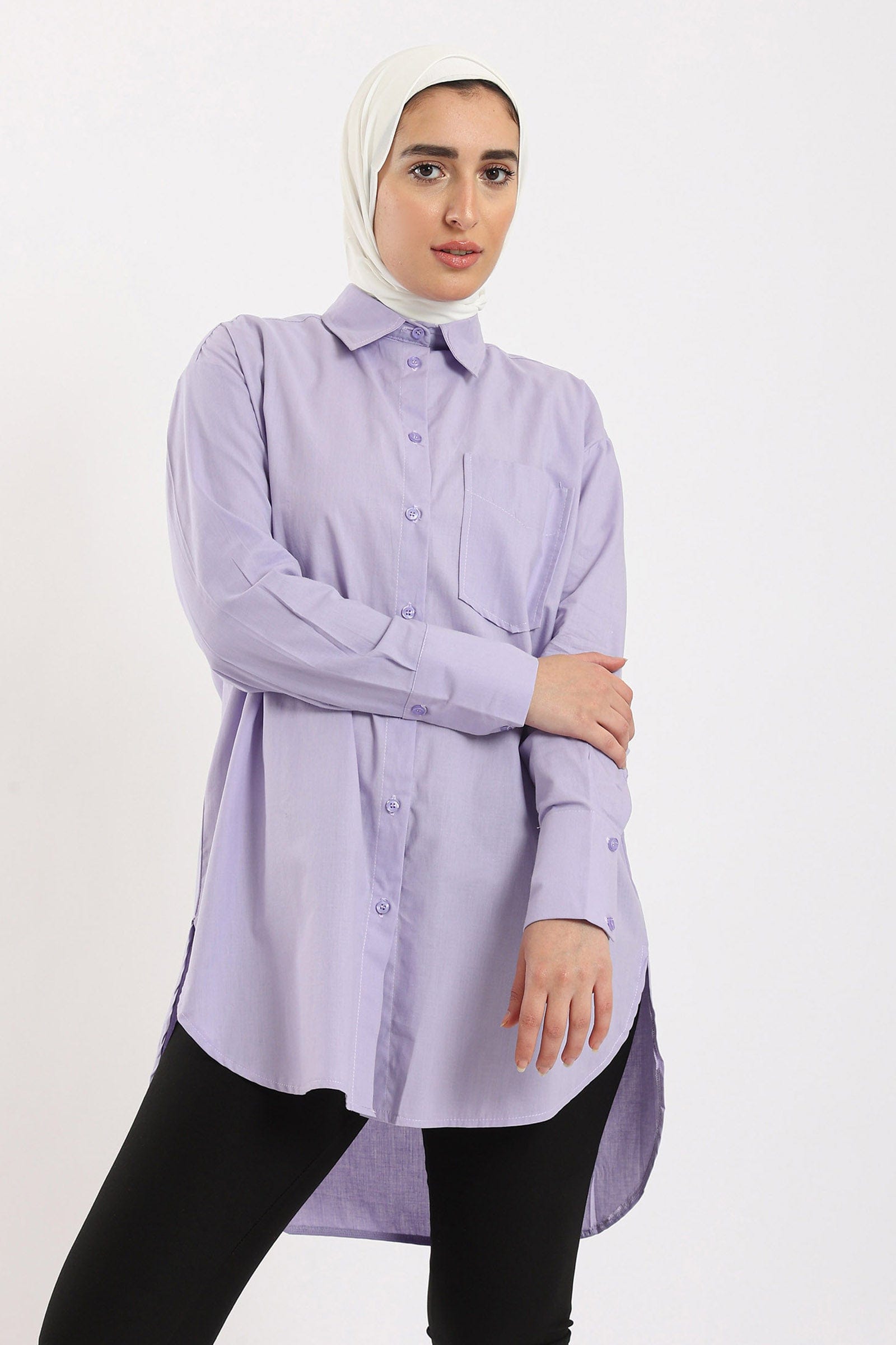 Get ready to shine in a plain long-sleeved button-up front shirt from Carina. This stylish shirt is available in three gorgeous colours: Lavender, Light Blue and Off-White. This shirt is designed with superior elegance and a wide fit that provides all-day comfort. Wear it with jeans or skirt for a modern and stylish look. Now get a plain shirt with buttoned front wide sleeves from Carina and get ready to shine in your own style. Order now and enjoy the most beautiful fashion from Fashion Saudi Arabia. Introducing the women's plain long sleeve wide button-front shirt from Carina. Elevate your style with this effortlessly chic piece, available in three stunning colors: lavender, light blue, and off-white. Its wide and comfortable fit ensures all-day comfort, while the long sleeves add a touch of sophistication. Whether you're dressing up or down, this shirt is the perfect choice. Pair it with jeans for a casual look or dress it up with a skirt for a more formal occasion. Product Number: 54068