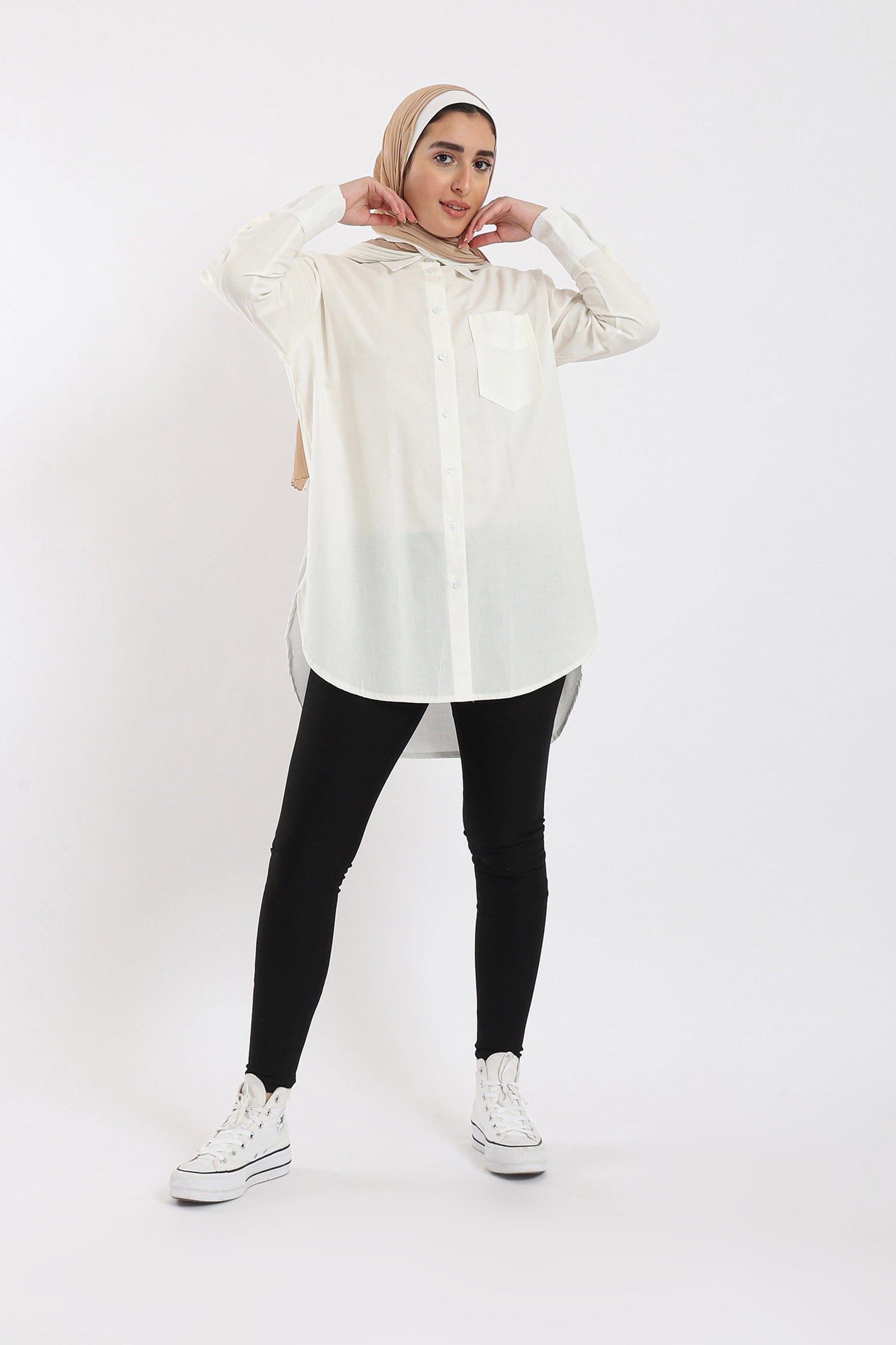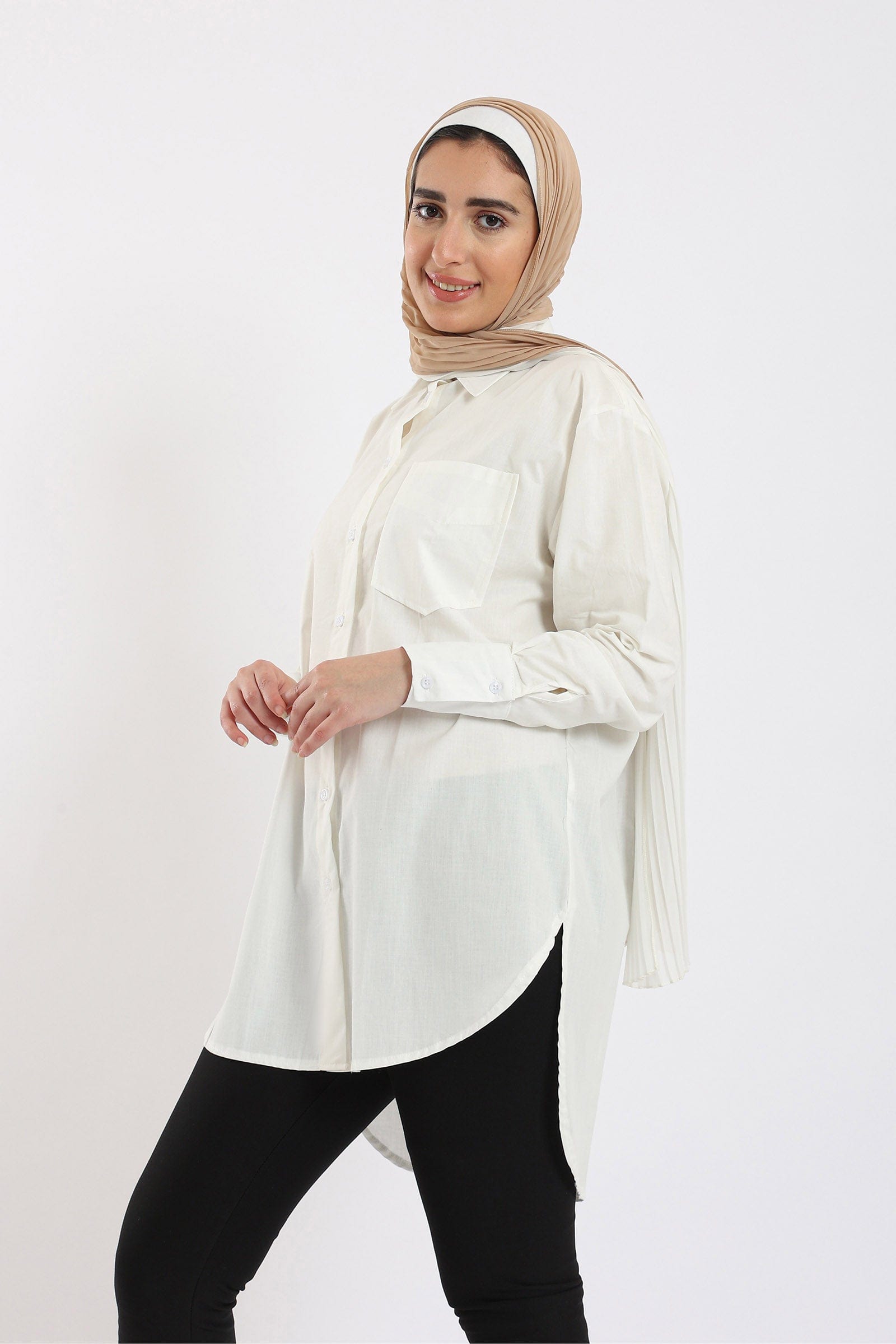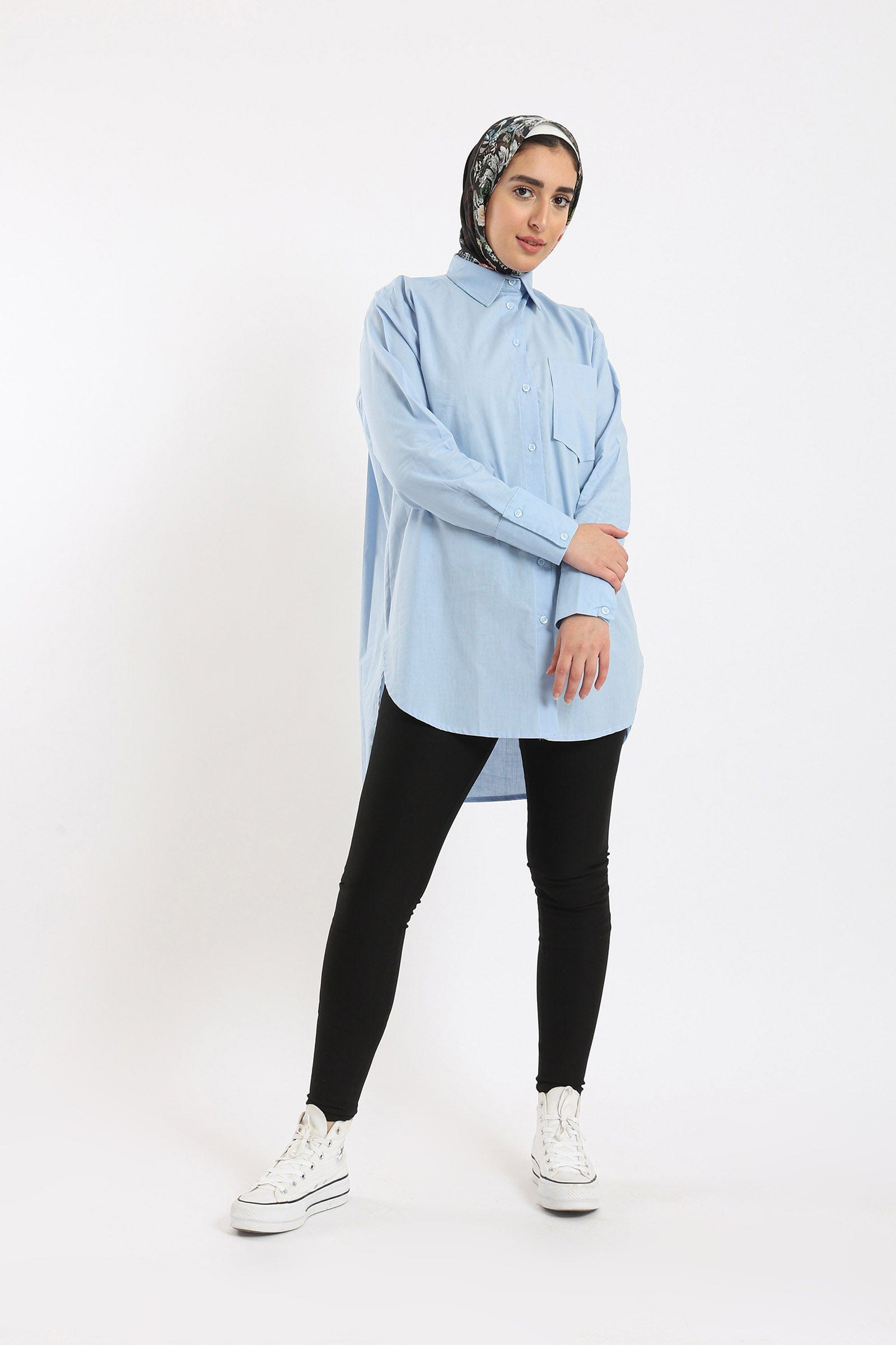 Get ready to shine in a plain long-sleeved button-up front shirt from Carina. This stylish shirt is available in three gorgeous colours: Lavender, Light Blue and Off-White. This shirt is designed with superior elegance and a wide fit that provides all-day comfort. Wear it with jeans or skirt for a modern and stylish look. Now get a plain shirt with buttoned front wide sleeves from Carina and get ready to shine in your own style. Order now and enjoy the most beautiful fashion from Fashion Saudi Arabia. Introducing the women's plain long sleeve wide button-front shirt from Carina. Elevate your style with this effortlessly chic piece, available in three stunning colors: lavender, light blue, and off-white. Its wide and comfortable fit ensures all-day comfort, while the long sleeves add a touch of sophistication. Whether you're dressing up or down, this shirt is the perfect choice. Pair it with jeans for a casual look or dress it up with a skirt for a more formal occasion. Product Number: 54068