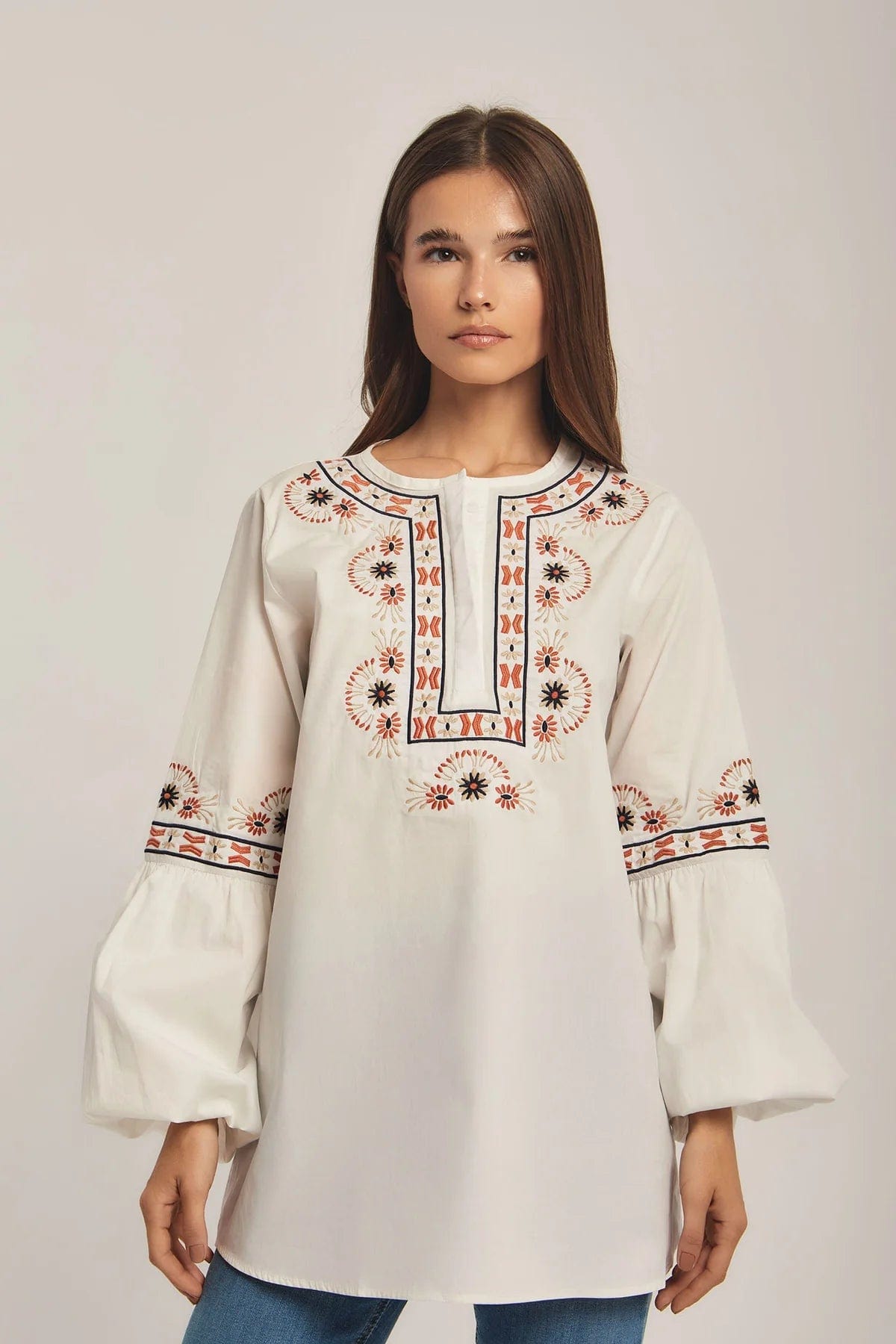 Take the world of style with an embroidered women's blouse from DalyDress. This blouse comes in a flattering and impressive off-white color. Designed with gorgeous embroidered details, this blouse adds a touch of beauty and elegance to your look. Wear them for formal occasions, parties or everyday looks. Get now an embroidered off-white women's blouse from DalyDress Feel confident and stylish anytime, anywhere. Order it now and enjoy shopping through Fashion KSA. Product Number: 240-54-2142-333