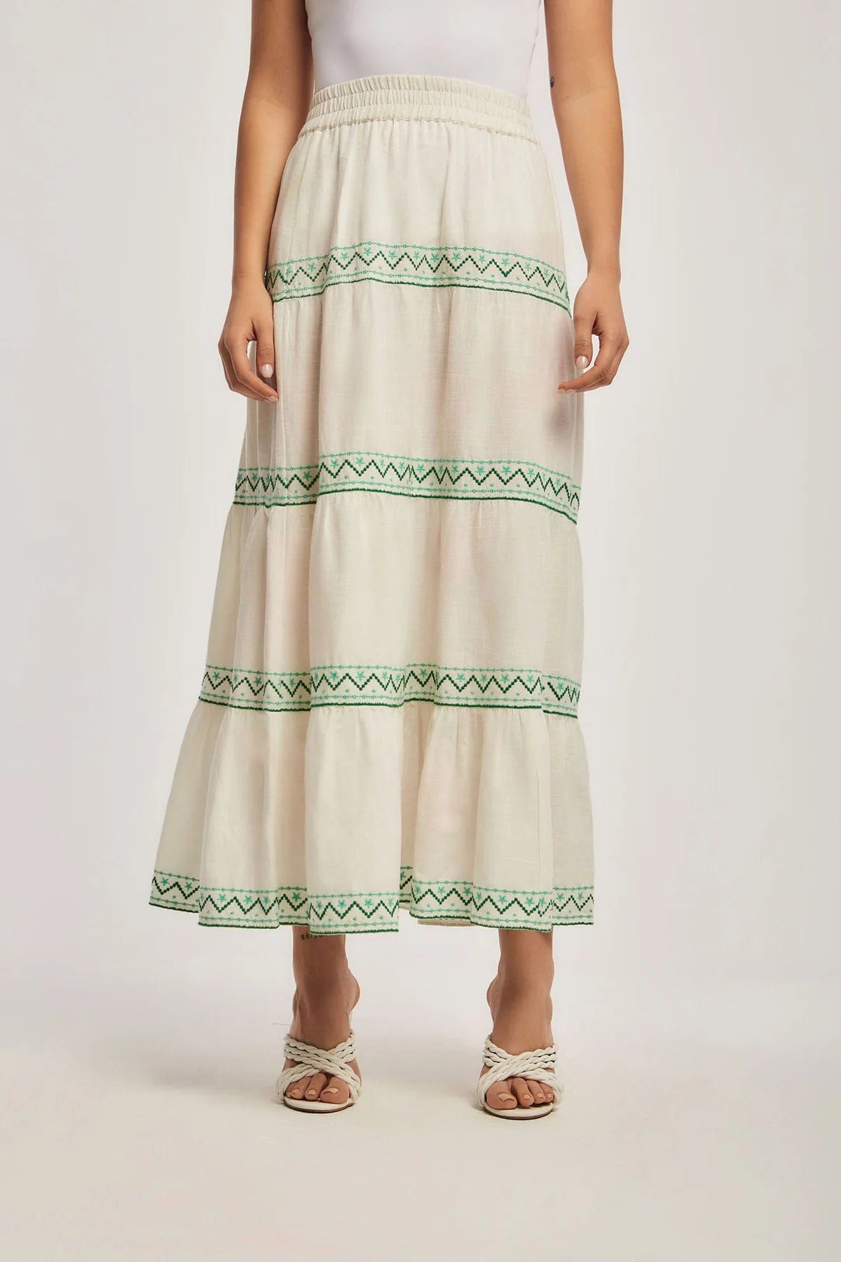 Striped Embroidered Skirt