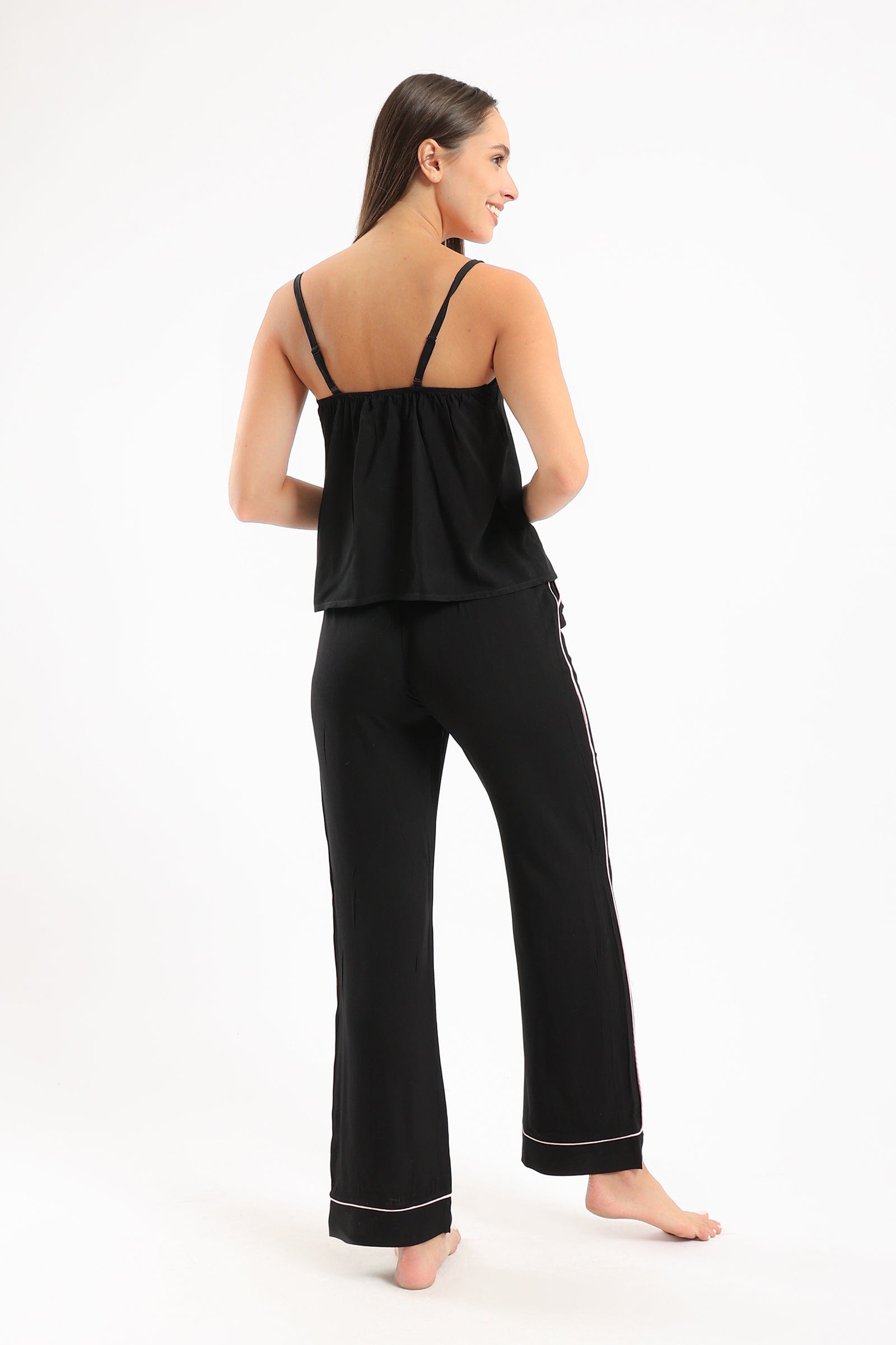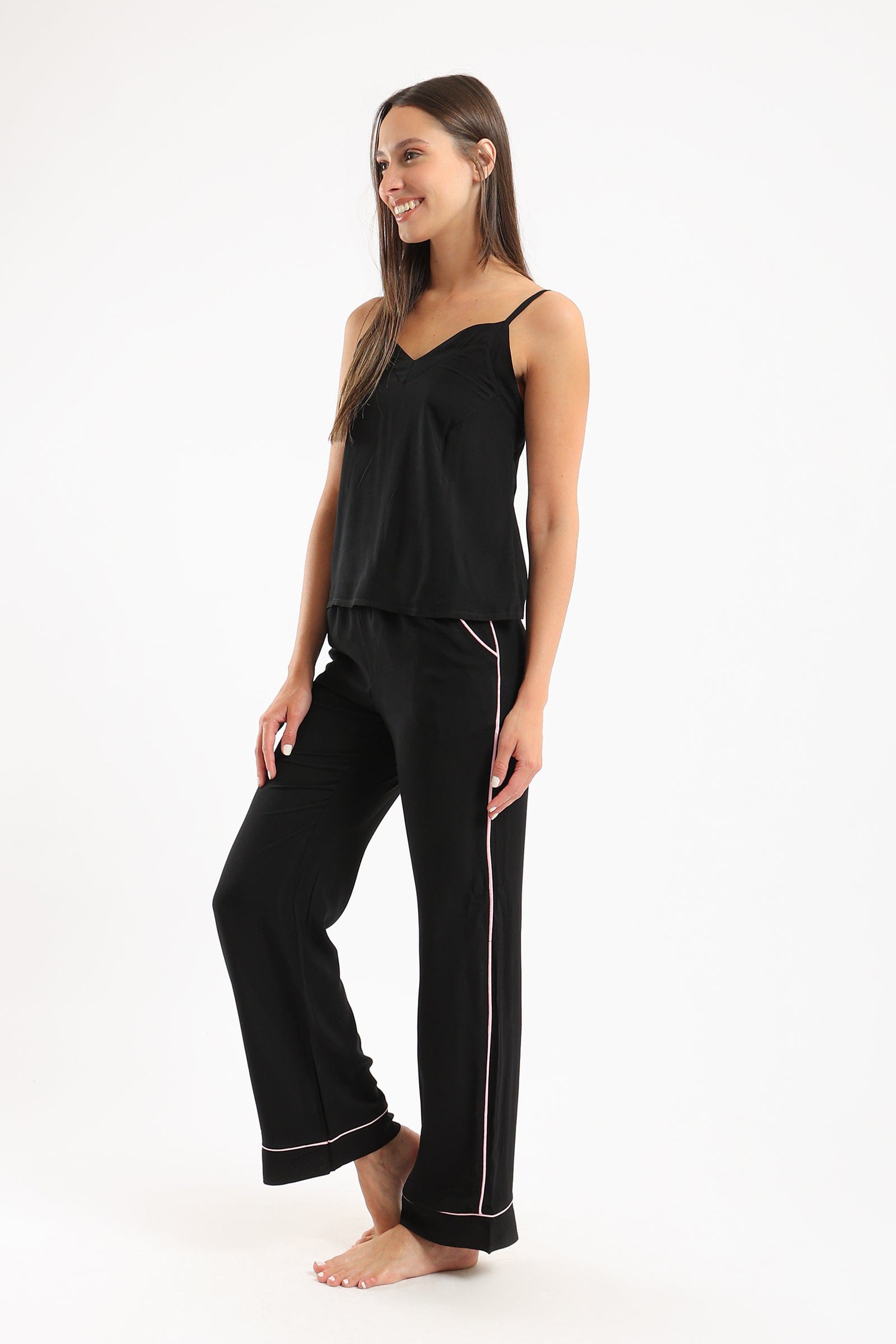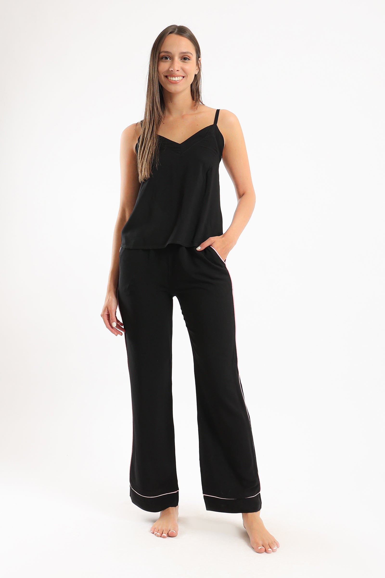 Get ready for comfort and style with Carina's Blouse Pajama Set and V-neck trousers. This set is available in three gorgeous colors: Black, Light Lilac, and Off White. The pajama design combines elegance and comfort, perfect for sleeping and relaxing at home. The blouse features a stylish V-neckline, while trousers provide the comfort you need. Order now Carina's Blouse & V-neck Pajama Set and get ready for comfort and style all the time. Order it now through Fashion KSA! Get ready to relax in style with this elegant pajama set from Carina. The set includes a blouse and pants, both featuring a V-neck design for a touch of sophistication. Available in three beautiful colors: black, light lilac, and off-white, so you can choose the one that suits your taste. The blouse and pants are made from high-quality materials, ensuring comfort and durability. Whether you're lounging at home or enjoying a cozy evening, this pajama set is perfect for any occasion. Product Number: 54372