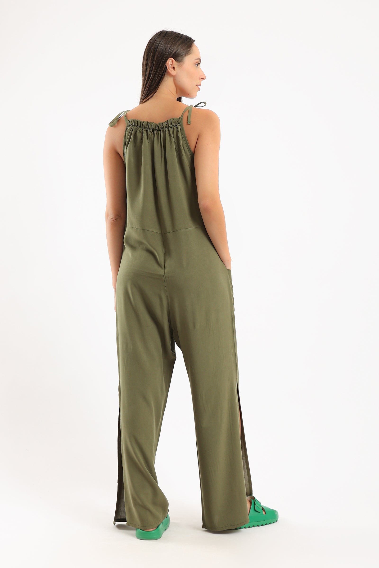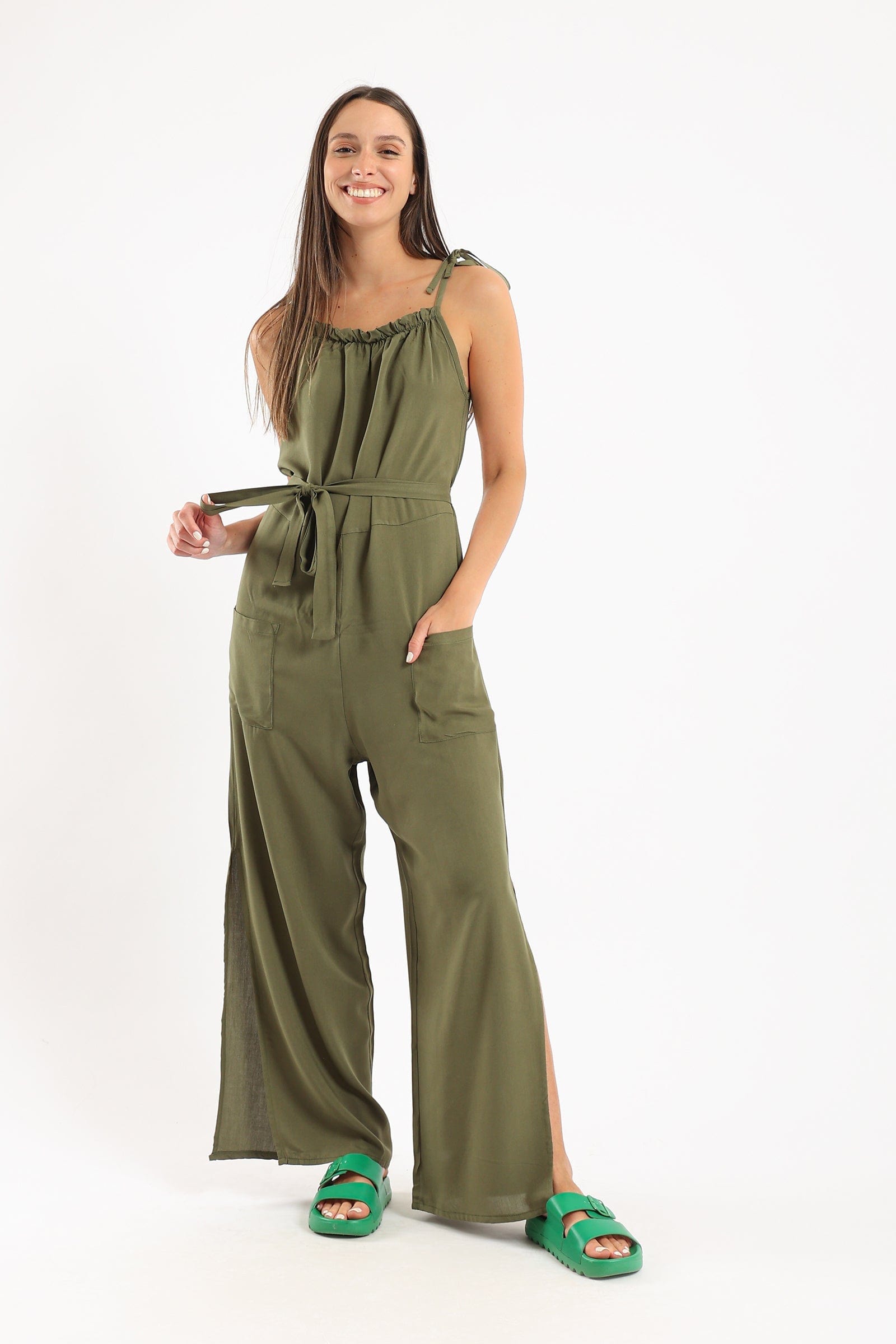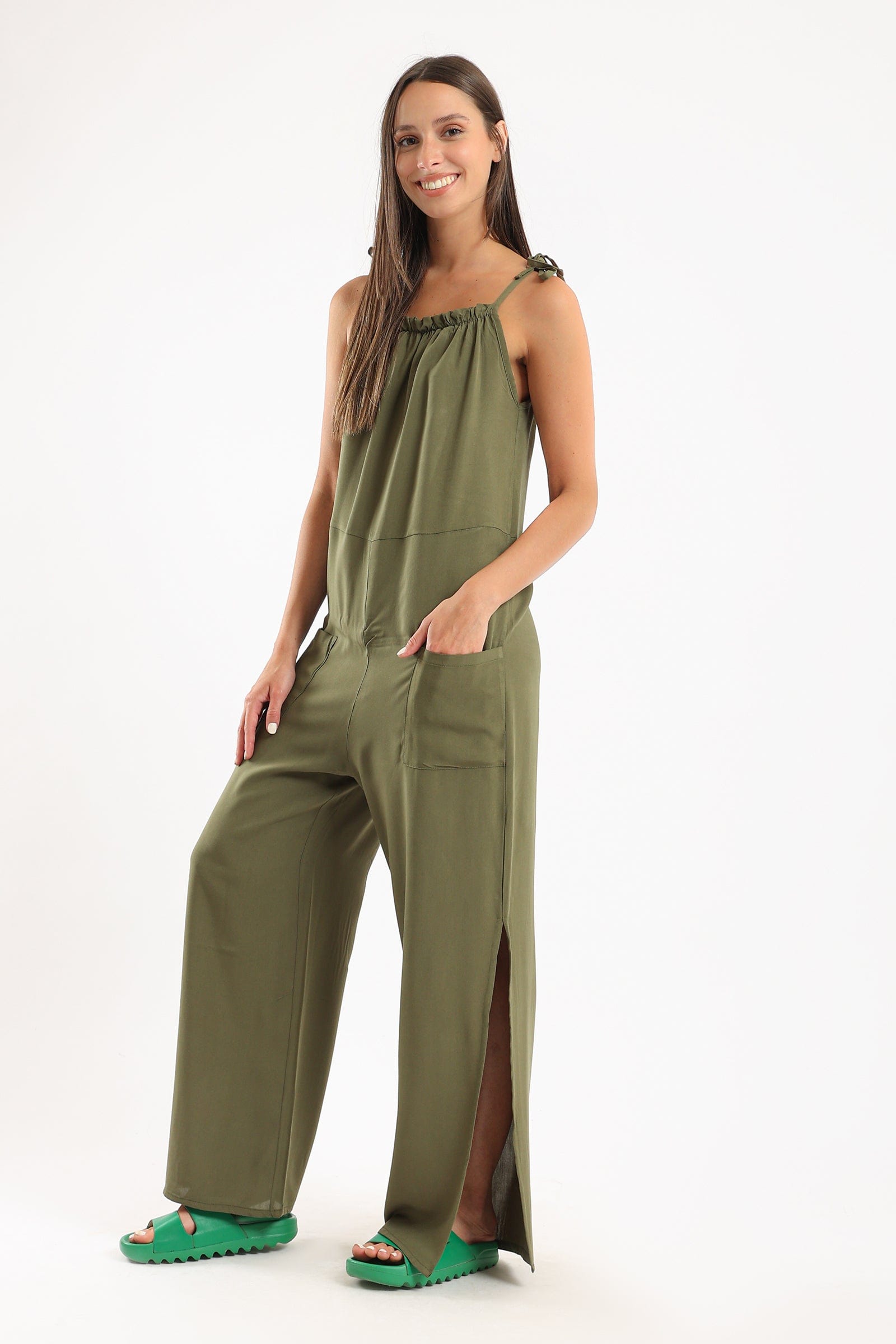 Get ready for comfort and style with a plain pajama jumpsuit with pockets and drawstring from Carina. Available in an olive tone, this elegant piece is perfect for a relaxed yet modern look. Designed for a loose fit and a plunging neckline, this jumpsuit adds a subtle touch to your beauty. Wear it at home or outdoors, and you'll feel comfortable all day long thanks to the practical pockets and adjustable drawstring. Get now a plain pajama jumpsuit with olive pockets and drawstring from Fashion Saudi Arabia and enjoy style and comfort at the same time. Order it now and enjoy the most beautiful fashion from Fashion Saudi Arabia! Introducing the stylish and comfortable Plain Jumpsuit with Pockets and Tie from Carina. This jumpsuit is perfect for women who value both fashion and comfort. Made with a soft and breathable fabric, it ensures all-day comfort. The jumpsuit features a flattering olive color, adding a touch of elegance to your look. With its practical pockets and adjustable tie, it combines style with functionality. Whether you're lounging at home or going out for a casual outing, this jumpsuit is a versatile addition to your wardrobe. رقم المنتج: 54383