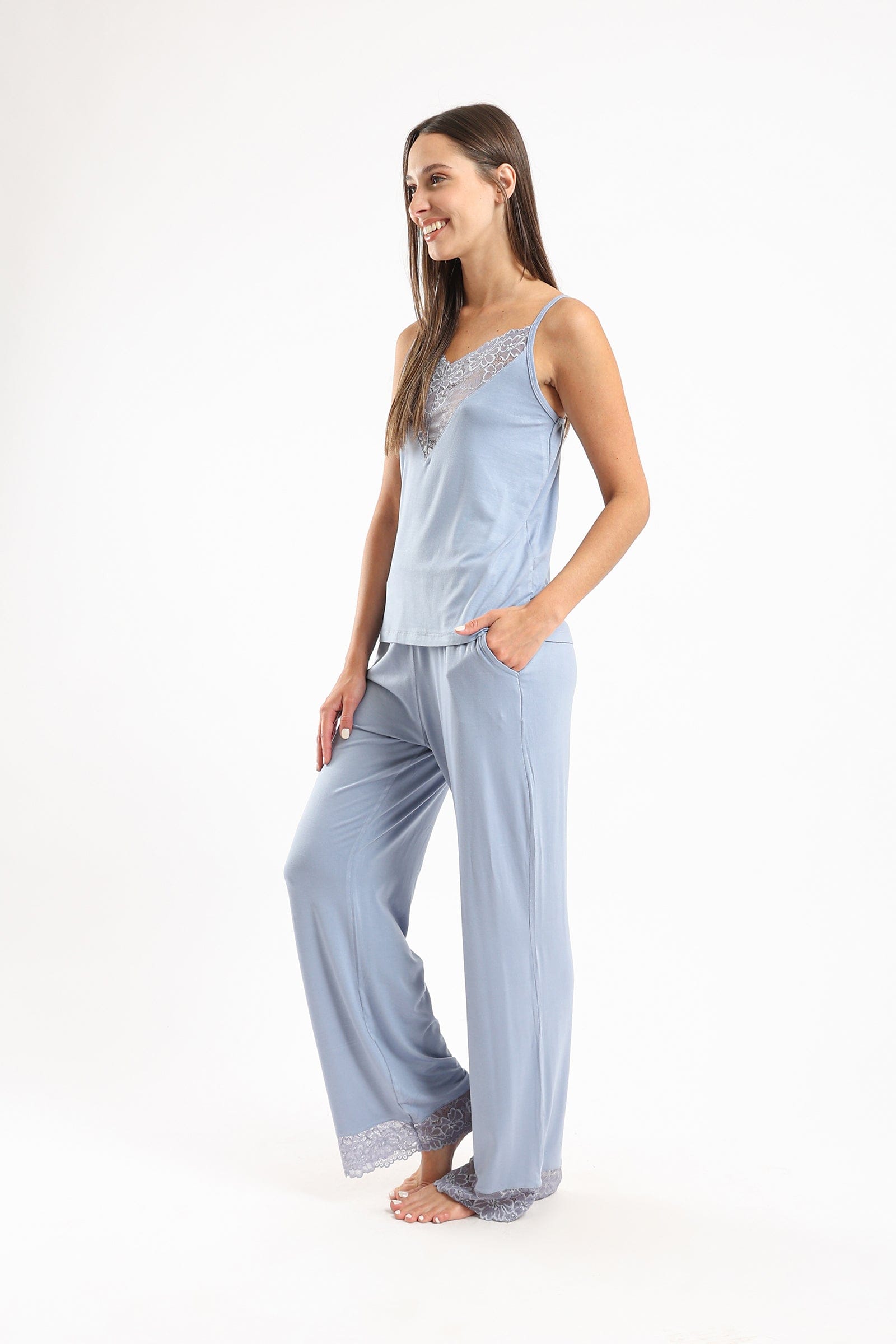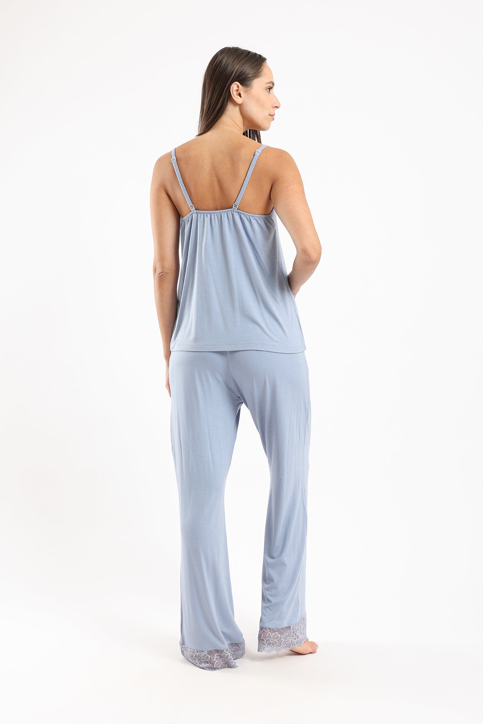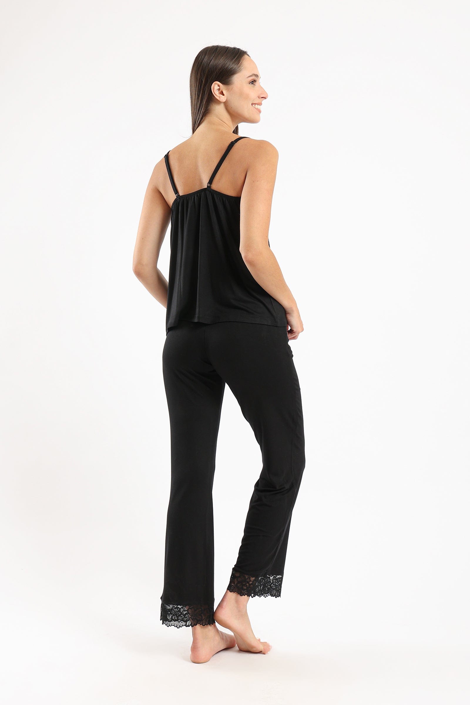 Get ready for comfort and style with this lace pajama set with trousers from Carina. This set comes in three gorgeous colors: black, light indigo and light simon. The pajamas feature a luxurious lace silhouette that adds a feminine and flattering touch to your look. Slim straps have a sleek and modern touch, while trousers offer comfort and freedom of movement. You can wear this set to sleep or relax at home. Order now this lace strap pajama set with trousers from Carina and enjoy comfort and style at the same time. Book your order now through Fashion KSA and be in style. Get ready to elevate your nighttime style with the elegant lace lingerie set with straps and pants from Carina. This set is available in three stunning colors: black, light blue, and light gray. Crafted with delicate lace, this lingerie set exudes sophistication and allure. The set includes a comfortable and stylish pair of pants, making it perfect for both lounging and special occasions. Embrace your femininity and feel confident in this exquisite lace lingerie set from Carina. رقم المنتج: 54422