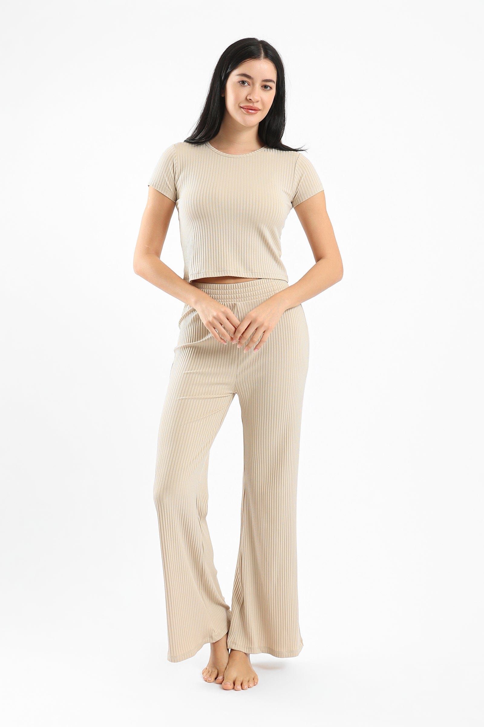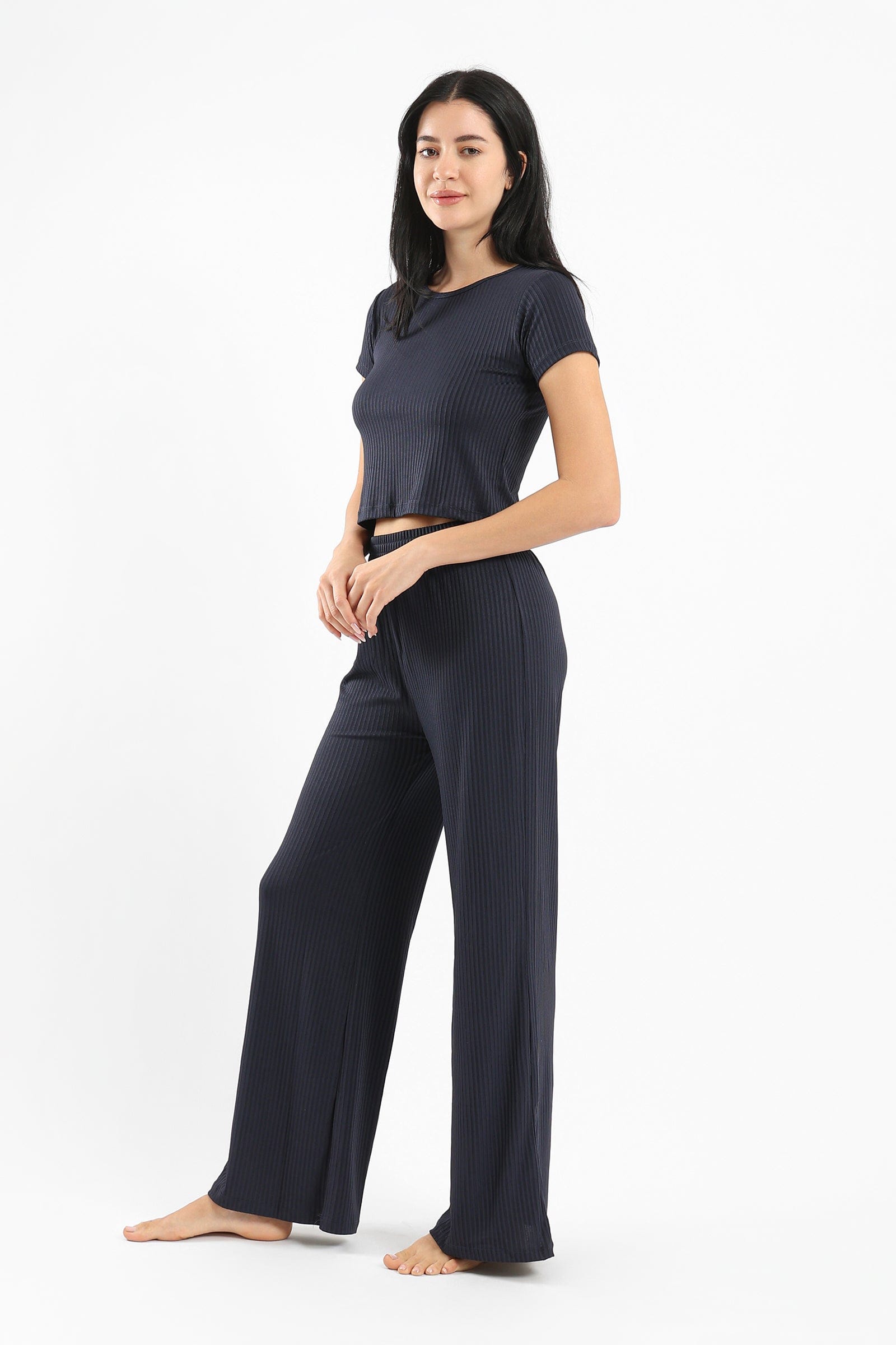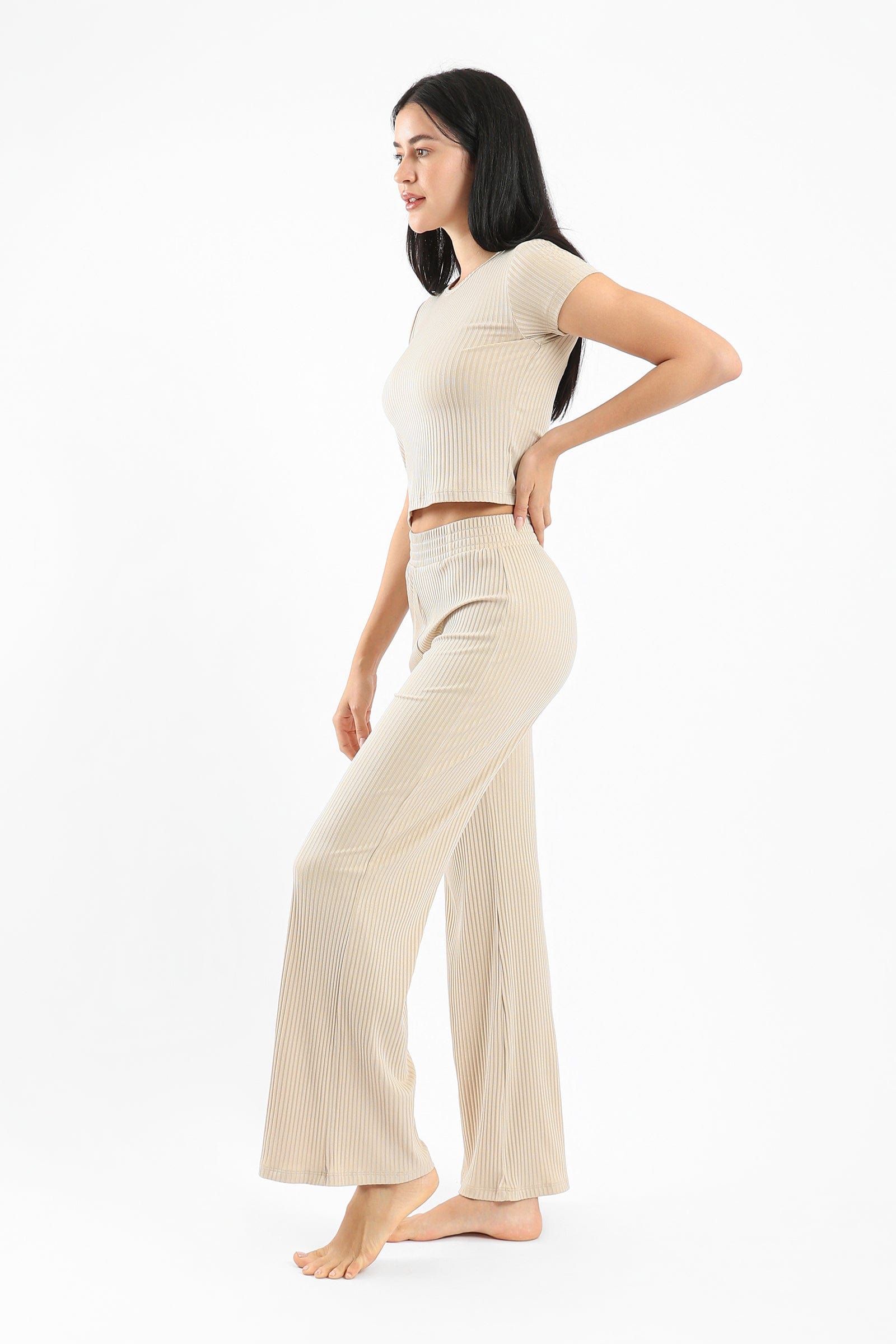 Ribbed Viscose T-Shirt and Pants Pajama Set