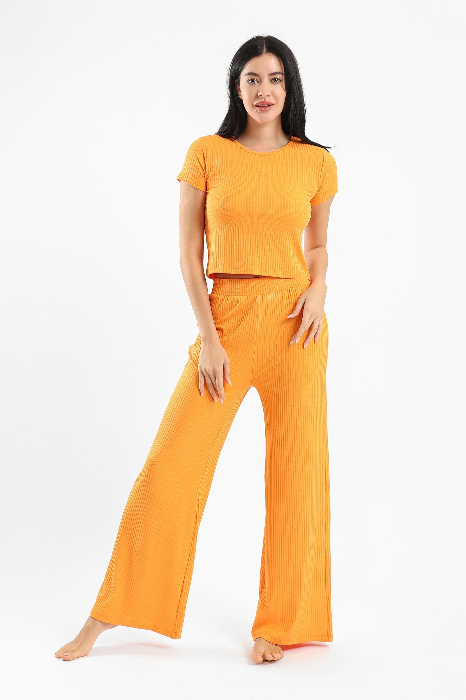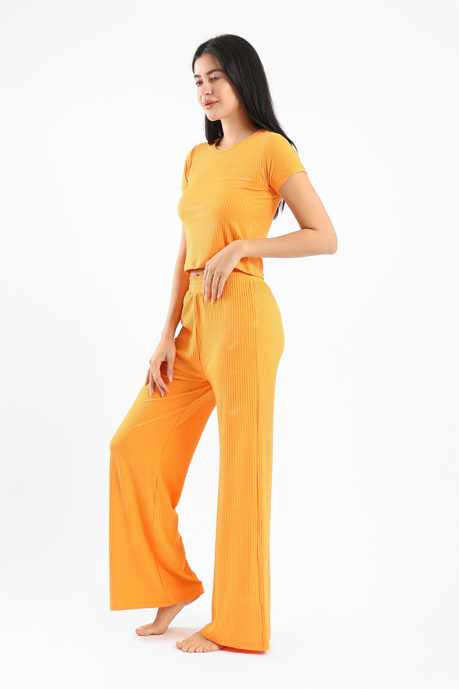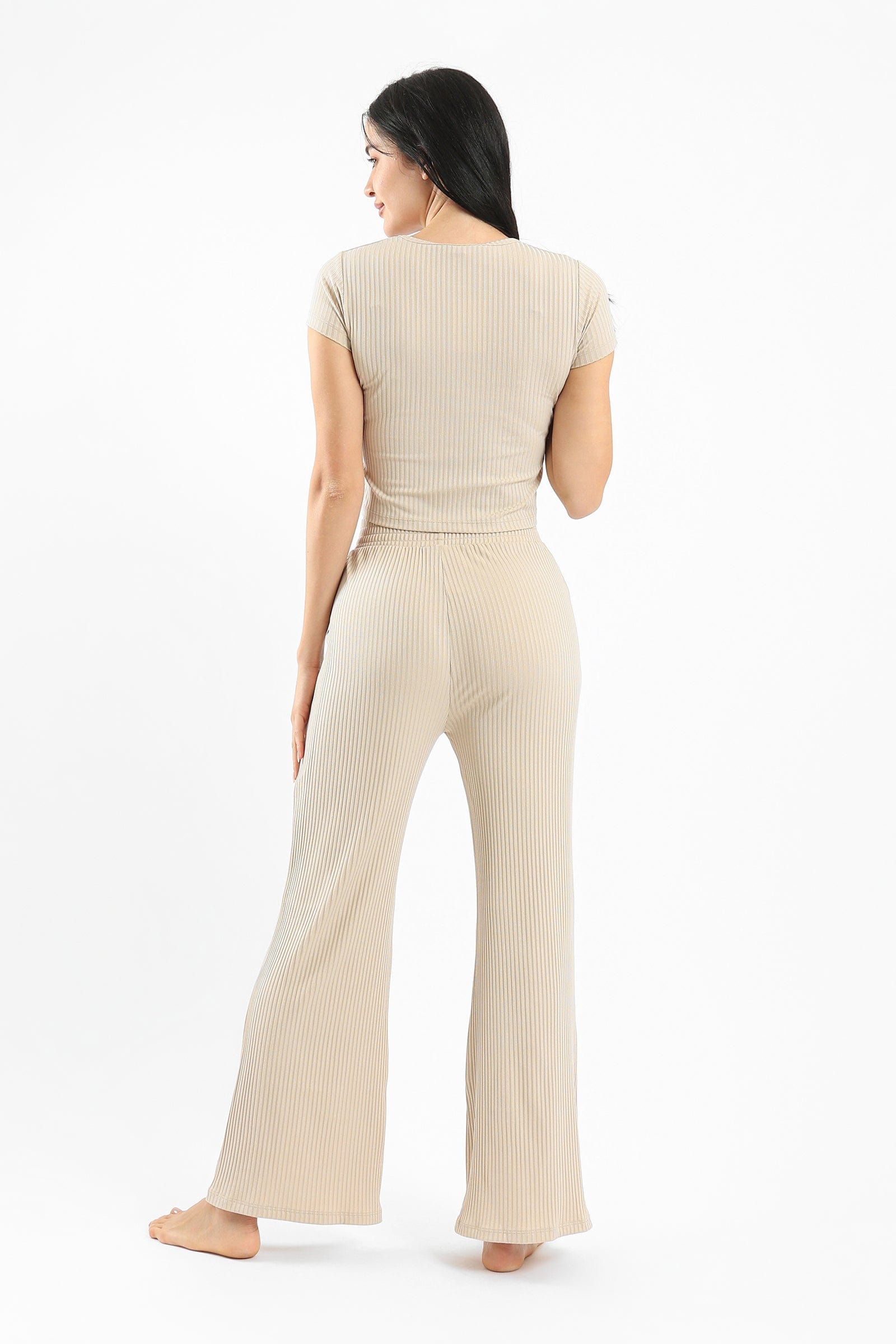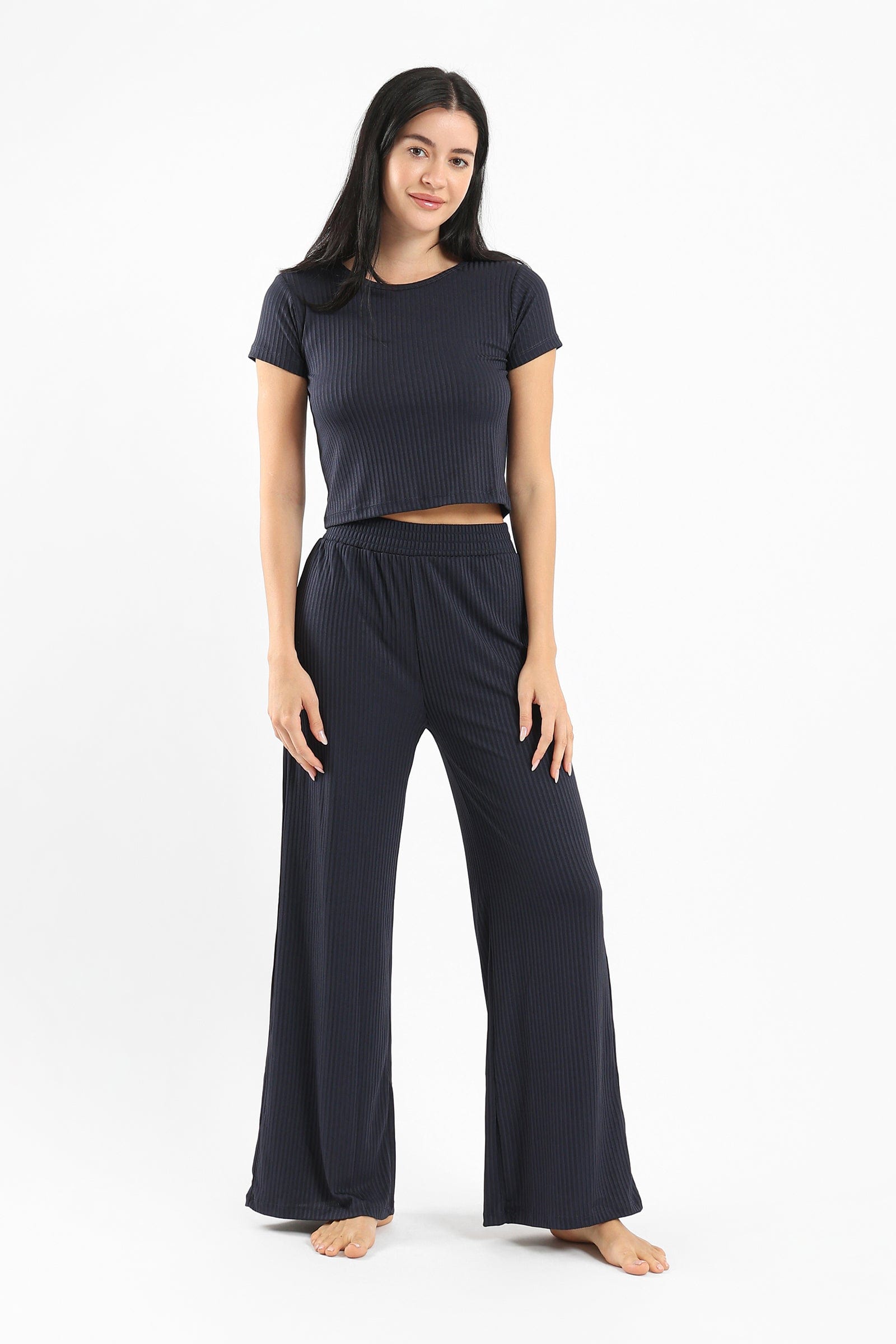 Ribbed Viscose T-Shirt and Pants Pajama Set