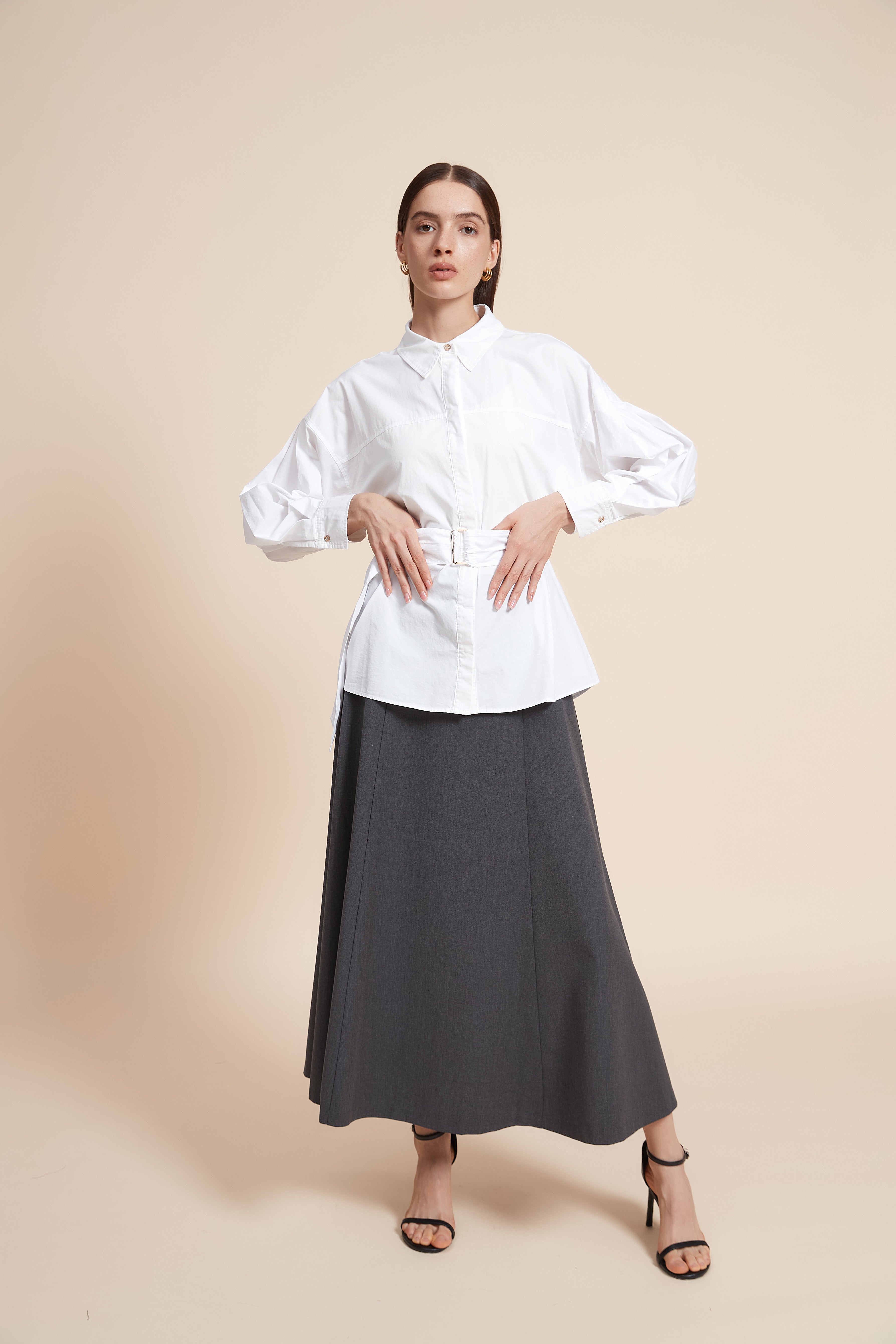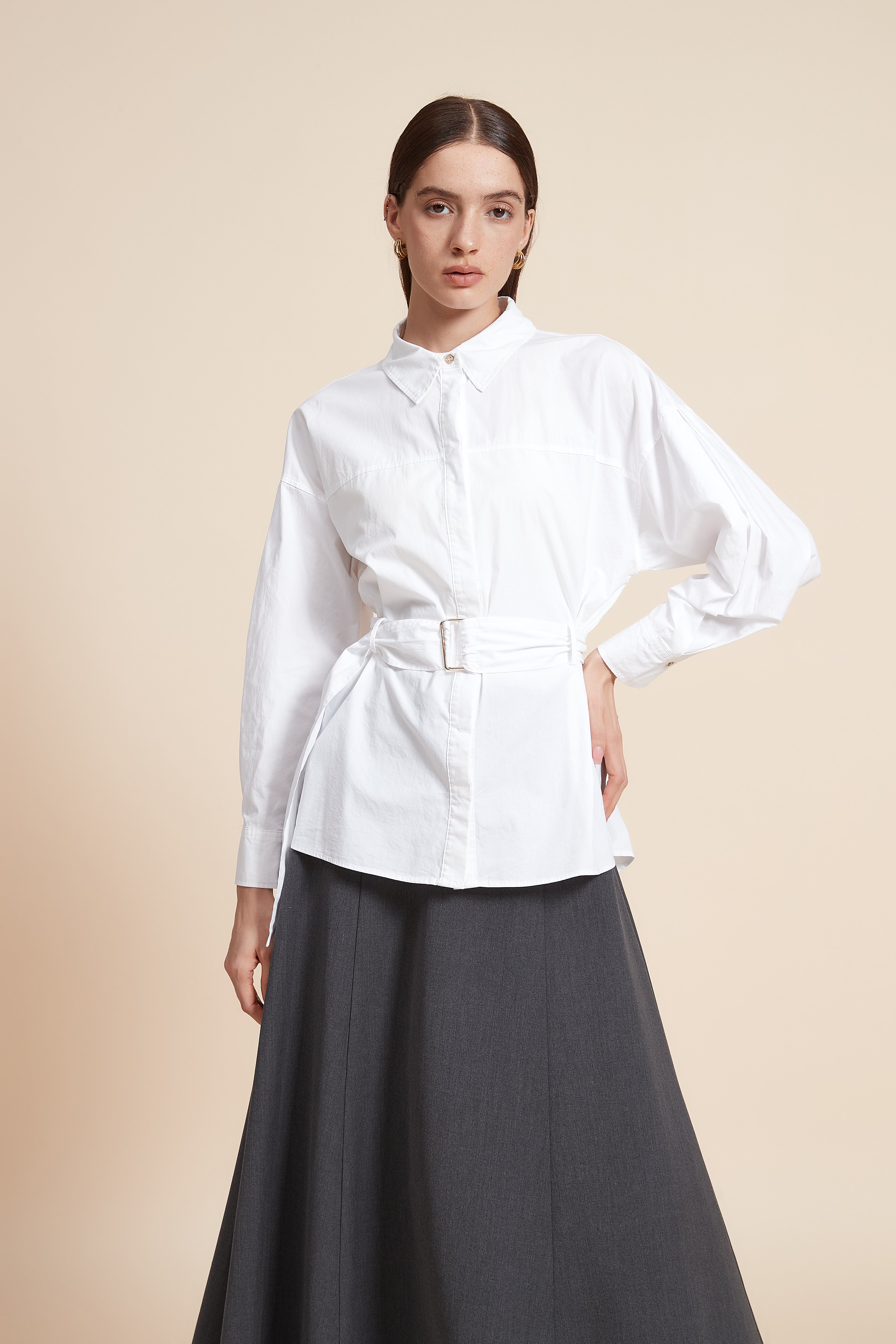 This plain, long-sleeved blouse with a belt at the waist is the perfect choice to add a touch of elegance to your everyday look. Made from comfortable and soft fabric, this blouse feels comfortable all day long. Its simple design comes with a belt that accentuates the waist, making it suitable for all occasions. Pair it with jeans or a skirt for a complete look. Don't miss the opportunity to always be at the top of your style game; order your blouse online now and get a distinctive look! Product number: iye163w254to