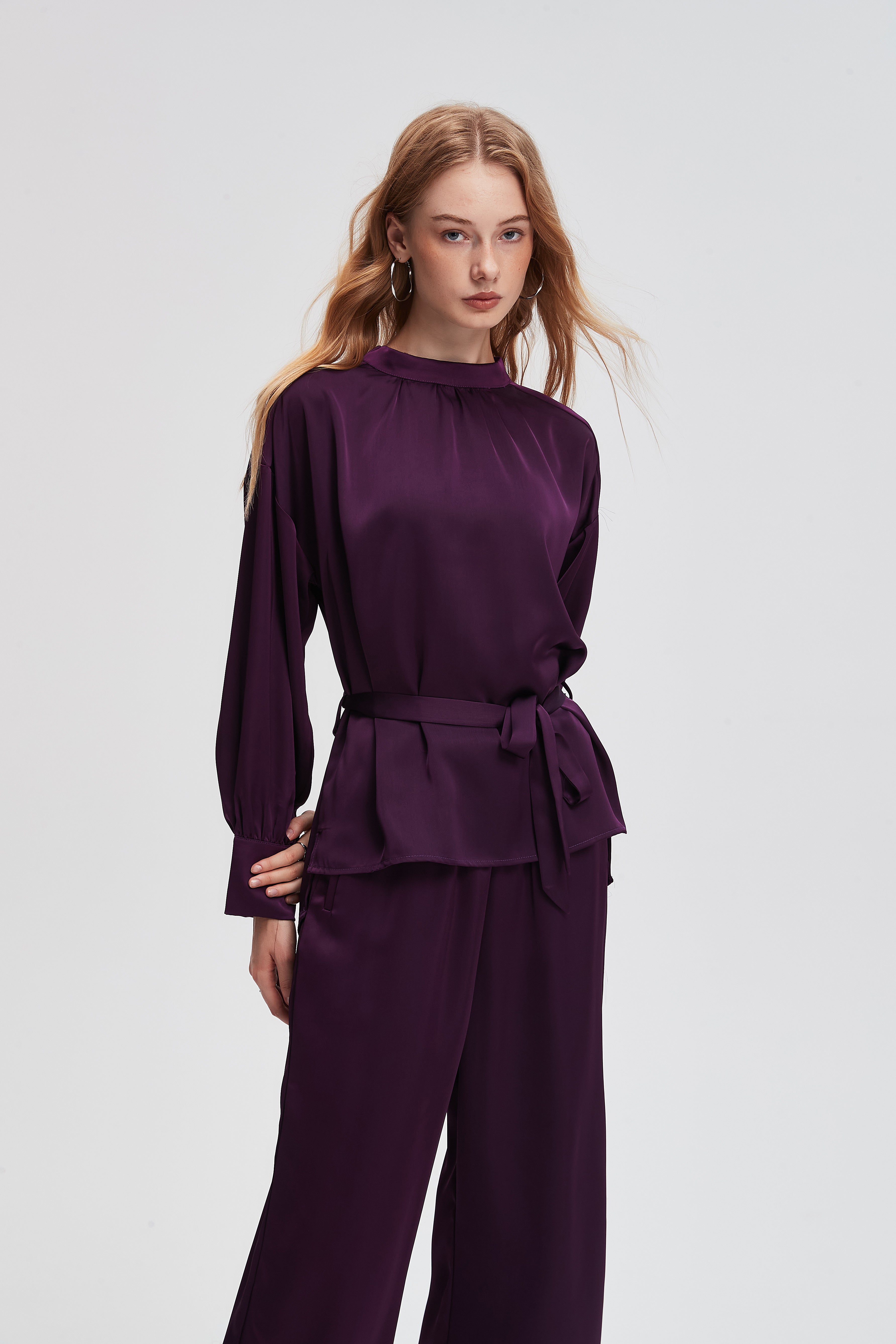 Solid Long-Sleeve Top with Tie
