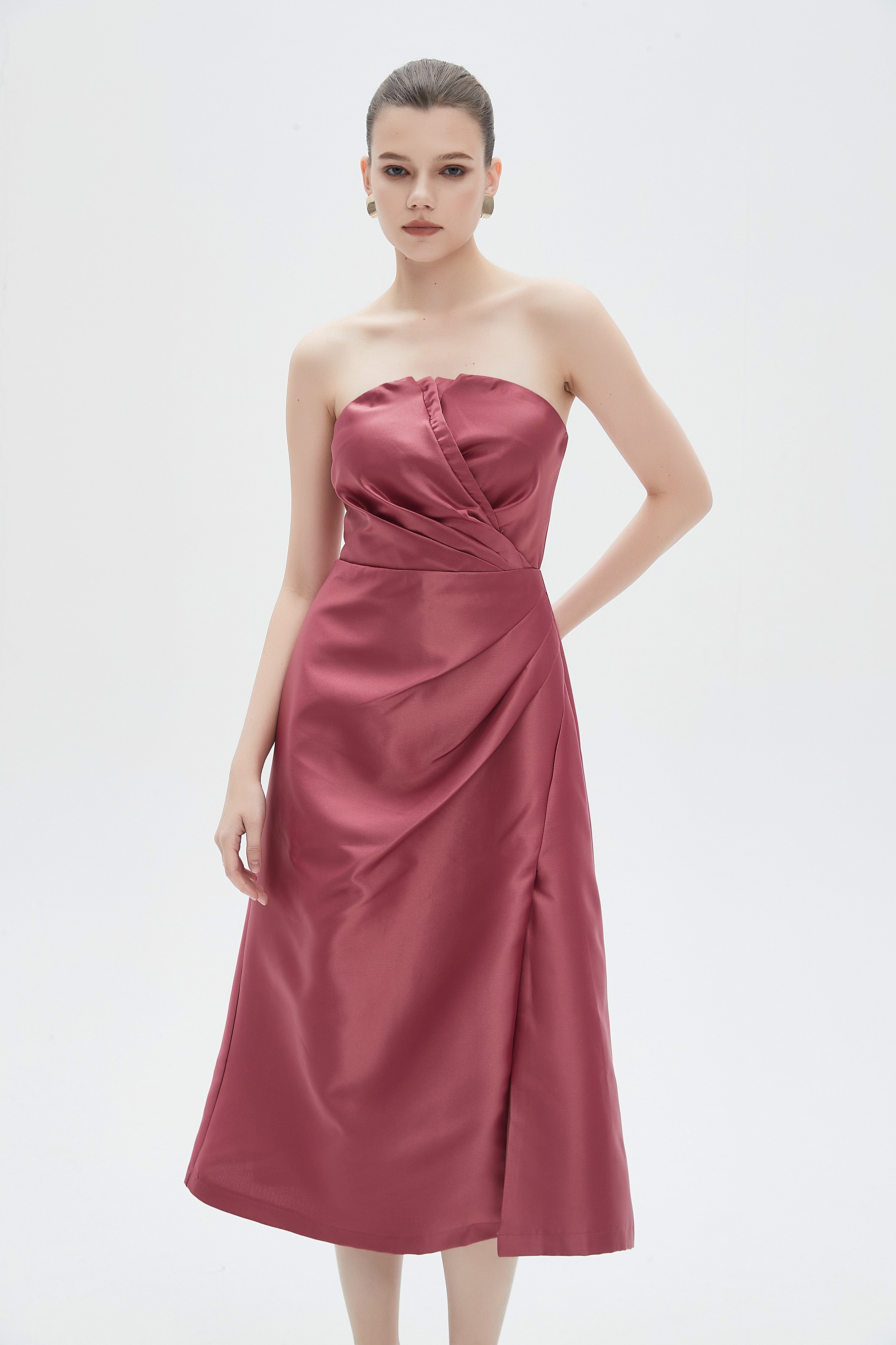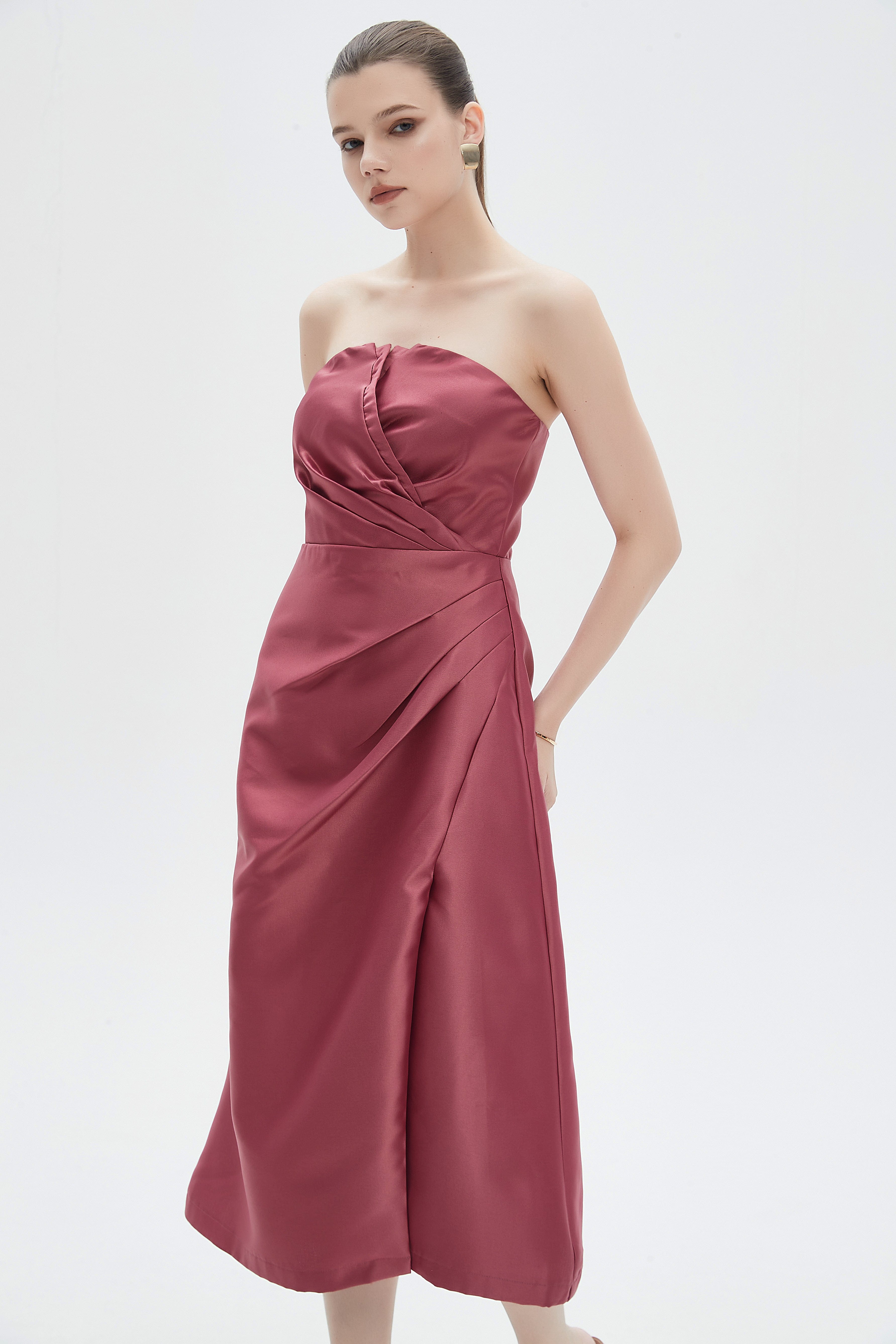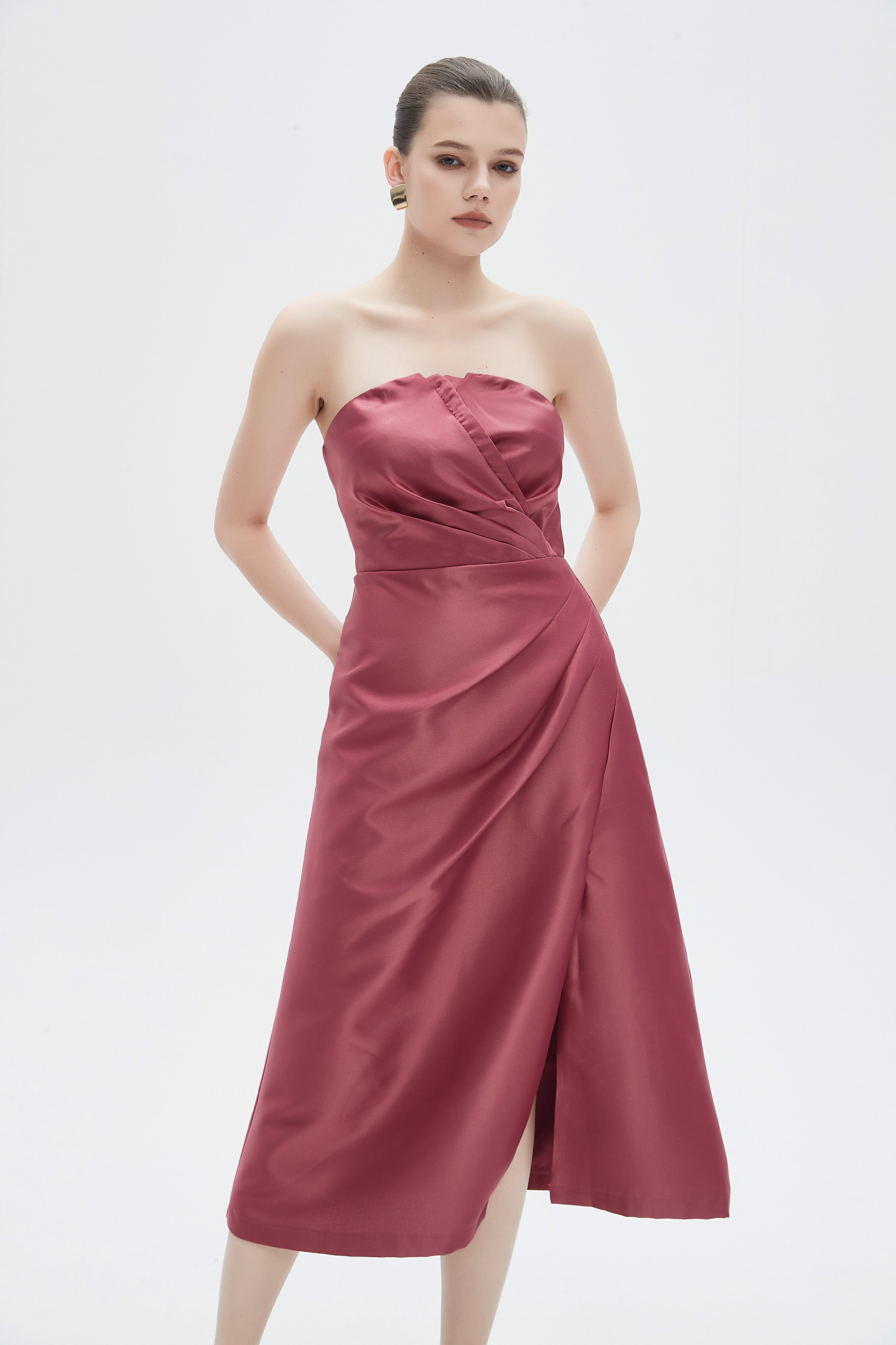 Turn heads in the Bordeaux Solid Midi Strapless Dress — a fashion-forward staple from Fashion SA that blends elegant evening appeal with structured comfort. The strapless, fitted bodice flows into a flattering A-line midi skirt, finished with a tasteful slit for movement and a zippered back for secure wear. Crafted from 100% polyester in a rich bordeaux solid, the medium-weight fabric holds shape while remaining low-maintenance and slightly forgiving. The unlined construction keeps the silhouette light and breathable, ideal for cocktail events and after-dark receptions. This pocketless design celebrates clean lines and modern minimalism, making it effortless to accessorise. Shop the look at Fashion SA and style it up for soirées, date nights or semi-formal gatherings — a timeless piece that commands attention.