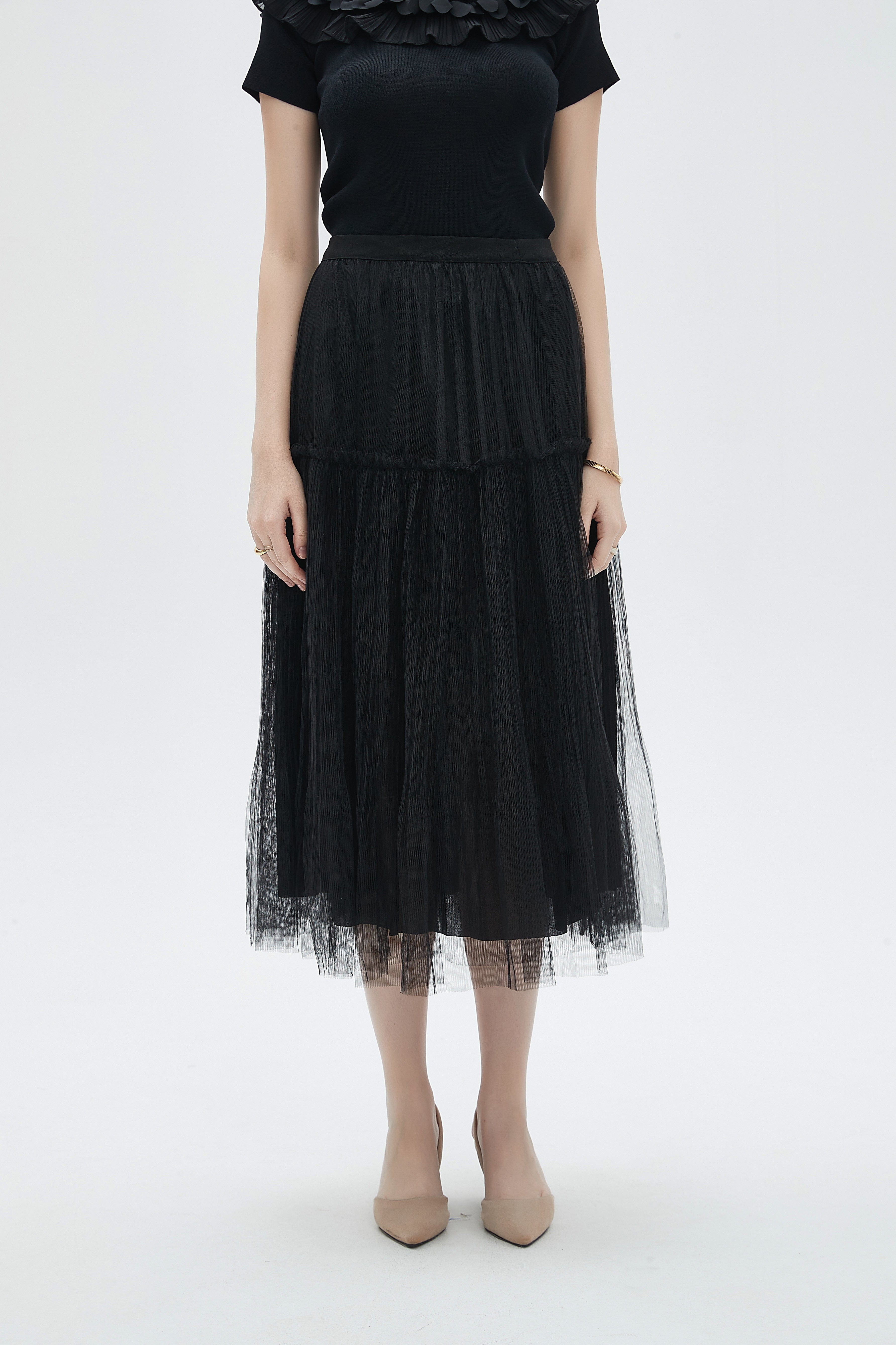 For those who appreciate a blend of elegance and comfort, the Pleated Midi Skirt with Chiffon Details by Mica is a must-have addition to your wardrobe. This skirt features a graceful pleated design that flows beautifully with every step, while the chiffon accents add a delicate touch that catches the eye. Perfect for both casual outings and more formal occasions, it pairs effortlessly with your favorite tops. Experience the charm and versatility this skirt brings. Don’t wait—order yours today through Fashion Saudi and elevate your style! Product Number: ms8075025q103