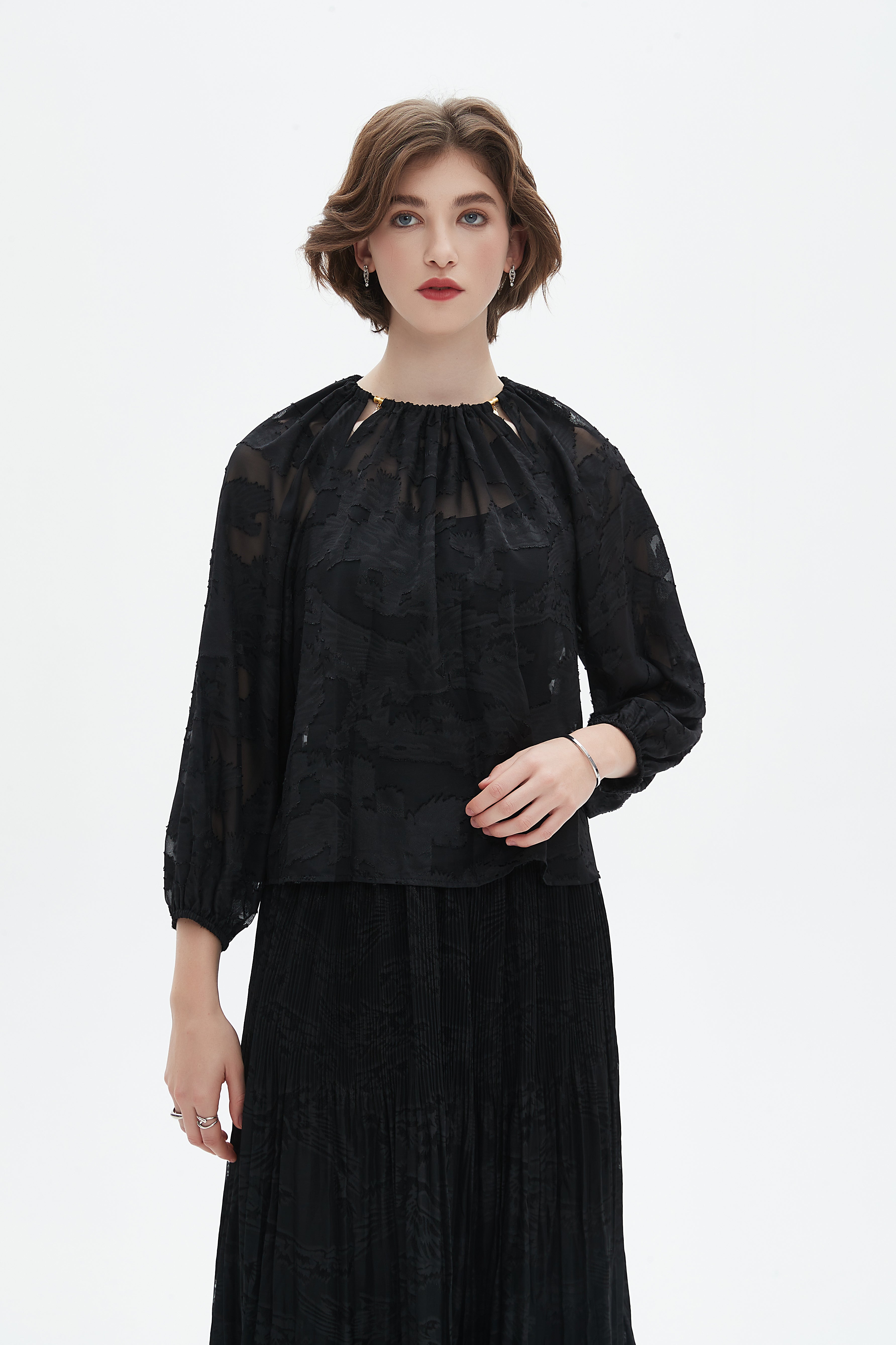 Embroidered Long-Sleeve Top