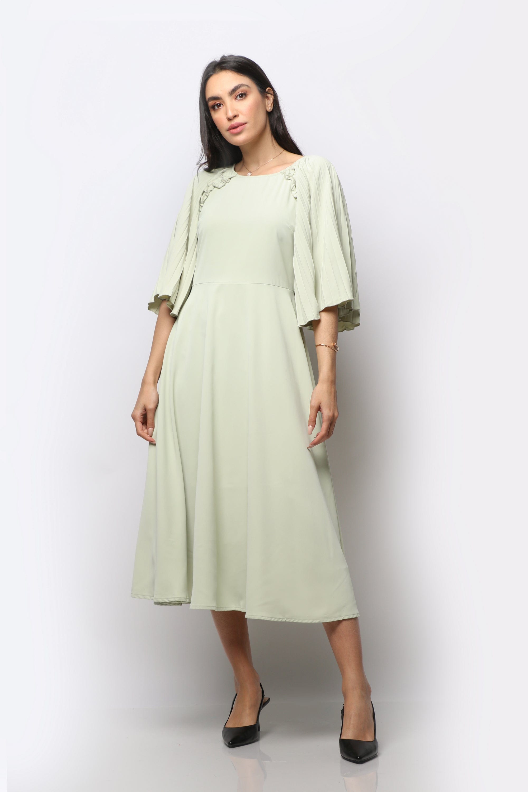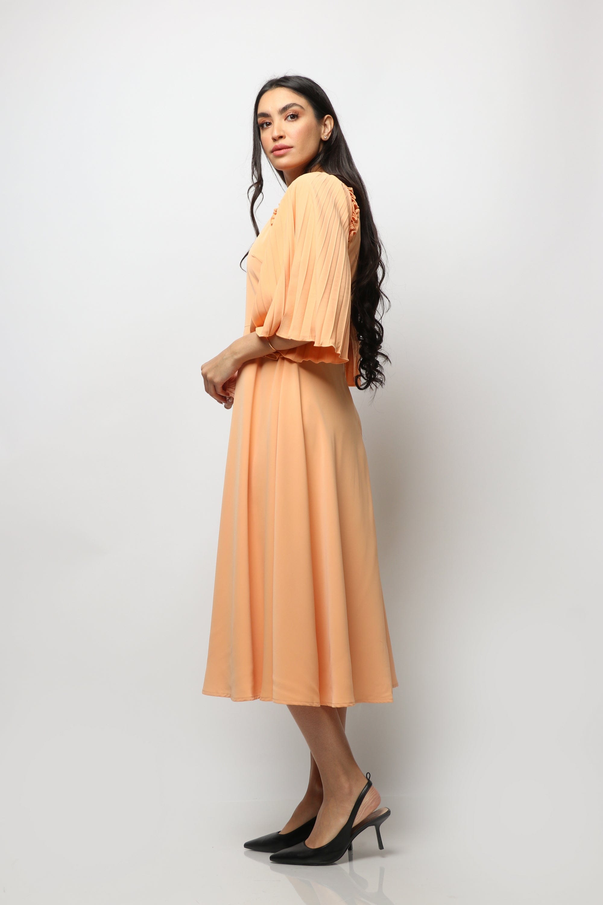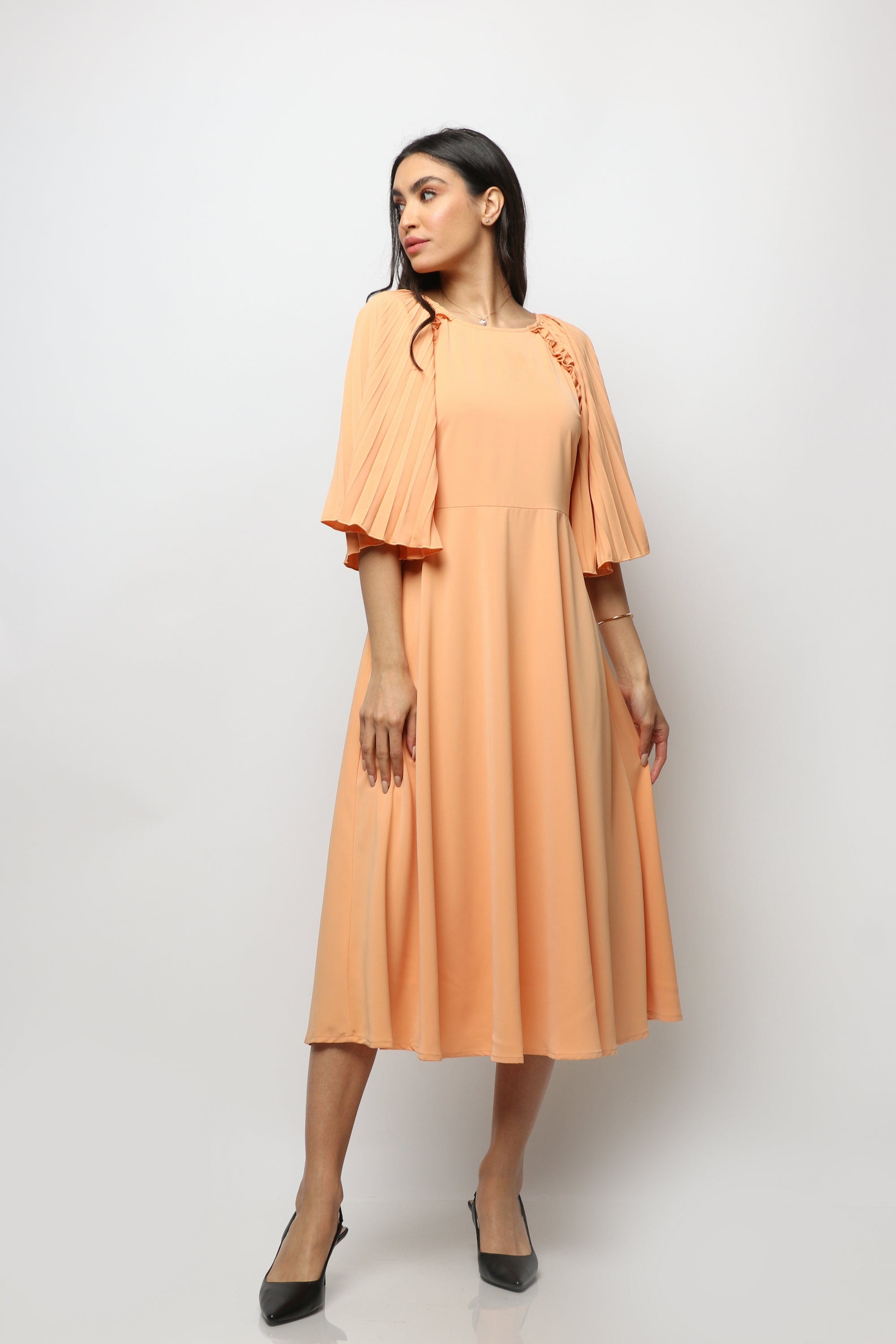 Effortlessly chic and endlessly wearable, the Solid Midi Bell-Sleeve Dress from Nichii modernizes casual dressing with feminine flair. Crafted in 100% polyester with a clean plain finish, the A-line silhouette skims the body in a regular fit, offering flattering waist definition and easy movement. The midi length creates a versatile balance between polished and playful, while short bell sleeves and a round neck add soft, on-trend details. Unlined construction and medium-weight fabric deliver comfortable drape without added bulk; polyester also resists wrinkles so it stays travel- and day-ready. Pocketless styling keeps the lines sleek, making this a go-to for weekend outings, coffee dates or relaxed office looks when layered. Discover effortless styling with Fashion SA — add this wardrobe staple to your cart today.