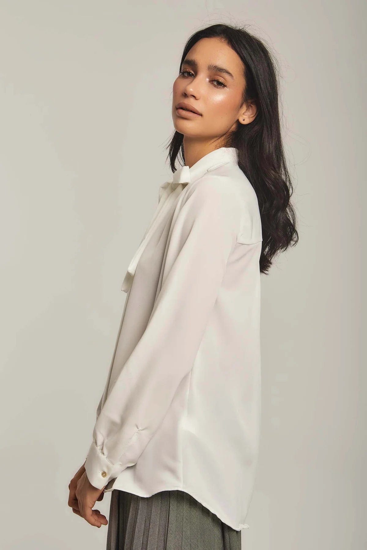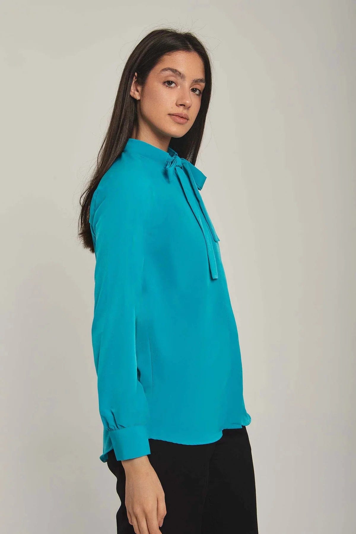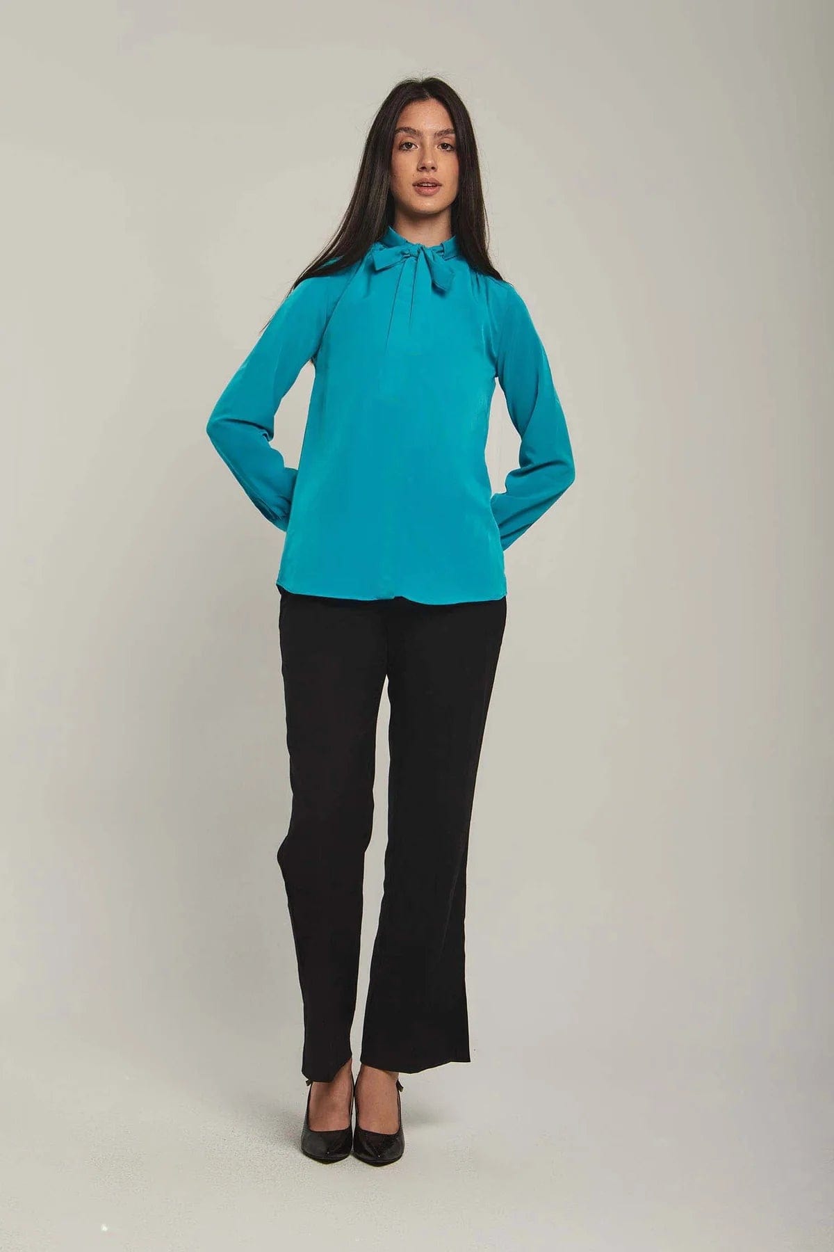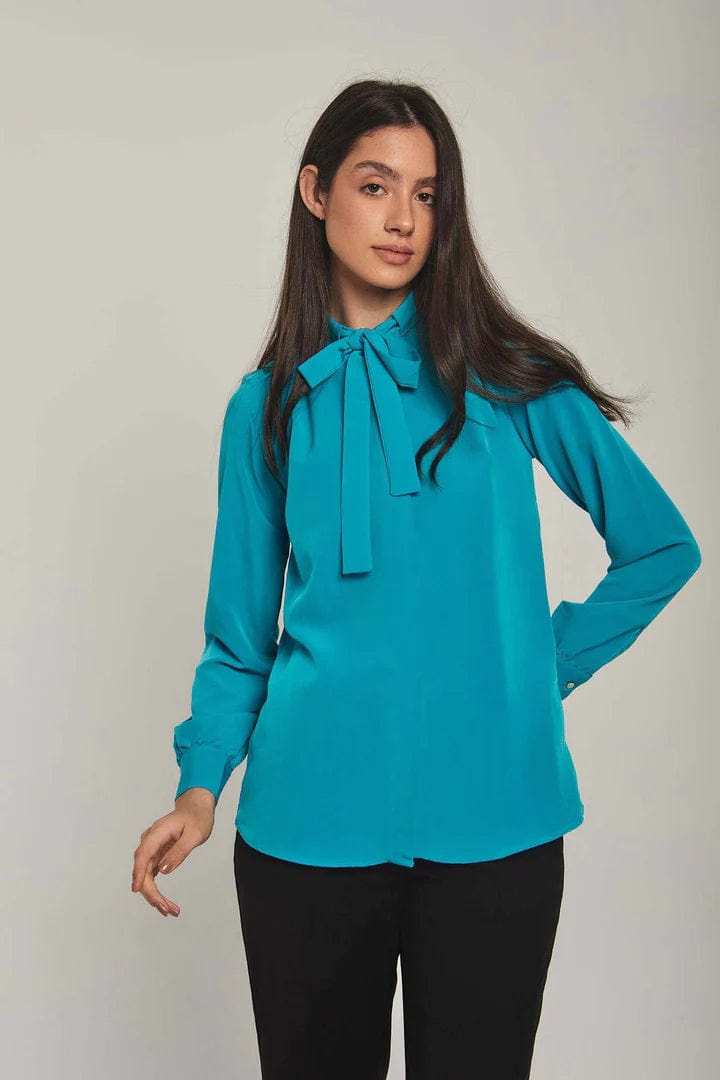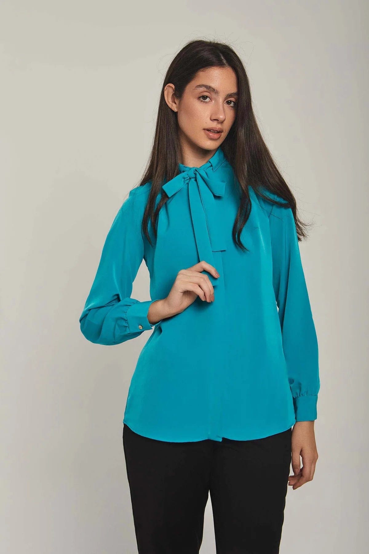 Add an elegant and beautiful touch to your look with a plain women's blouse with a tie from DalyDress. This blouse is available in five different colours including black, off-white, teal blue, cotton white and forest shades. This blouse is elegant and minimalist, with a tie that adds a wonderful touch of aesthetics. Perfect for everyday looks and special occasions. Wear with jeans or skirt for a complete look. Get now a plain bow blouse from Fashion Saudi Arabia and add a touch of elegance to your wardrobe. Order it now and enjoy the most beautiful fashion from Fashion Saudi Arabia. Product Number: 240-54-2142-367