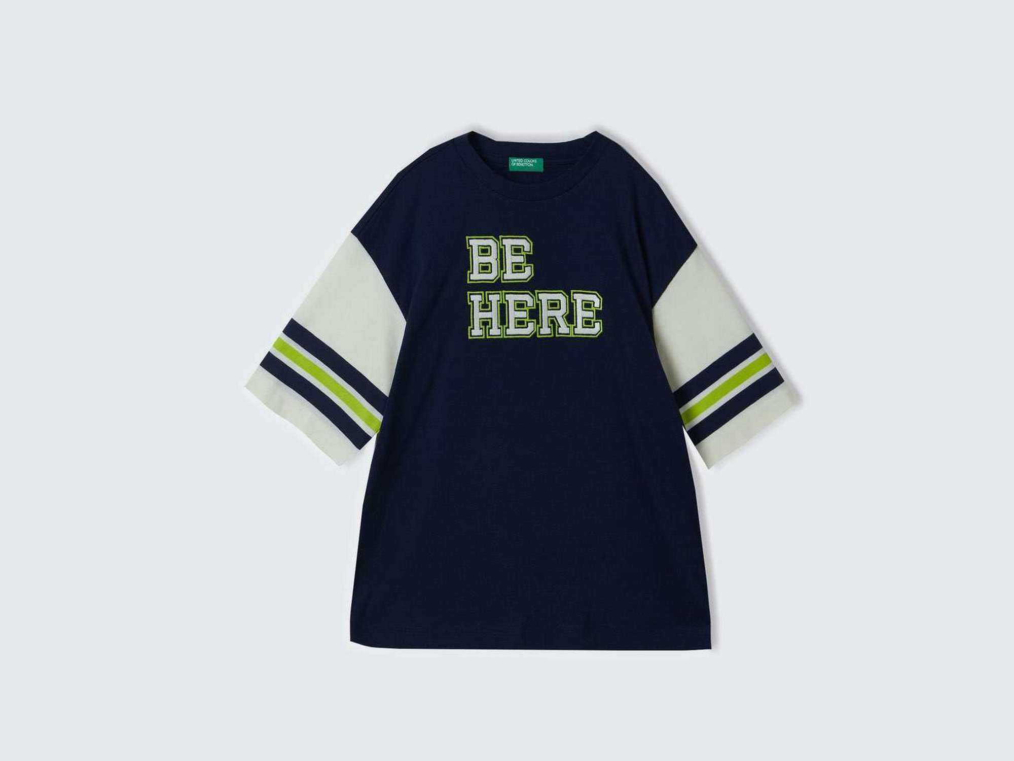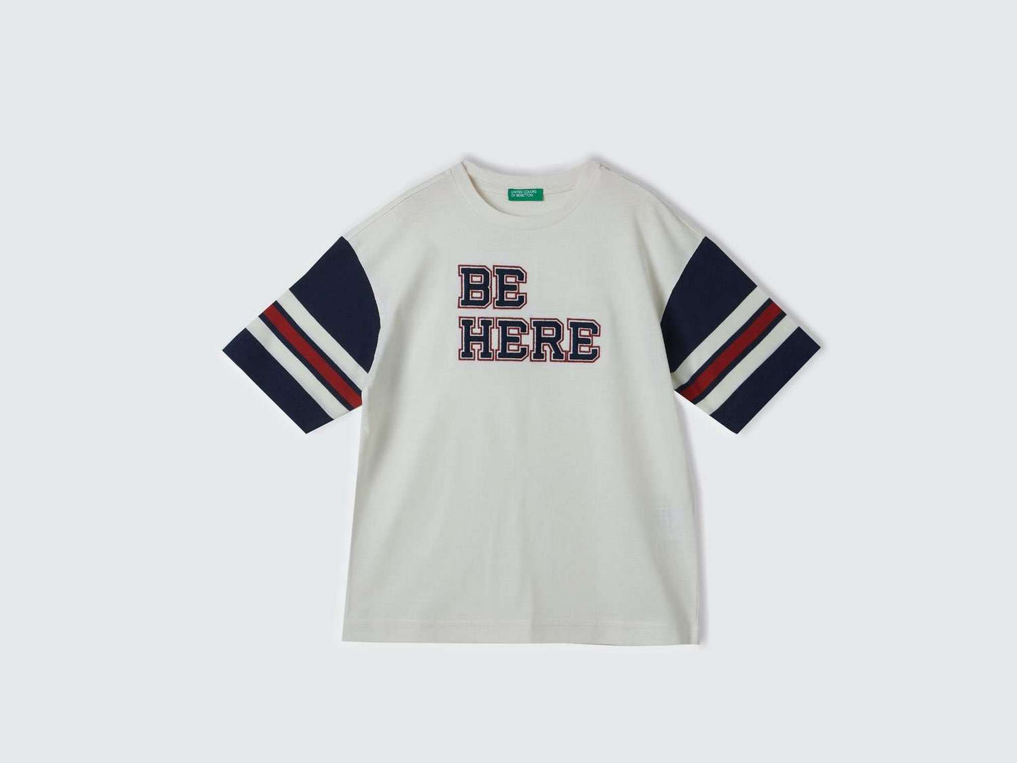 Enjoy your little ones' look with an Oversize T-shirt with my kids embroidery from United Colors of Benetton. This t-shirt is available in attractive colours, including blue and beige, to suit your child's preferences. Made of high-quality materials, to ensure comfort and durability all day long. It has a distinctive design and beautiful embroideries that add a unique touch to your child's look. Style it with jeans or skirt for a modern and relaxed look. Get now an Oversize T-shirt with my children's embroidery from United Colors of Benetton and give your child the style and comfort he deserves. Order now and enjoy easy and enjoyable shopping through Fashion KSA! Manufacturer No: 3096C10HD