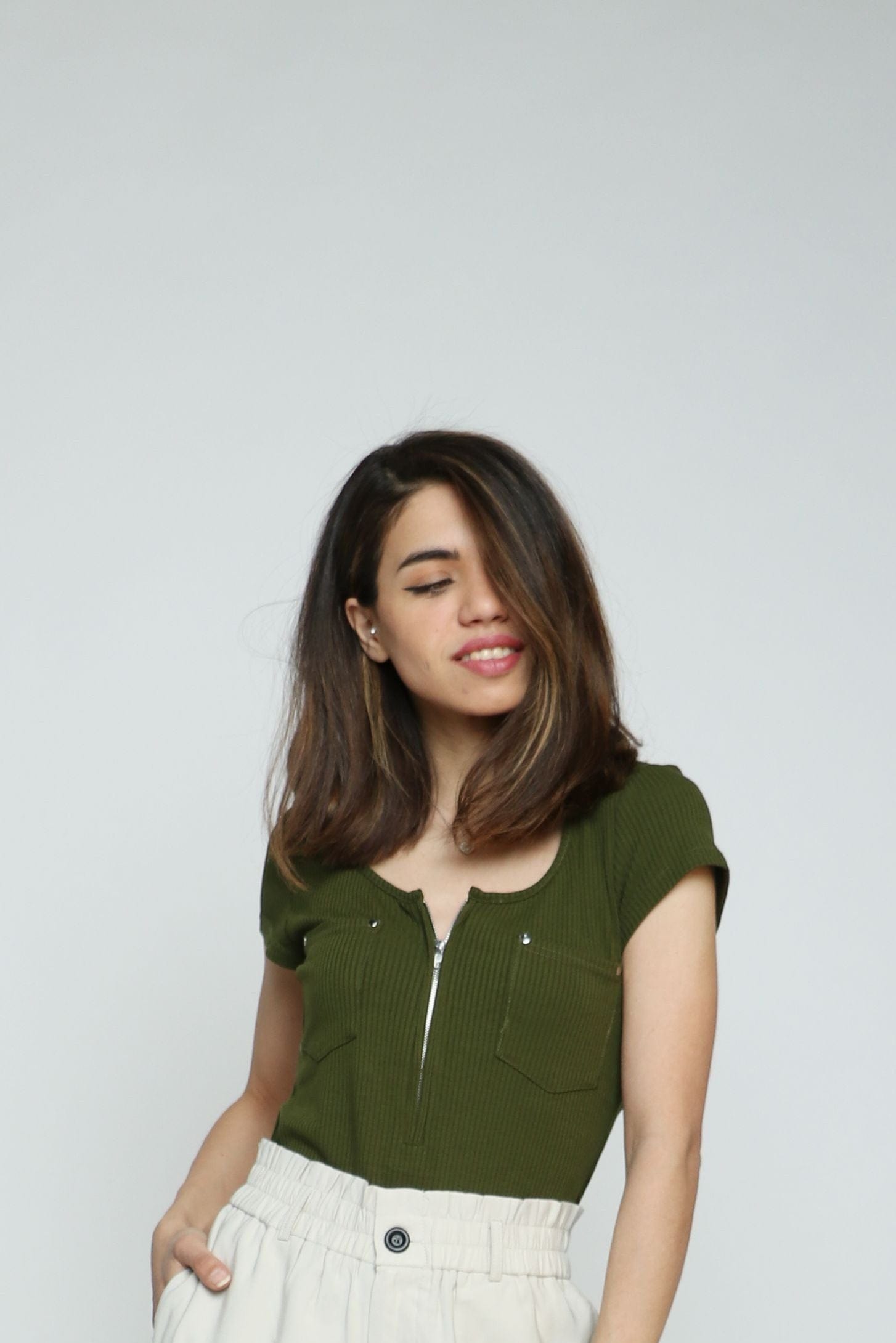 Get a blouse with pockets and zipper sleeves for women Kitschen Get ready for a contemporary look. This blouse comes in a variety of colors to suit your unique taste, including army green, pink and white. This blouse features practical pockets and a short sleeve zipper, adding a chic and modern touch to your look. Designed with high quality and comfortable fabric to keep you comfortable all day long. Be radiant and get a blouse with pockets and zipper sleeves for women Kitschen Now from Fashion Saudi Arabia. Order it now and enjoy unparalleled elegance. Product Number: 05-1876