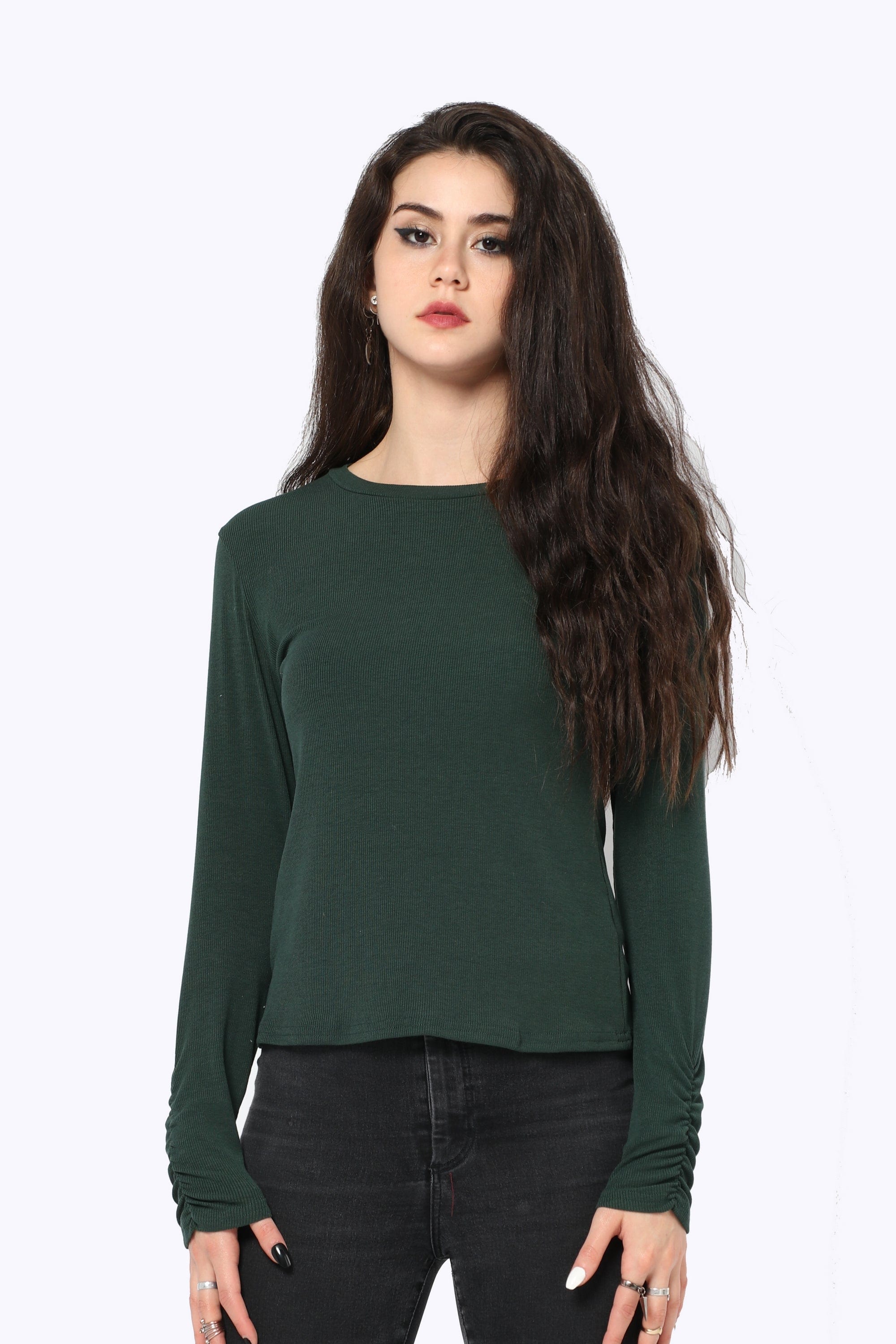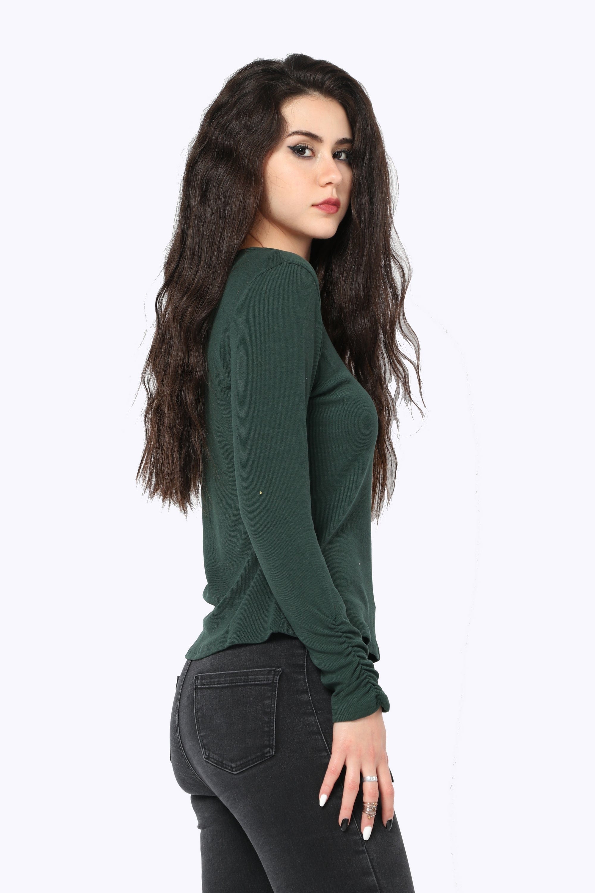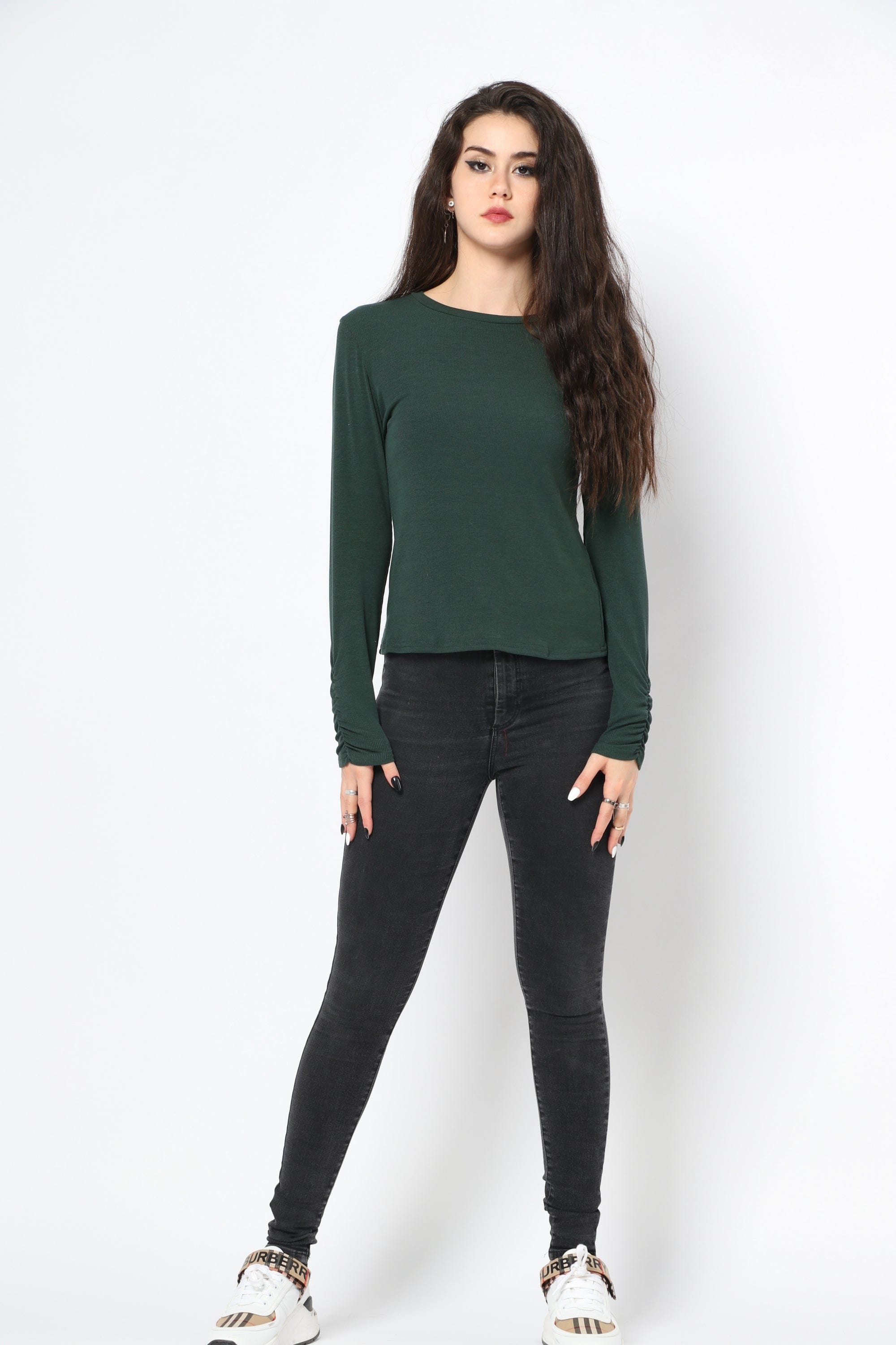 Get ready to shine with a plain ribbed long sleeve blouse for women from Fashion Saudi Arabia. This blouse is available in three gorgeous colors: beige, black, and emerald. This blouse is designed with superior elegance and ribbed details add a glamorous touch to your look. It is characterized by its soft fabric and long sleeve that adds a feminine touch and elegance to your look. Wear it with jeans or a skirt for a modern and stylish look for any occasion. Get now a plain ribbed long sleeve blouse for women from Fashion Saudi Arabia and get ready to shine in your own style. Order it now and be the center of attention on every occasion from Fashion Saudi Arabia. Product Number: 07-0776