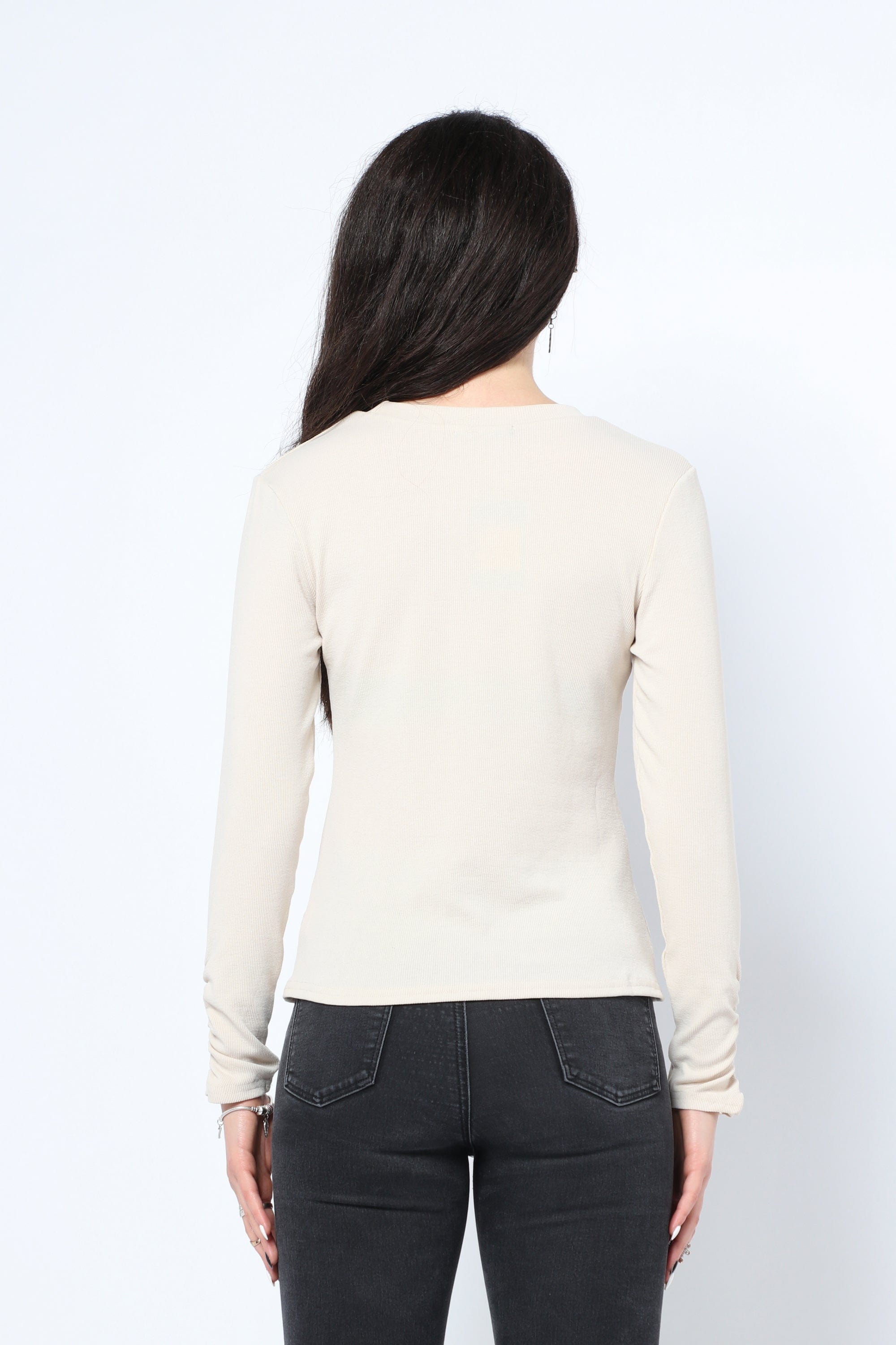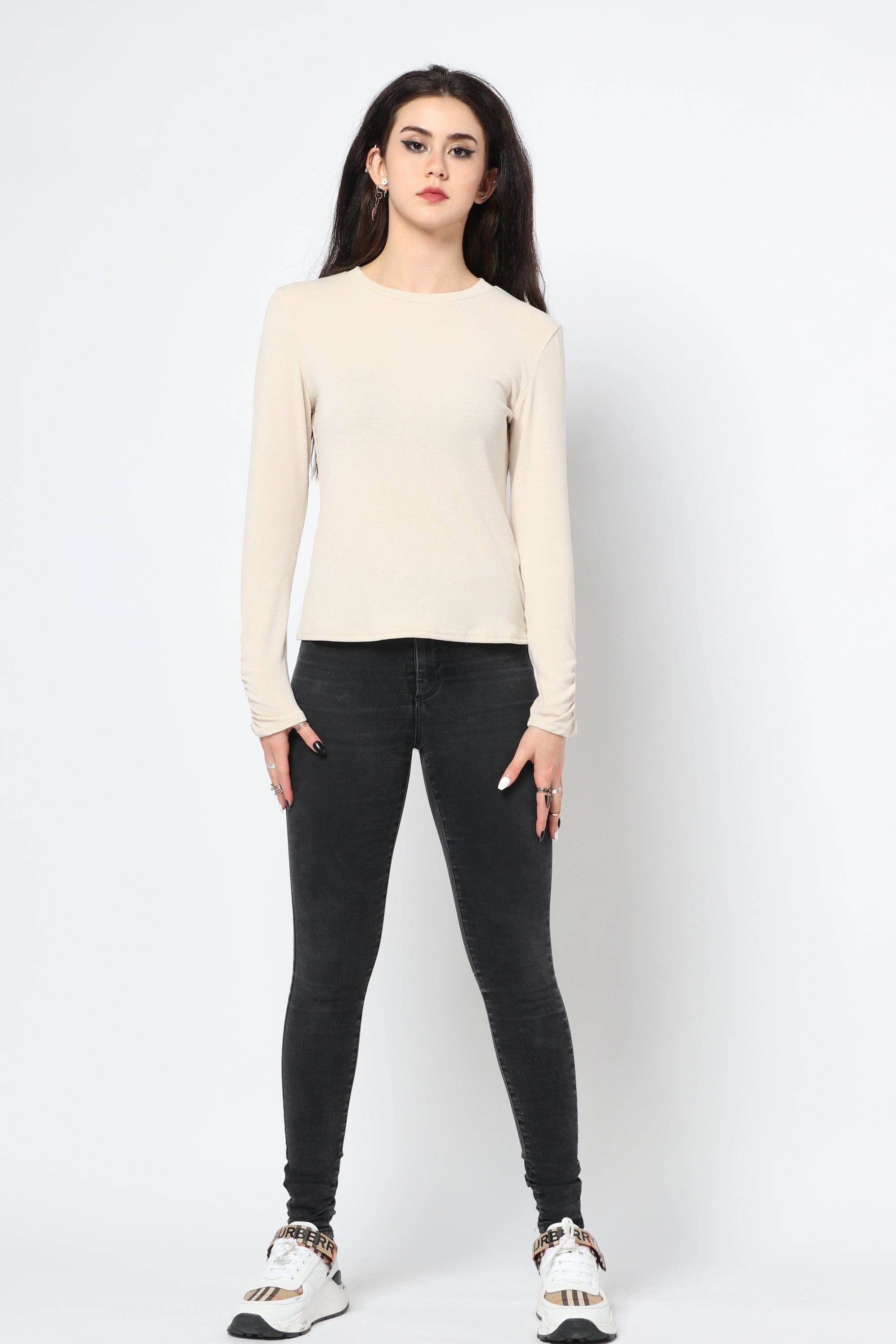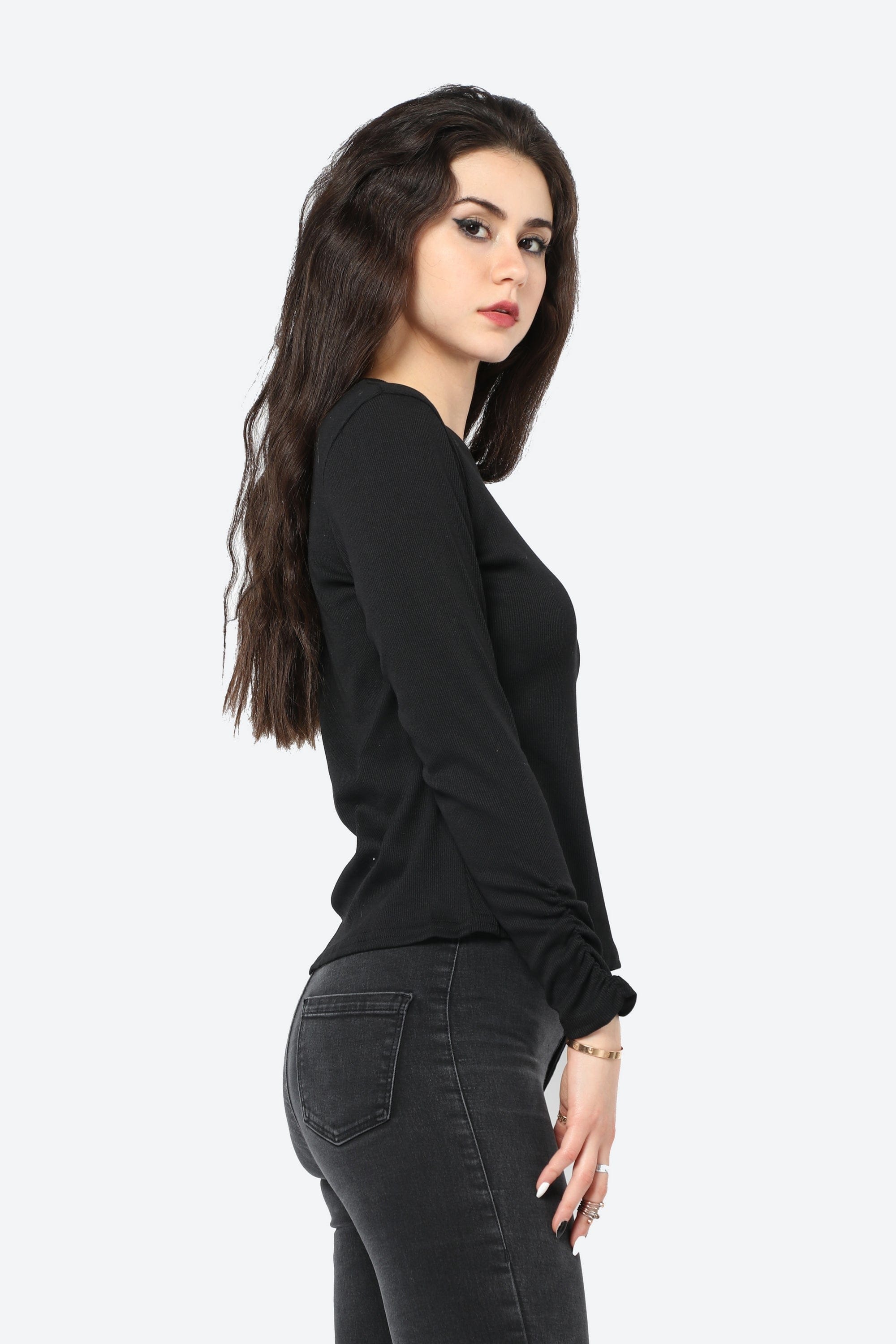 Get ready to shine with a plain ribbed long sleeve blouse for women from Fashion Saudi Arabia. This blouse is available in three gorgeous colors: beige, black, and emerald. This blouse is designed with superior elegance and ribbed details add a glamorous touch to your look. It is characterized by its soft fabric and long sleeve that adds a feminine touch and elegance to your look. Wear it with jeans or a skirt for a modern and stylish look for any occasion. Get now a plain ribbed long sleeve blouse for women from Fashion Saudi Arabia and get ready to shine in your own style. Order it now and be the center of attention on every occasion from Fashion Saudi Arabia. Product Number: 07-0776