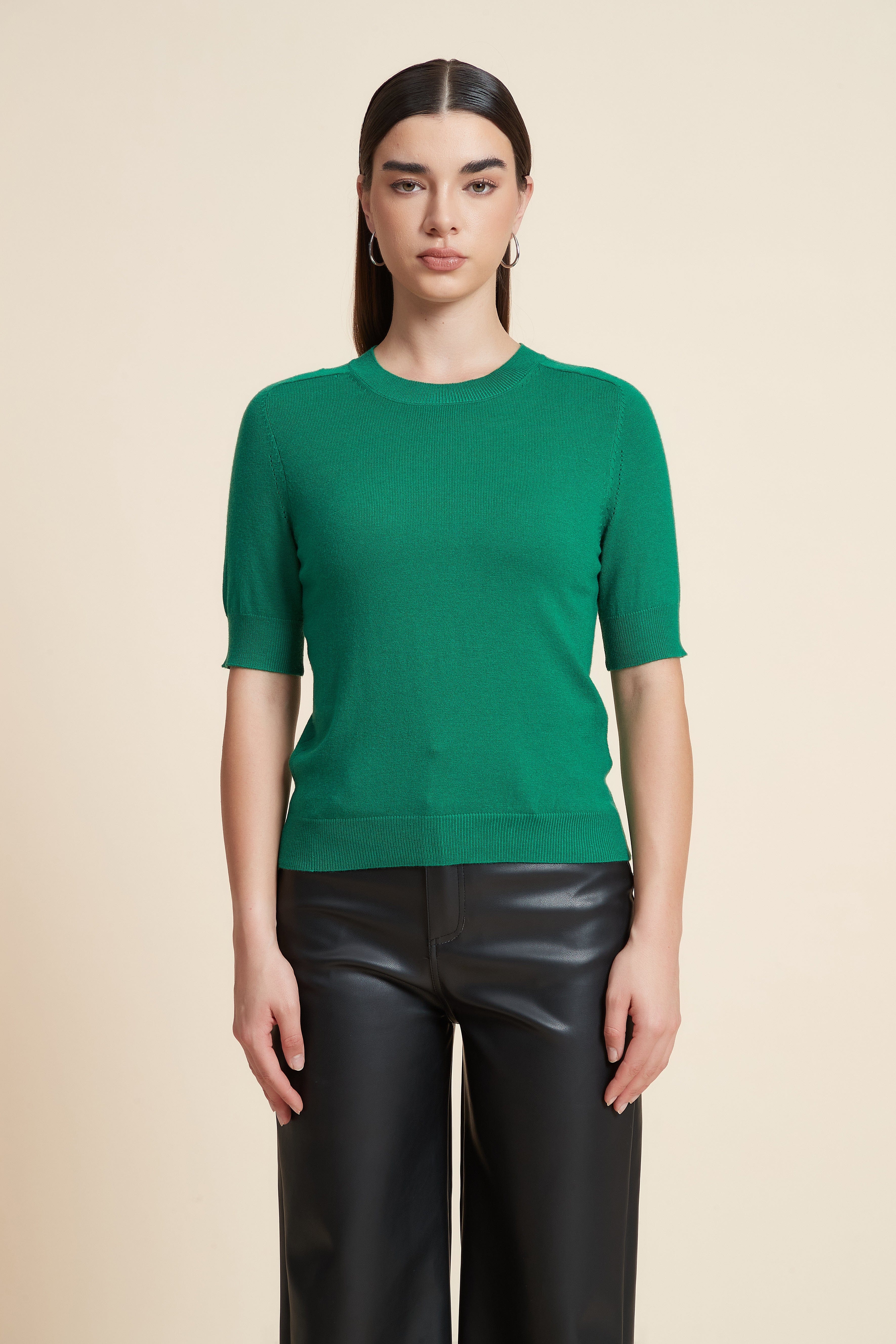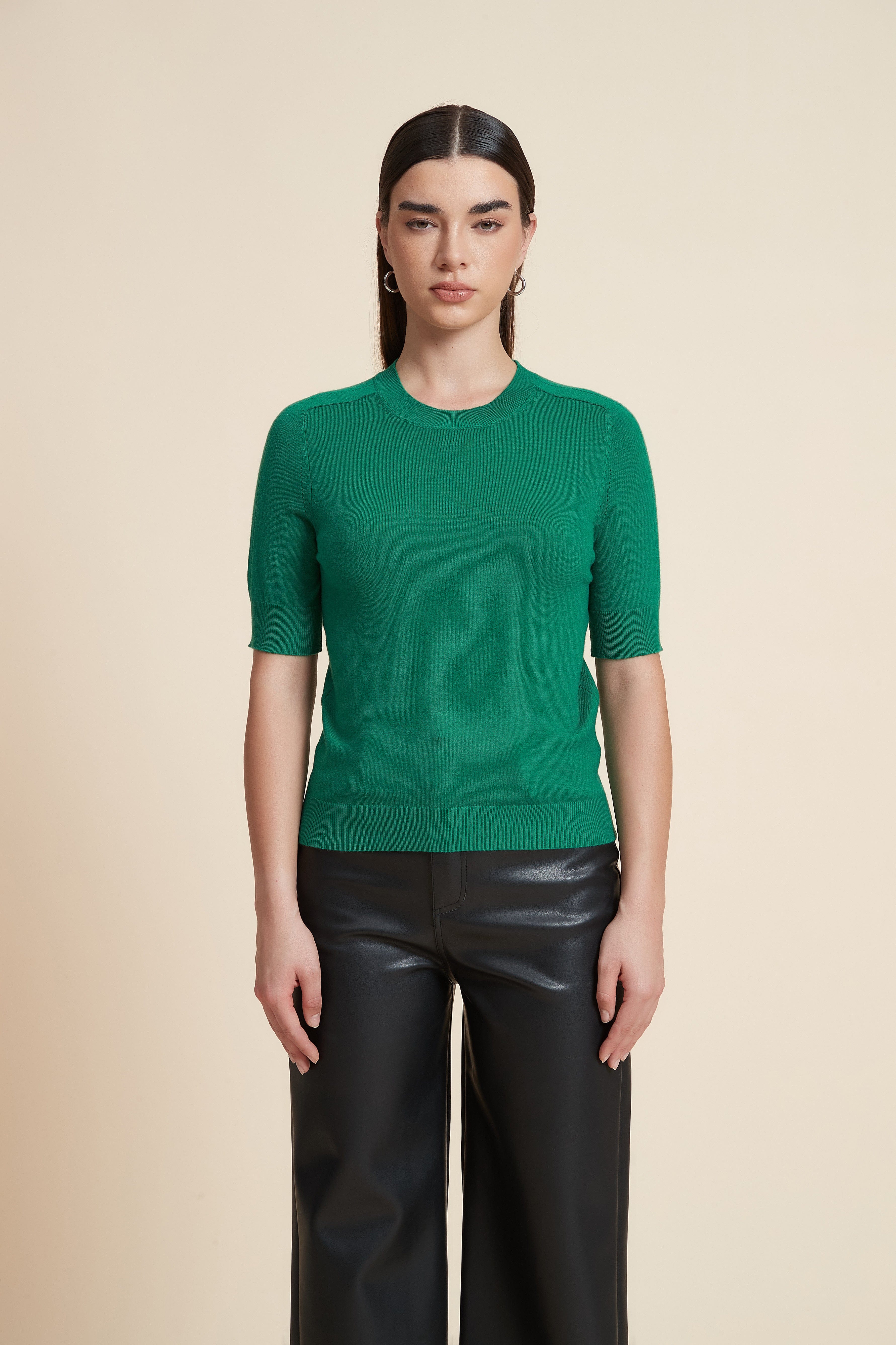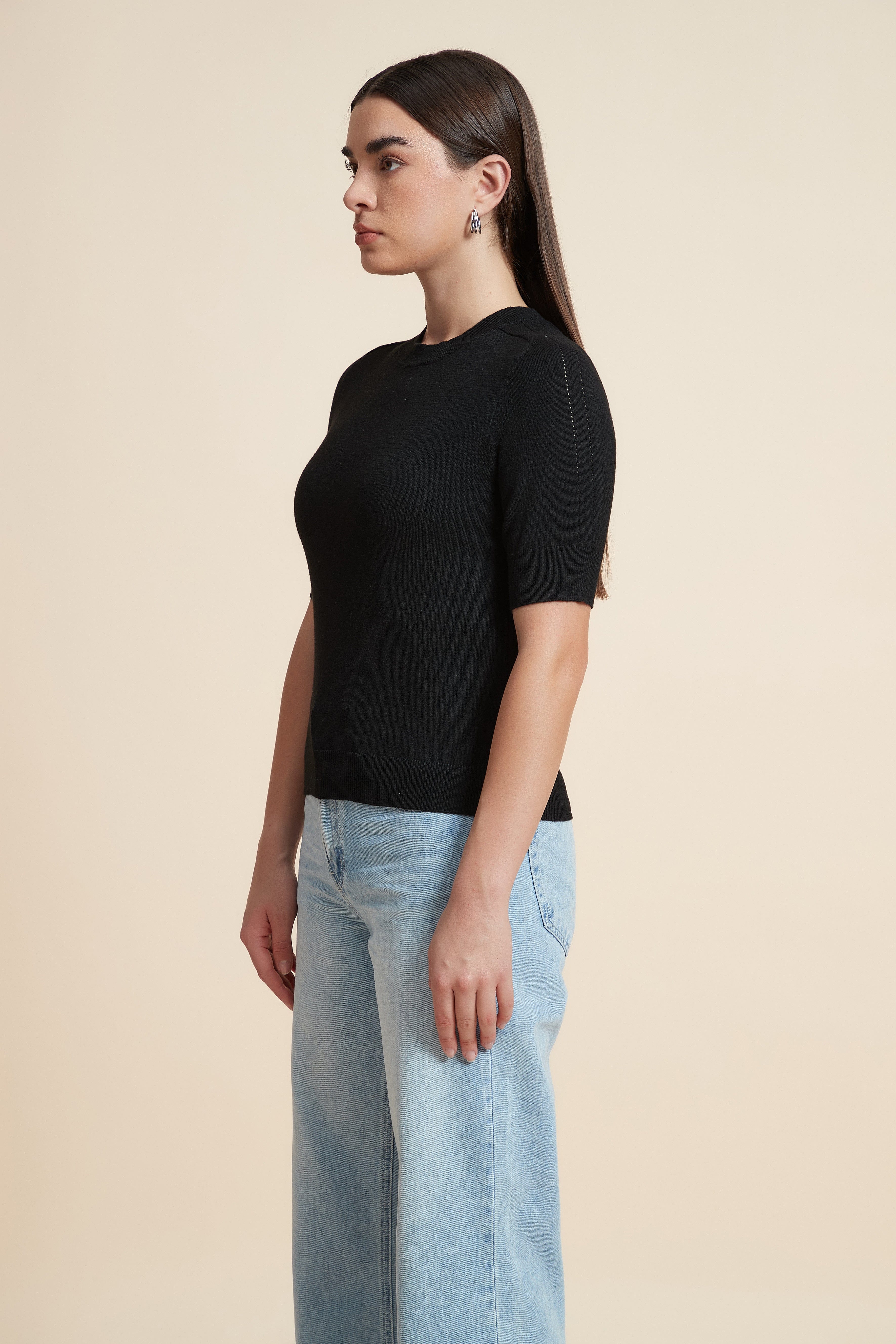 Plain Short Sleeve Top with Round Neck