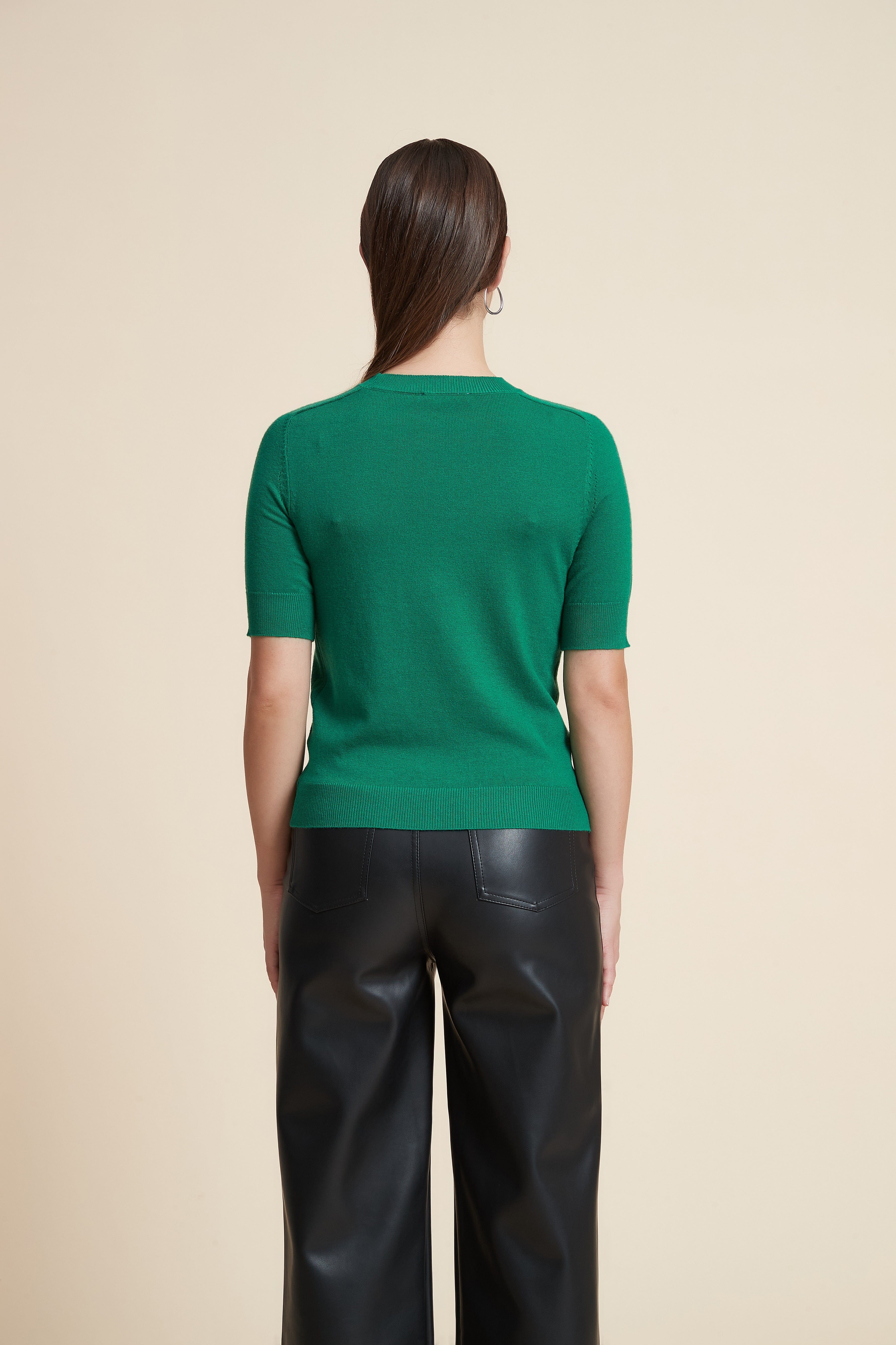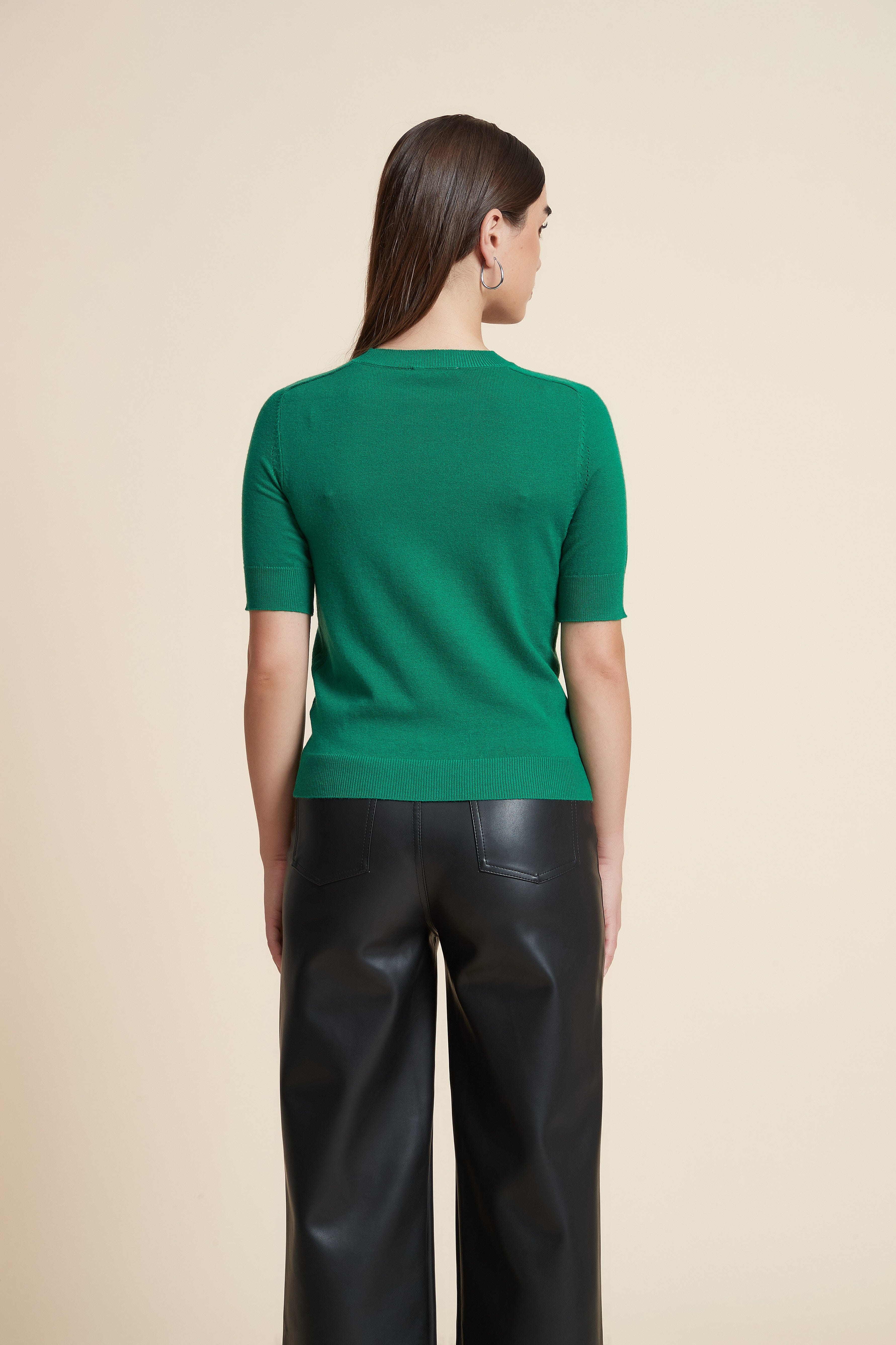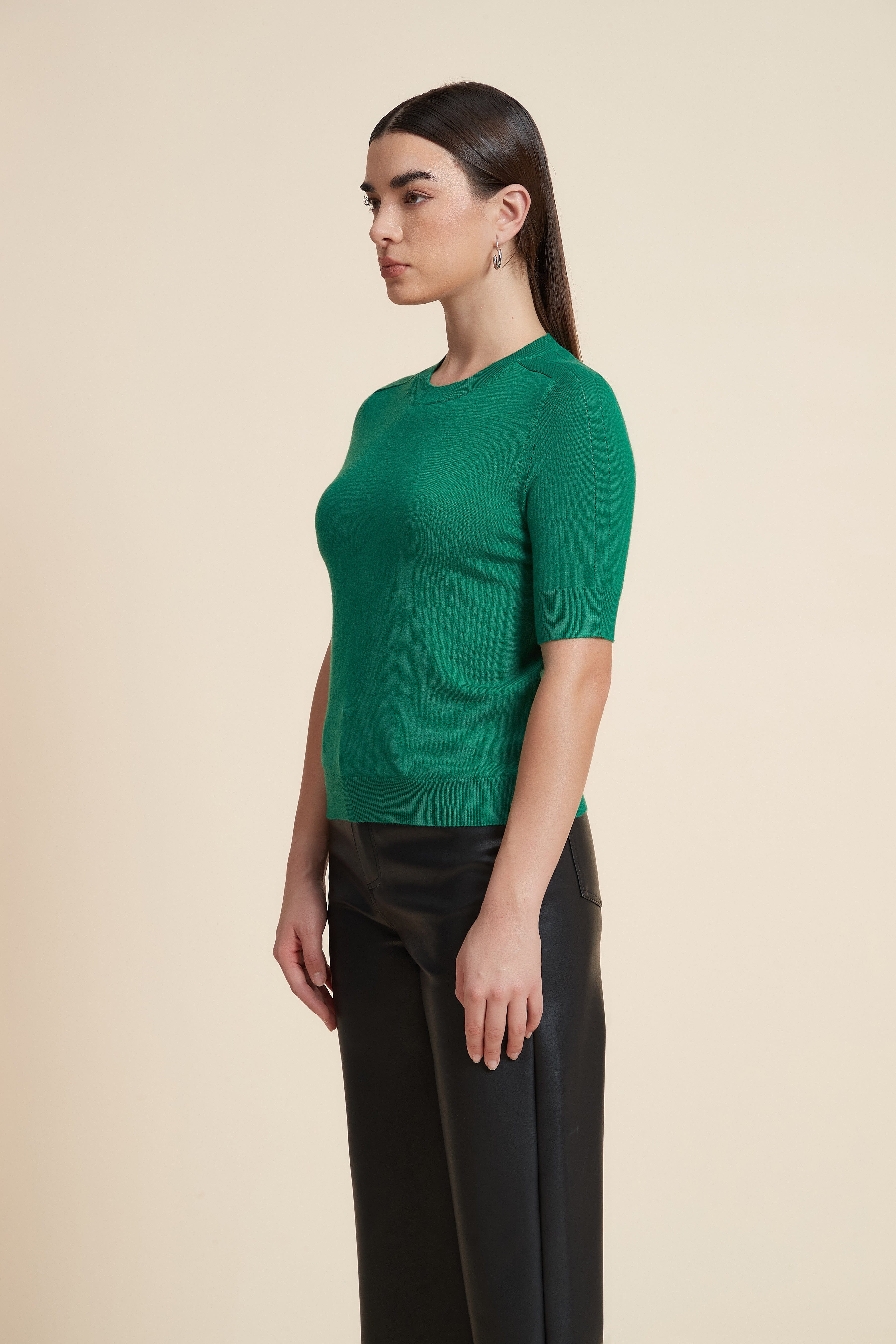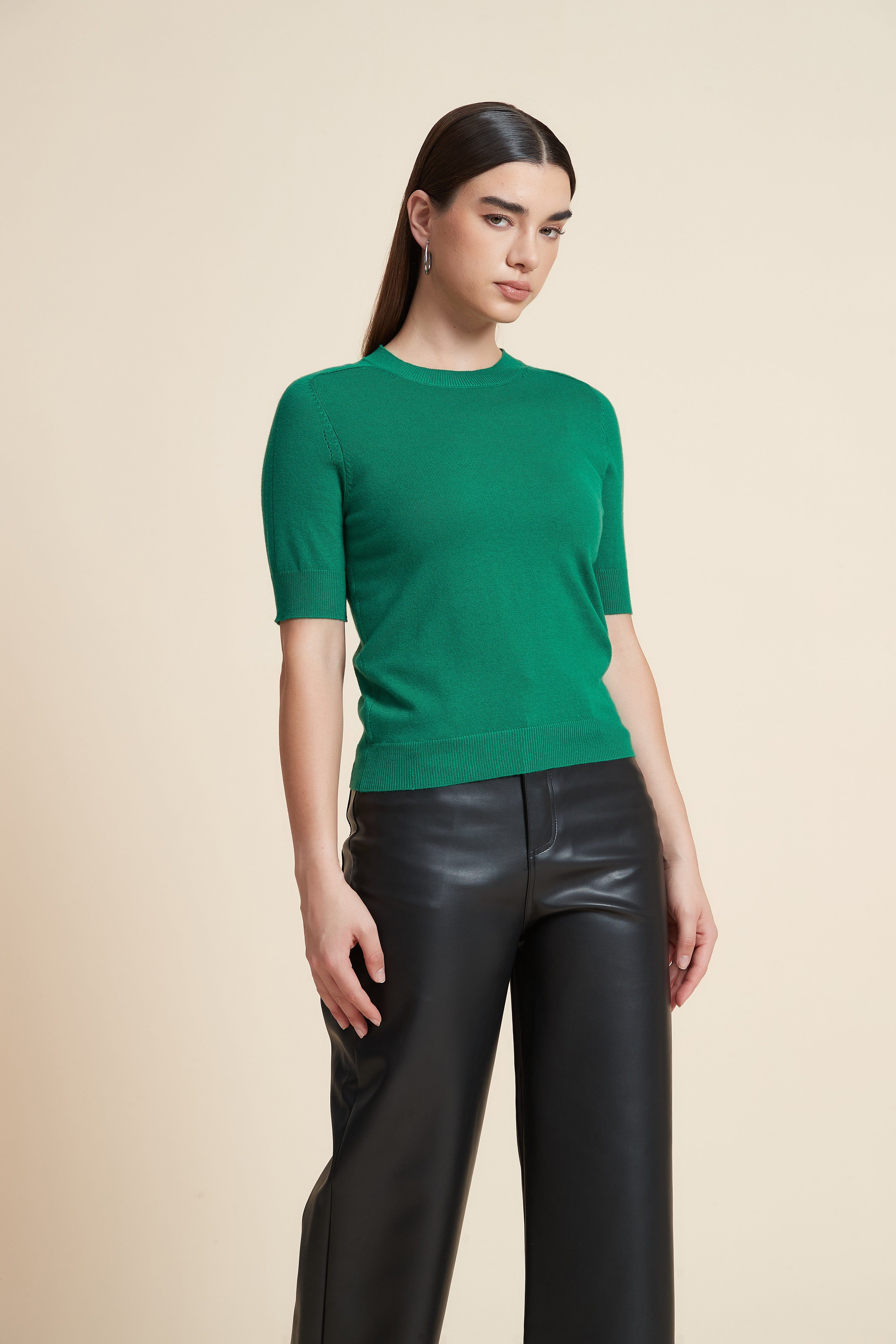 Plain Short Sleeve Top with Round Neck