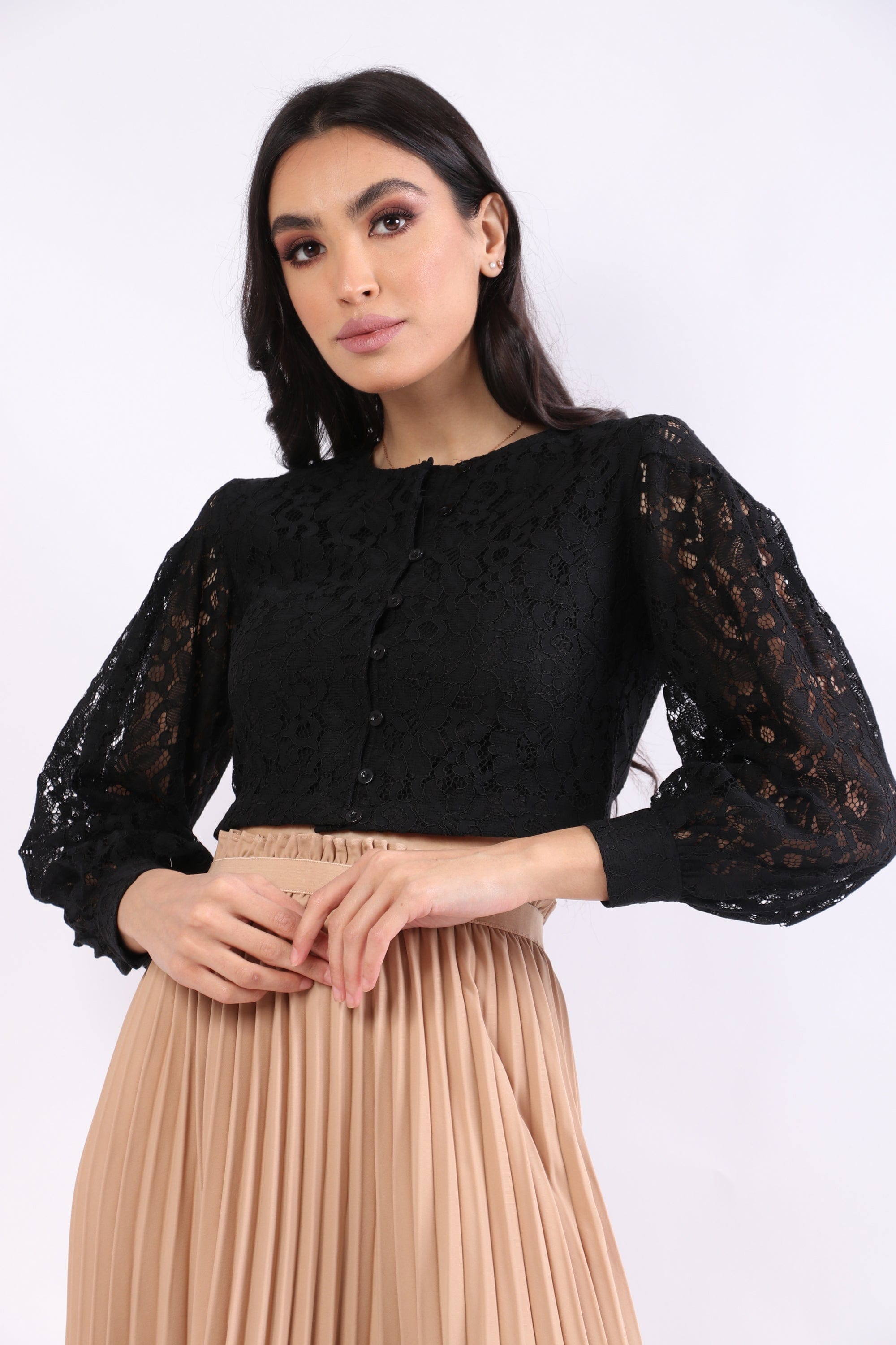 Enjoy elegance and gravity with a lace blouse text with front buttons and how long for women from Fashion. This blouse has a distinctive design that combines elegance and boldness, as the top is characterized by the wonderful lace fabric and the front buttons that give a charming touch to the look. In addition, long sleeves give a touch of elegance and femininity. The belly lace blouse is available with front buttons and long for women in great colors of black and off. Choose the color that fits your taste and get a great look on every occasion. Product number: GL182-21Q206
