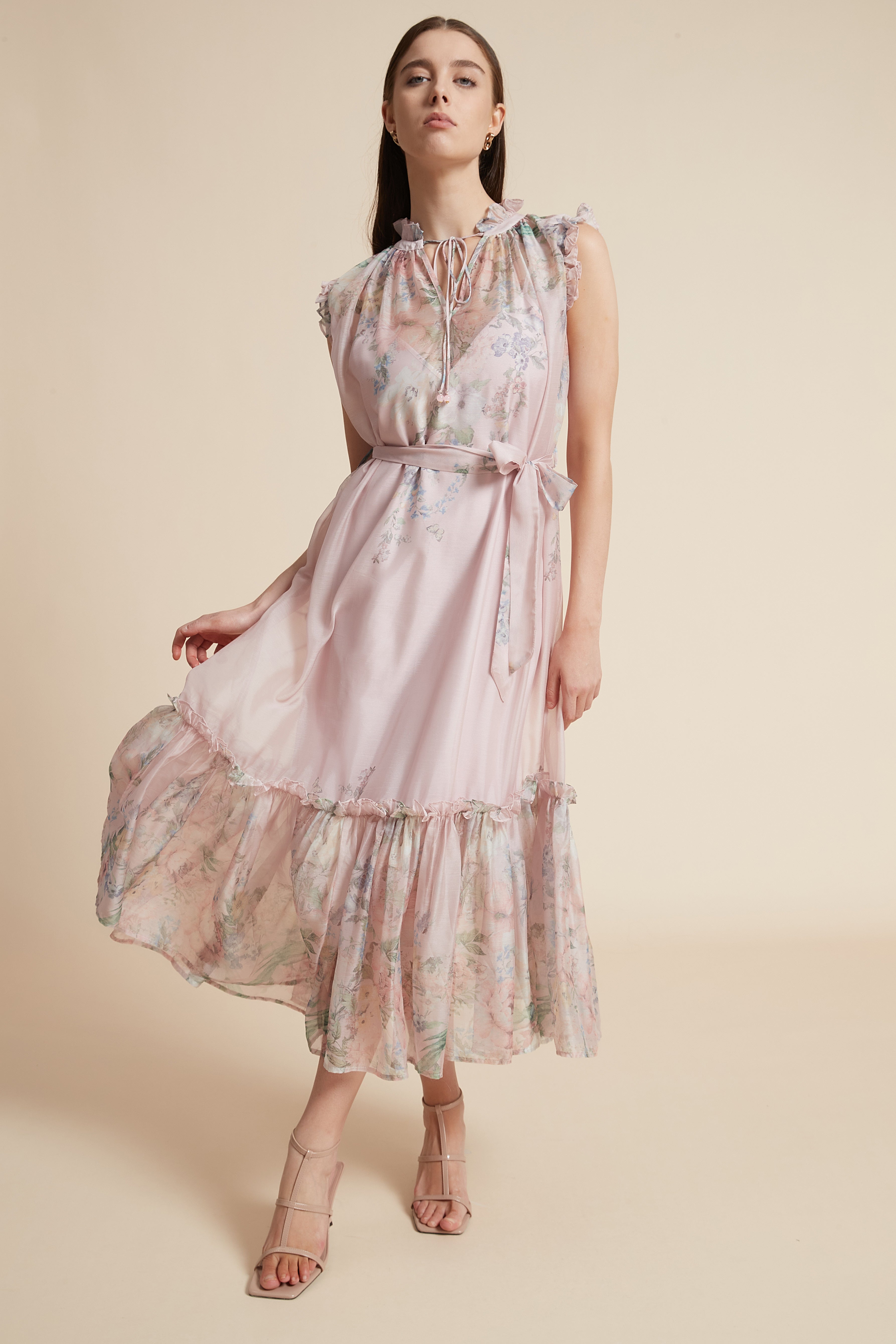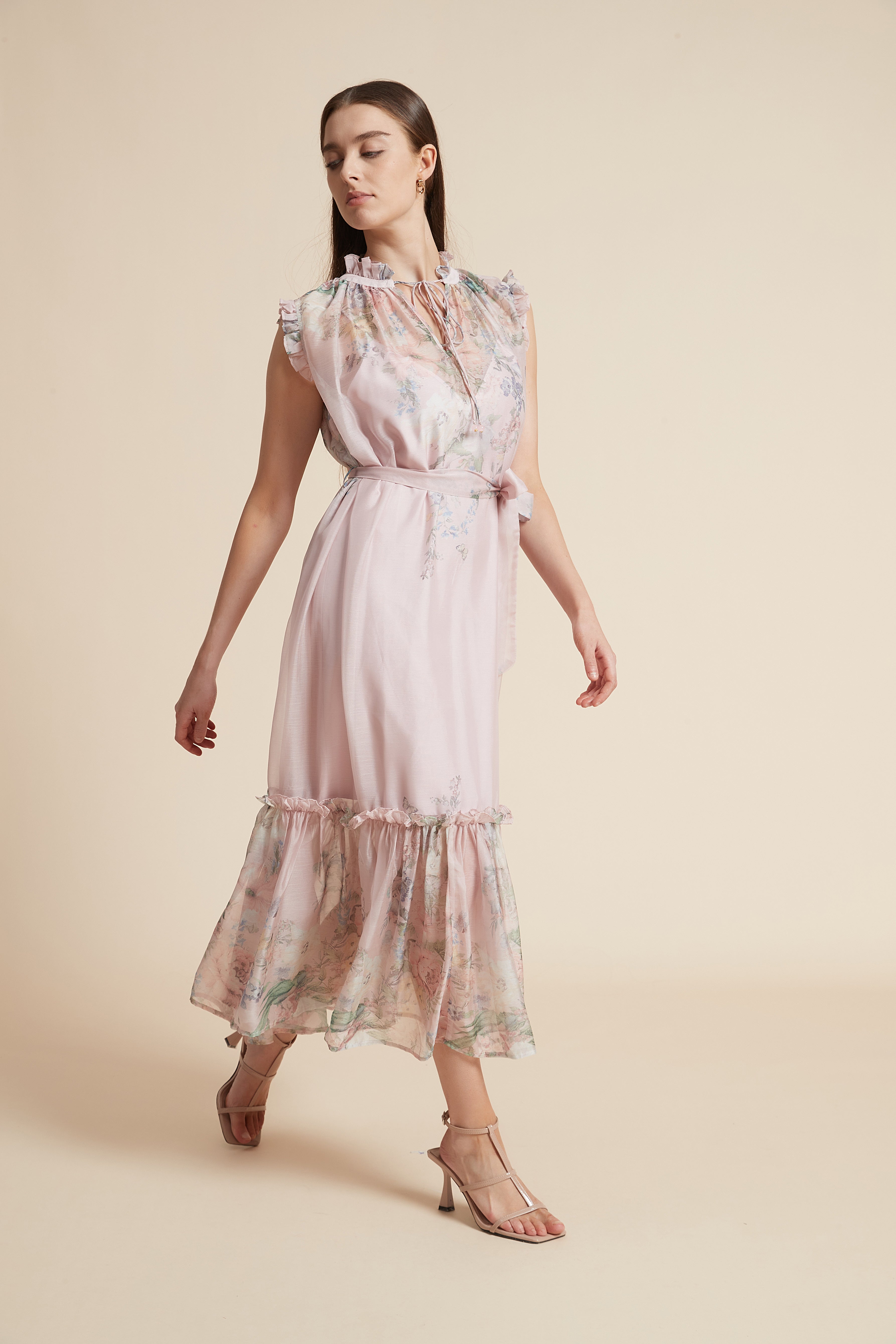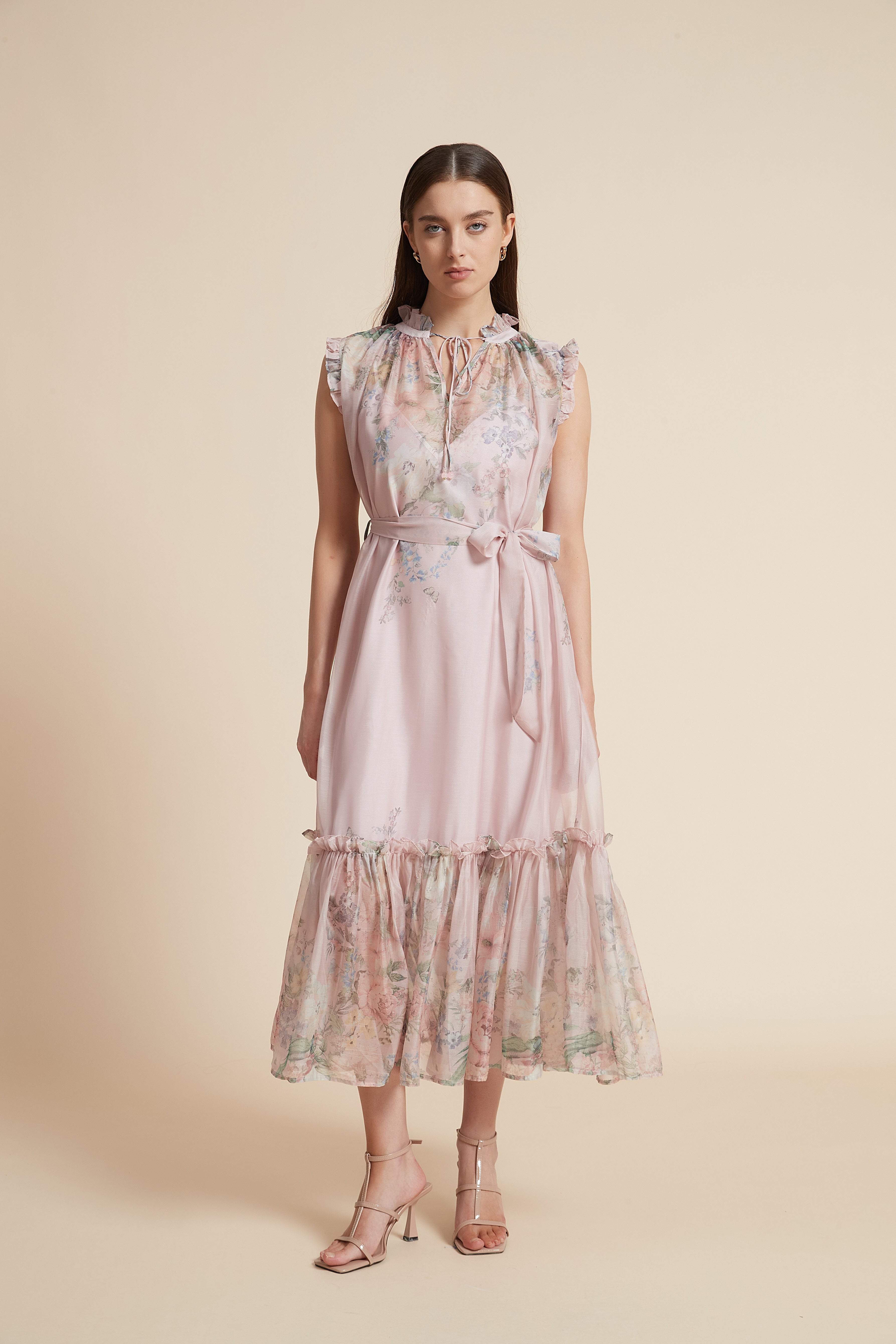 This Pink Floral Midi Belted Dress is a fresh staple that flatters and transitions effortlessly from weekend brunch to city strolls. The sleeveless A-line silhouette skims the waist before flowing into a midi hem, while the self-tie belt defines the waist for a polished, regular fit. A delicate pink floral pattern lends feminine charm, paired with a round neck for clean, wearable lines. Cut from a mid-weight, unlined fabric it breathes easily in spring and autumn and offers comfortable coverage without bulk. Pocketless construction keeps the skirt sleek and drape-forward. Versatile and easy to style—wear it solo with sandals for casual days, layer a light jacket for cooler weather, or elevate with heels and statement jewelry for relaxed evenings. Discover this must-have at Fashion SA and add it to your wardrobe today.