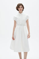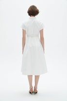 Fresh, polished and effortlessly professional, the White Solid Midi Belted Dress is a workwear essential that balances tailored structure with everyday comfort. Crafted in a 30% cotton, 70% polyester blend, this A-line silhouette offers breathable softness with wrinkle-resistant performance ideal for all seasons. The midi length and shirt collar create a refined profile, while short sleeves and a button-front closure keep the look crisp and practical. An included belt cinches the waist to enhance shape on a regular fit body, and the unlined, pocketless construction delivers a lightweight feel that's easy to layer. Medium-weight fabric holds its shape through long days at the office, client meetings or business lunches. Shop this smart office piece at Fashion SA and elevate your work wardrobe—add it to your cart for polished, low-maintenance style.