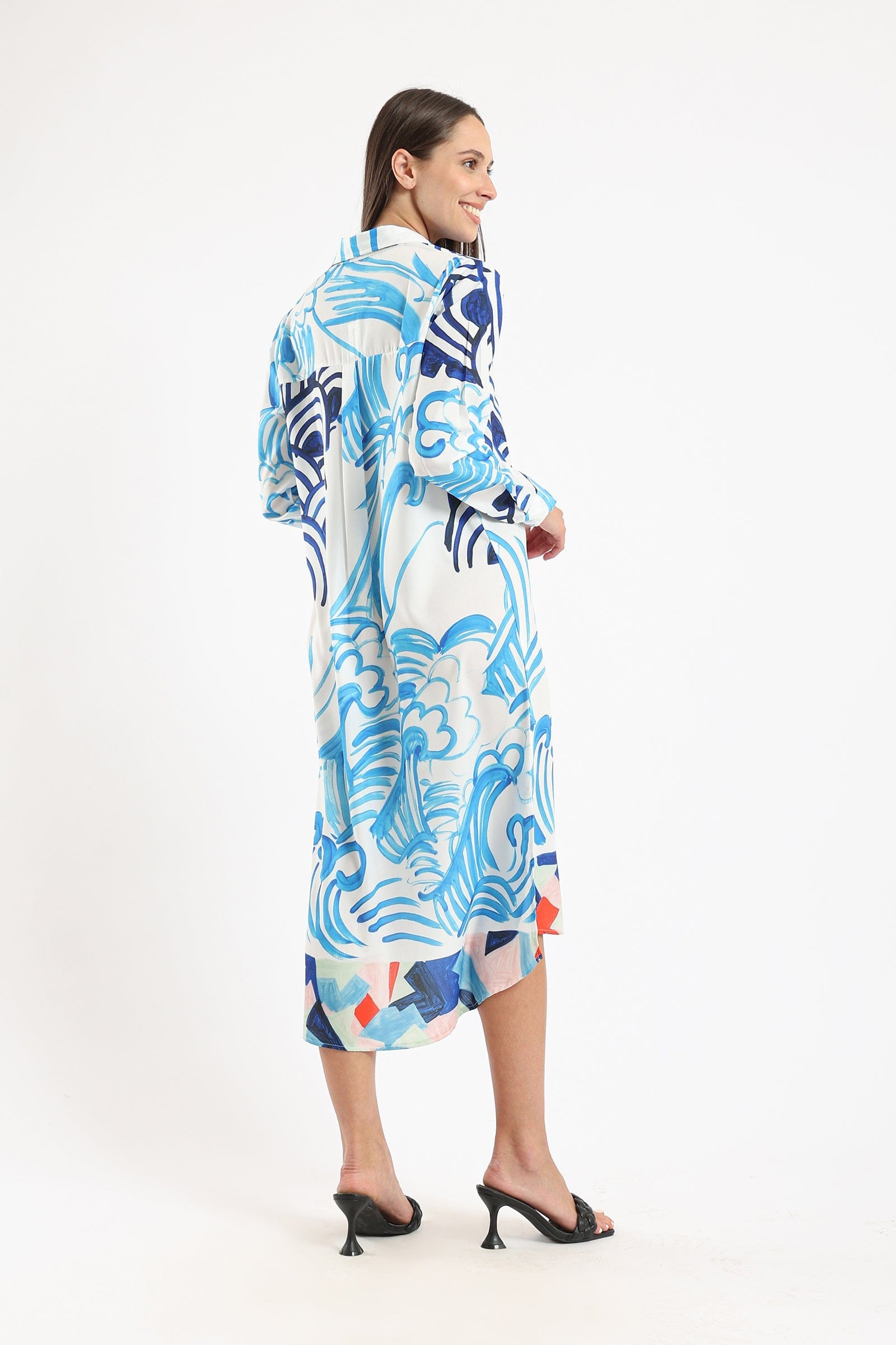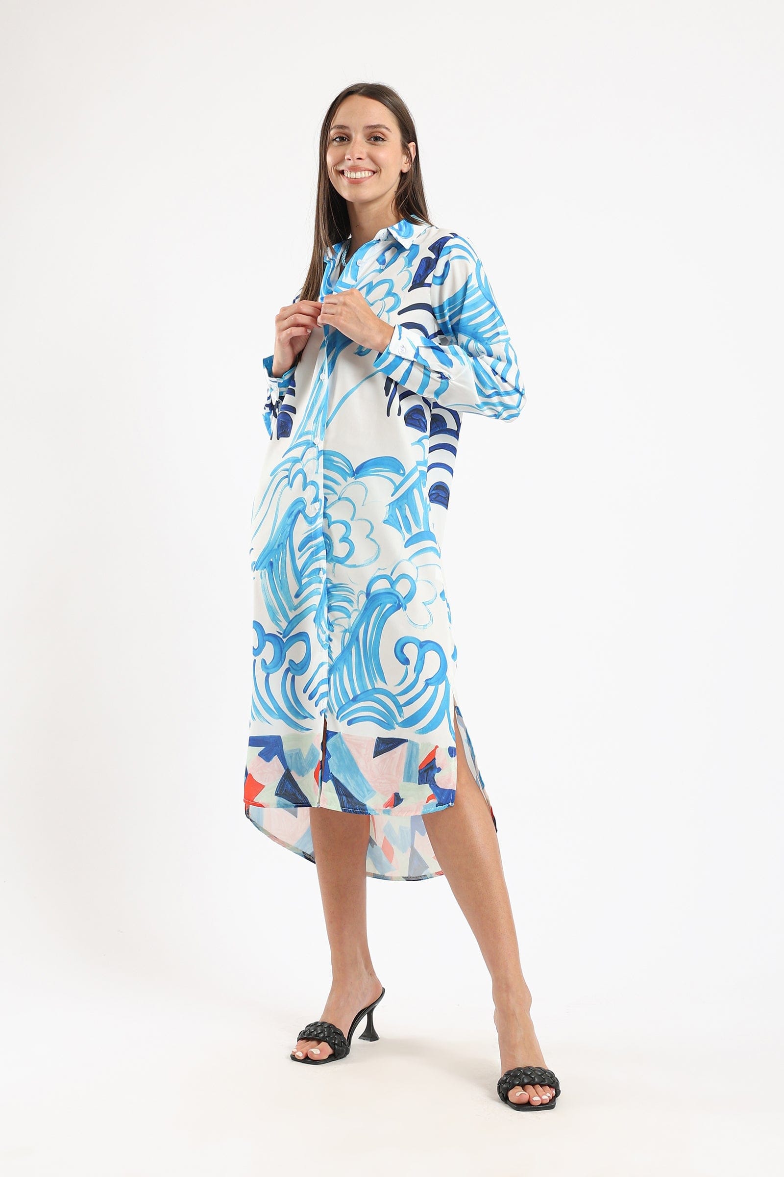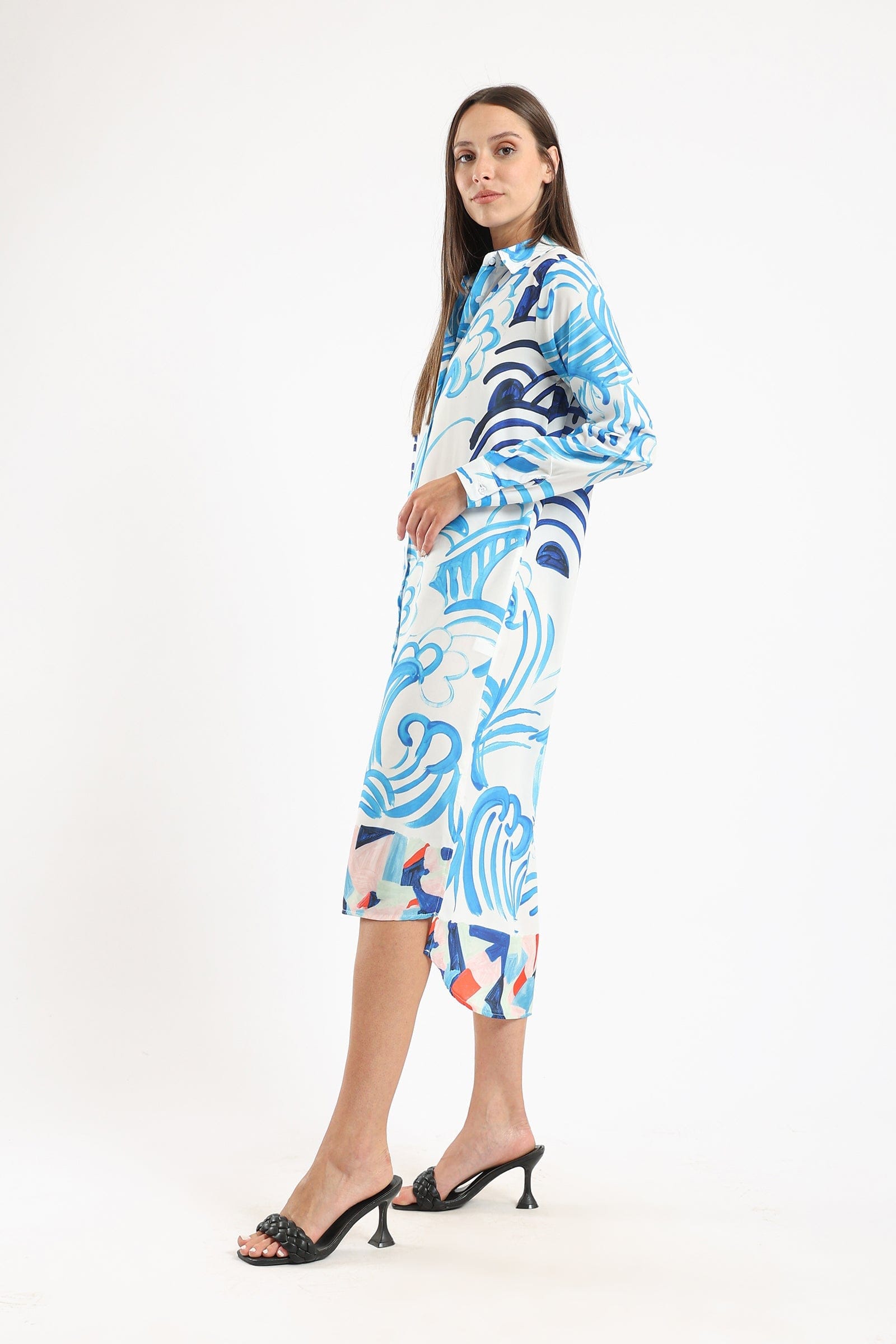 Make a vibrant statement in the Multicolor Abstract Midi Long-Sleeve Dress — a chic, easygoing silhouette that brings modern artistry to your everyday wardrobe. Crafted from a soft polyester-blend for wrinkle resistance and effortless drape, this loose-fitting midi features an eye-catching abstract print, shirt collar and smart button-through closure for polished detail. Long sleeves and a relaxed, beltless profile deliver comfortable coverage and breathable movement ideal for spring and autumn days. The midi length flatters most figures while the loose silhouette lets you layer or cinch at the waist with your own belt for instant definition. Perfect for casual weekends, creative office settings or city strolls, this versatile piece adds color and confidence to every look. Discover it now at Fashion SA — shop and style your new go-to wardrobe staple.