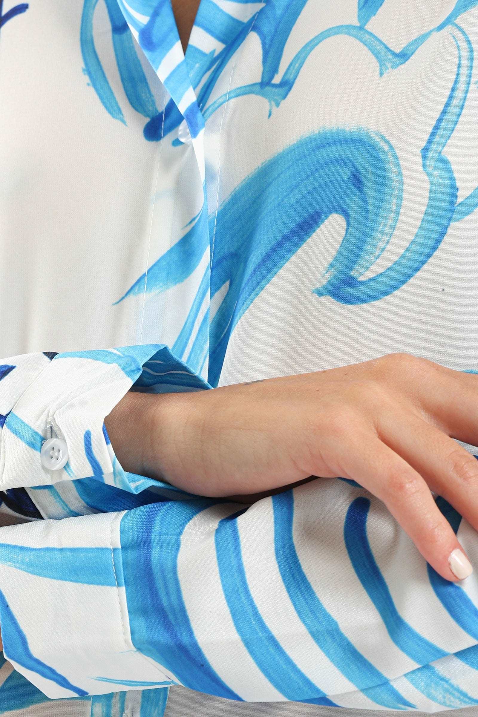 - Long sleeves with shirt collar and button-through closure for a refined, wearable finish