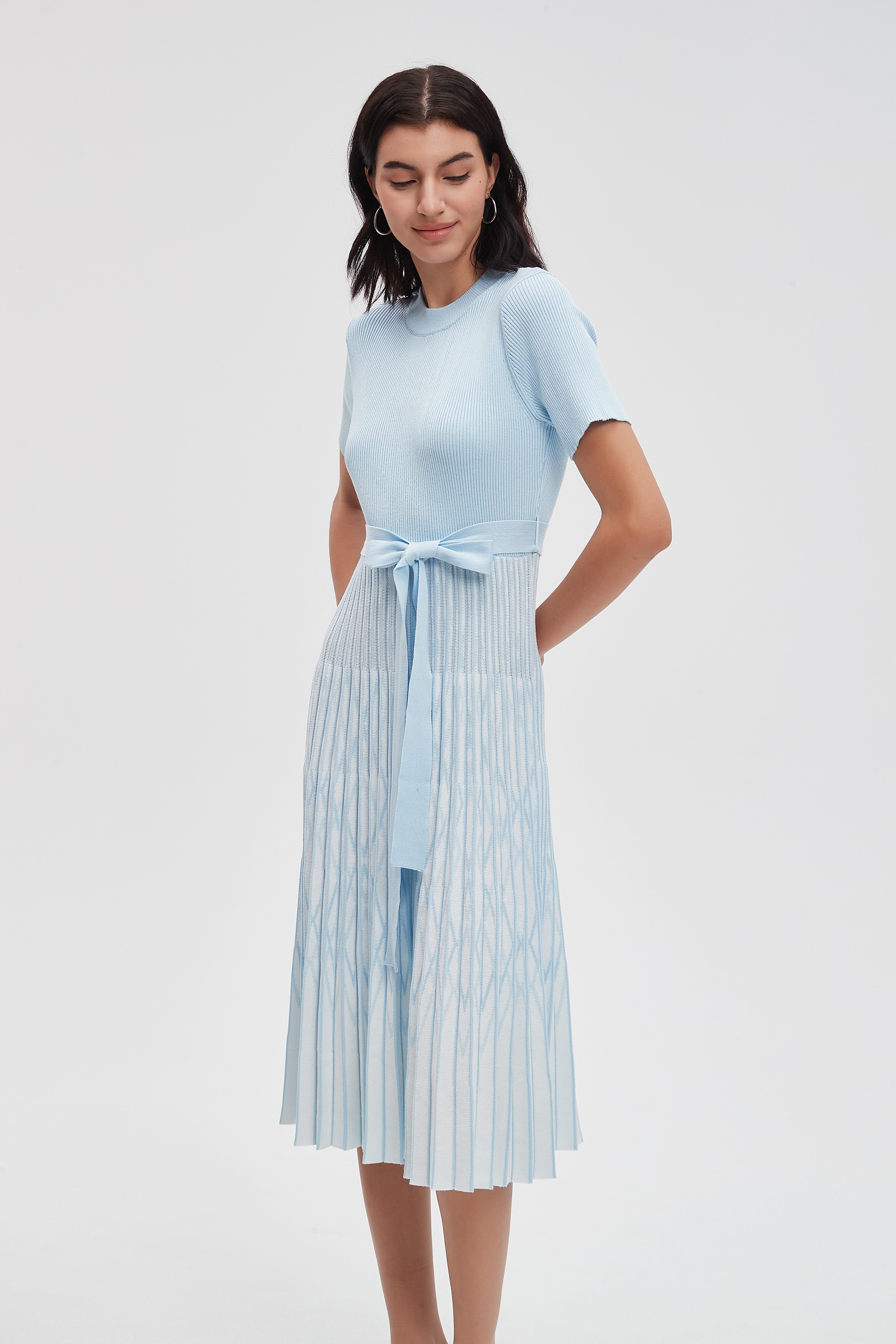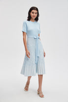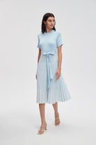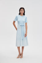 Make a fresh, feminine statement in the Light Blue Patterned Midi Dress — a flattering A-line that balances polish with everyday ease. Designed in a medium-weight, breathable fabric with a subtle patterned print, this midi-length dress skims the body in a regular fit and defines the waist with an included self-tie belt. Short sleeves and a classic crew neck offer comfortable coverage for spring and autumn days, while the pocketless design keeps the silhouette clean and streamlined. The midi length is ideal for pairing with sandals, sneakers or ankle boots, taking you from casual brunches to smart-casual workdays. Shop this versatile piece from Fashion SA and add a wardrobe staple that combines comfort, structure and feminine charm — grab yours now. Order today for effortless seasonal style.
