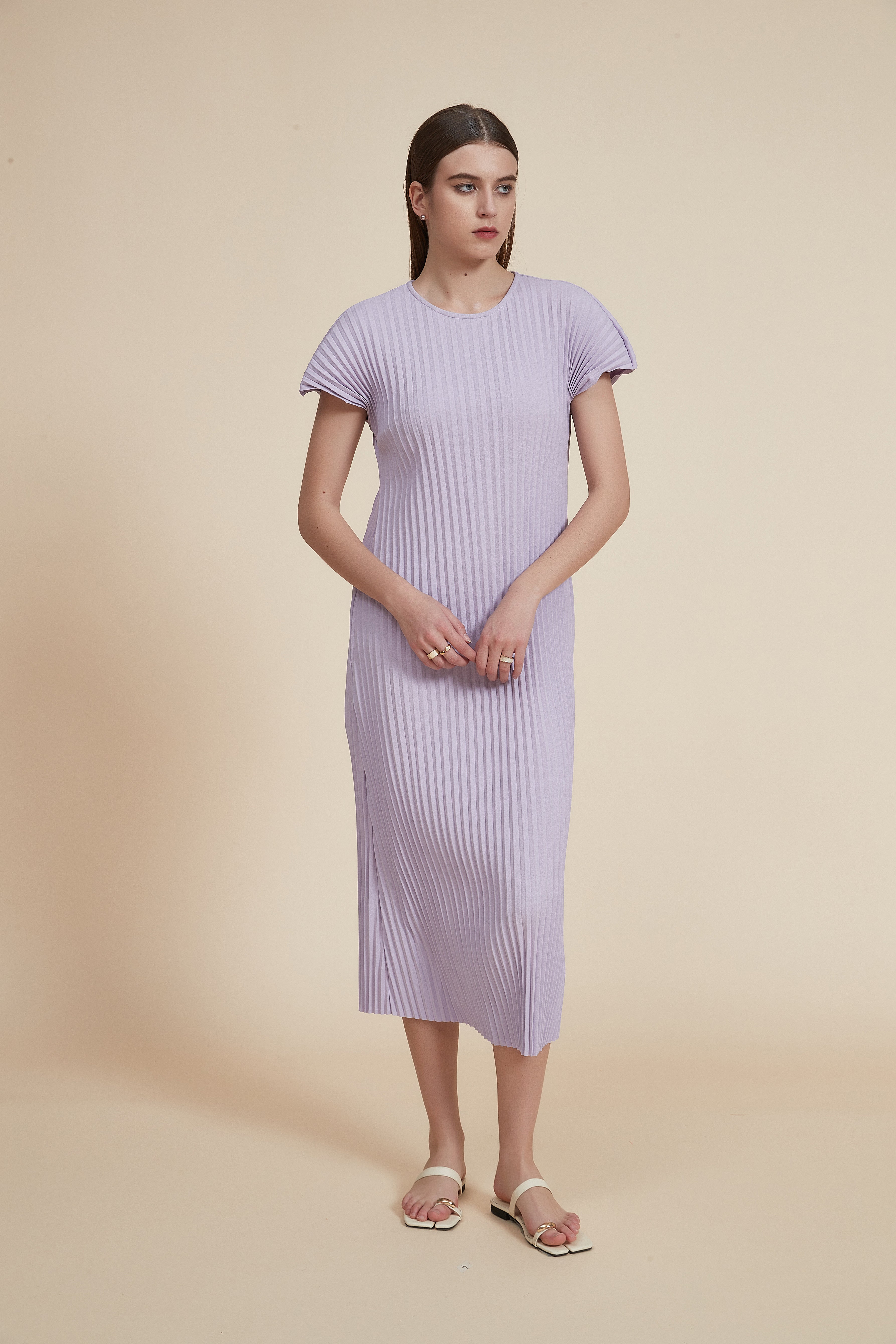 This lilac plain midi dress is your go-to for effortless, all-season style—clean lines and comfortable wear combine for a polished casual look you'll reach for again and again. Cut in a straight silhouette with a modest round neck and short sleeves, the regular-fit design skims the body without clinging, while the 95% polyester/5% elastane blend offers wrinkle-resistant ease and gentle stretch for freedom of movement. The unlined, pocketless construction keeps the midweight fabric breathable yet structured through day-to-night transitions. Midi length lends elegant coverage that pairs equally well with sneakers for weekend ease or block heels and a blazer for a relaxed office vibe. Available in soft lilac to brighten your wardrobe, this versatile piece from Fashion SA is simple to style—add it to your cart and enjoy effortless dressing.