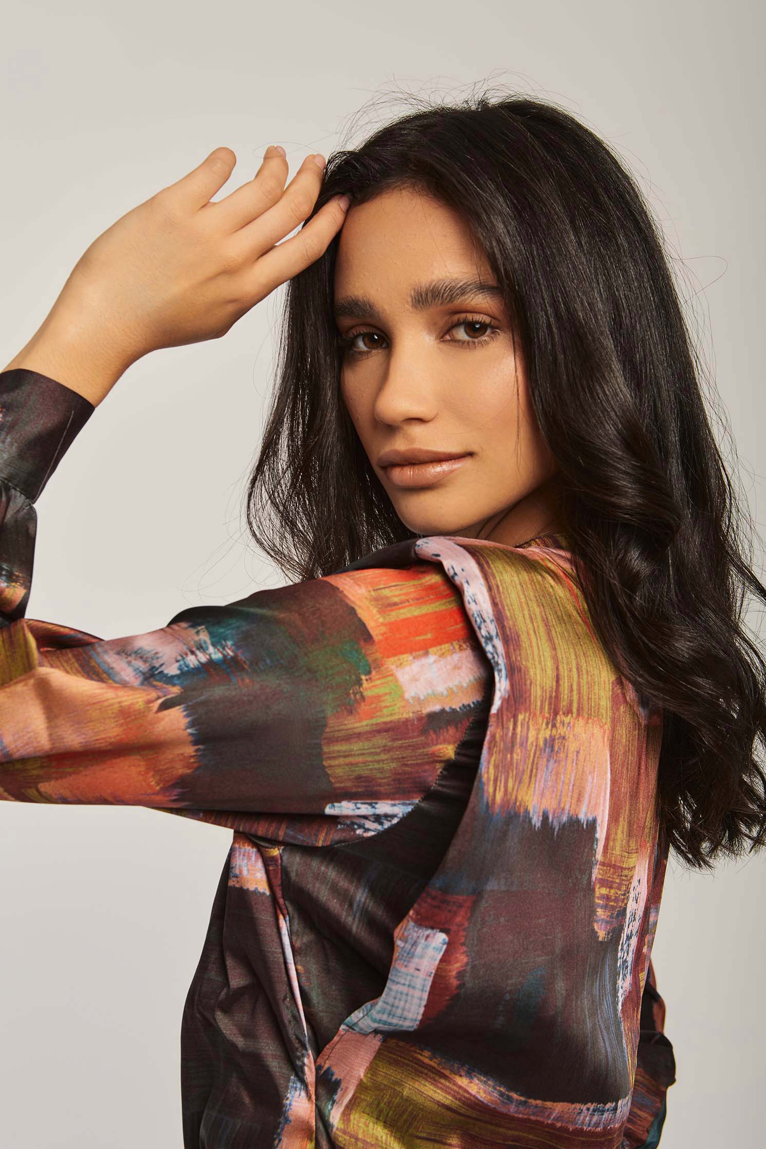 - Multicolor abstract pattern adds bold, fashion-forward appeal