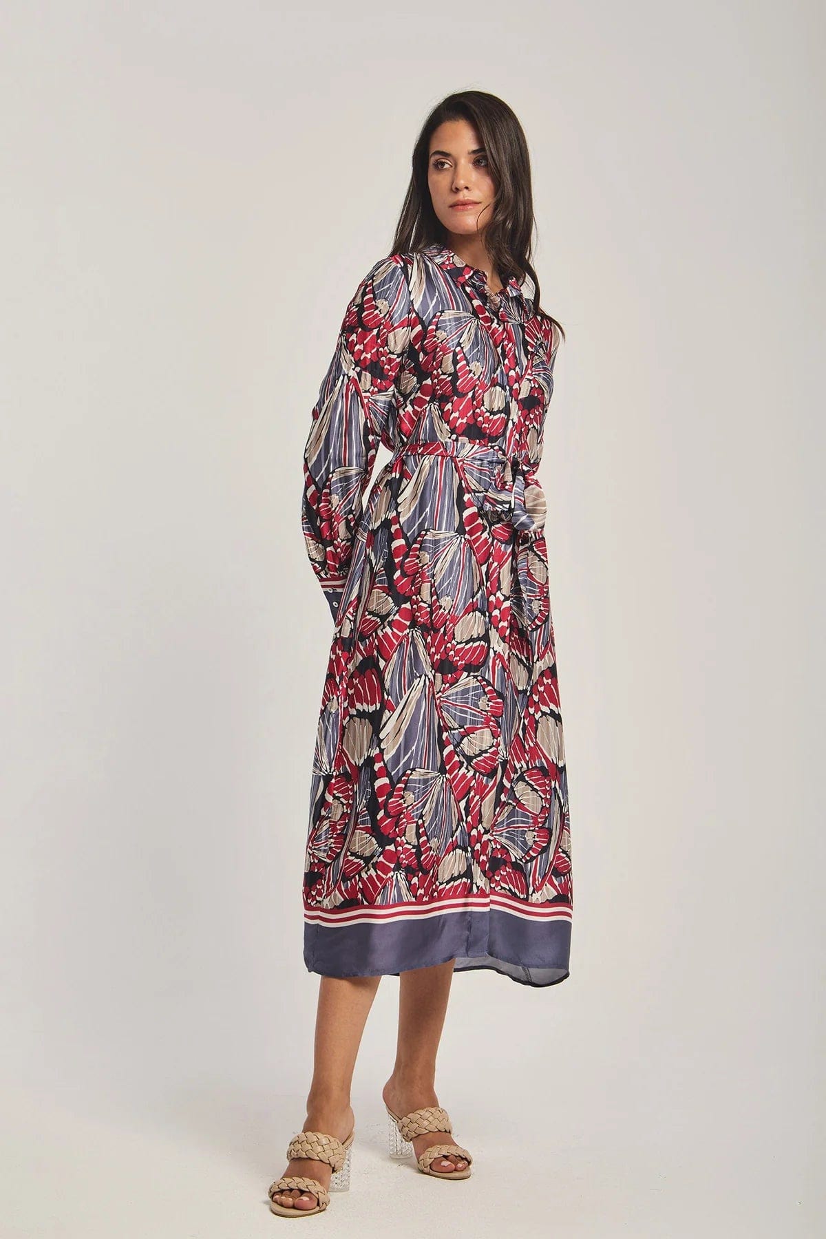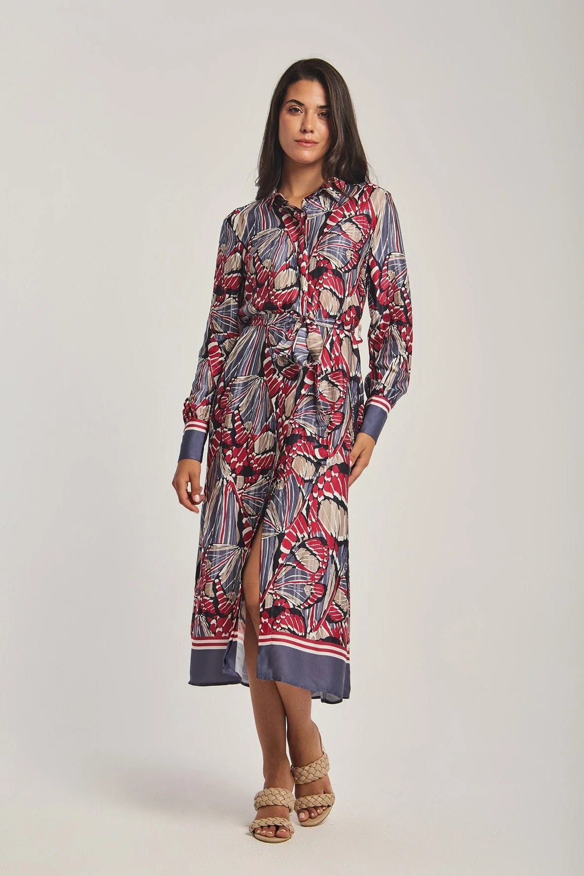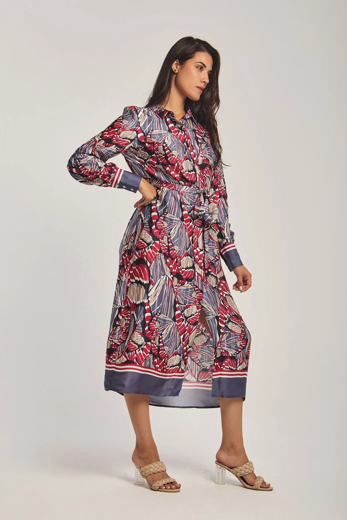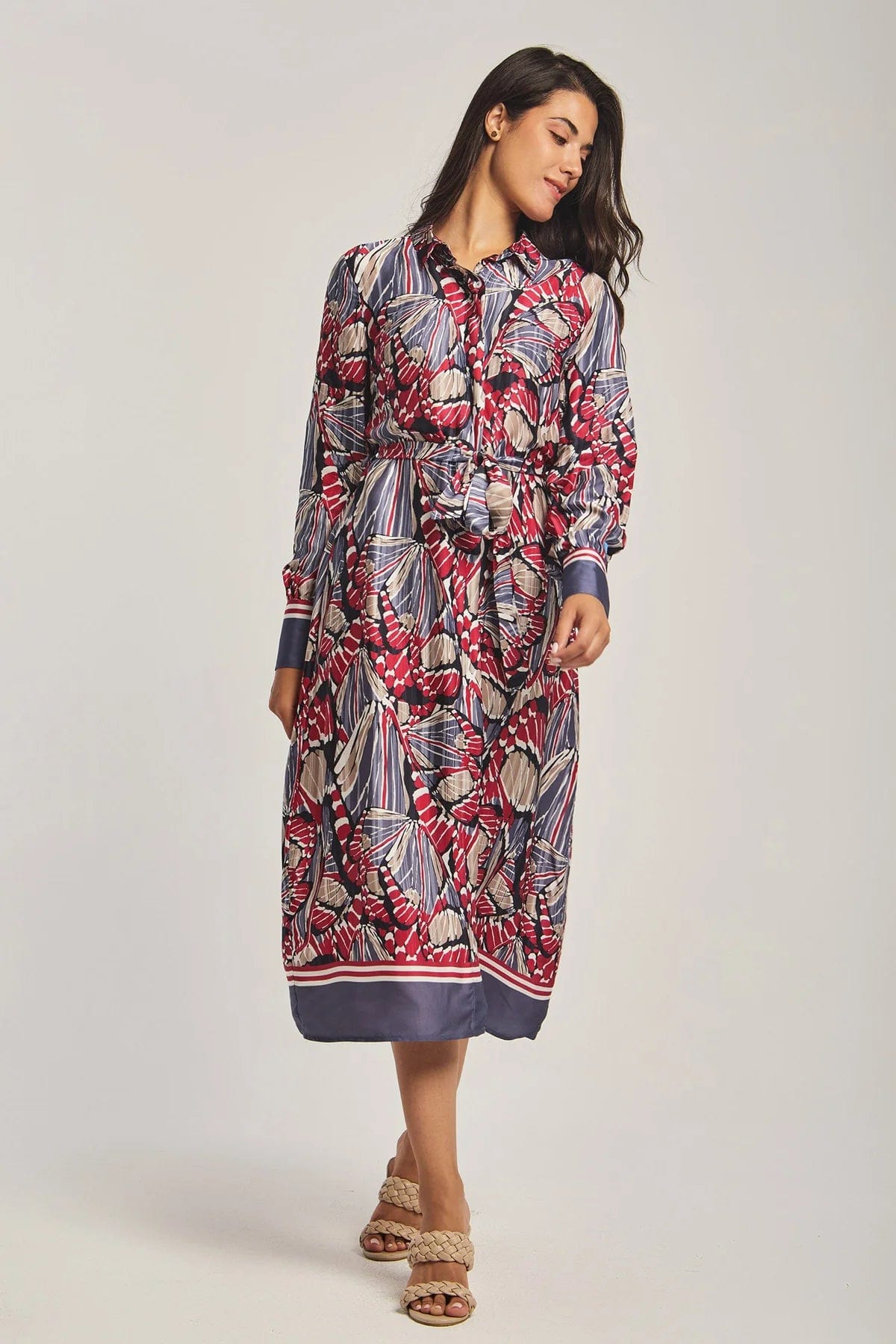 This multicolor abstract midi belted dress delivers modern polish with everyday ease — the perfect go-to for spring and autumn casuals. Cut in a flattering A-line silhouette, the midi length skims the calf to create an elongated, versatile profile while long sleeves and a crisp shirt collar add structured coverage. Crafted from a medium-weight polyester-blend that resists wrinkles and drapes smoothly, the dress offers comfortable, regular-fit wear with a self-tie belt to define the waist and a button-front closure for tailored detail. The abstract multicolor pattern reads contemporary and effortless, easily transitioning from coffee dates to weekend errands. Shop this Dalydress favorite at Fashion SA and add a polished, low-maintenance staple to your rotation — buy now with free returns within 3 days.