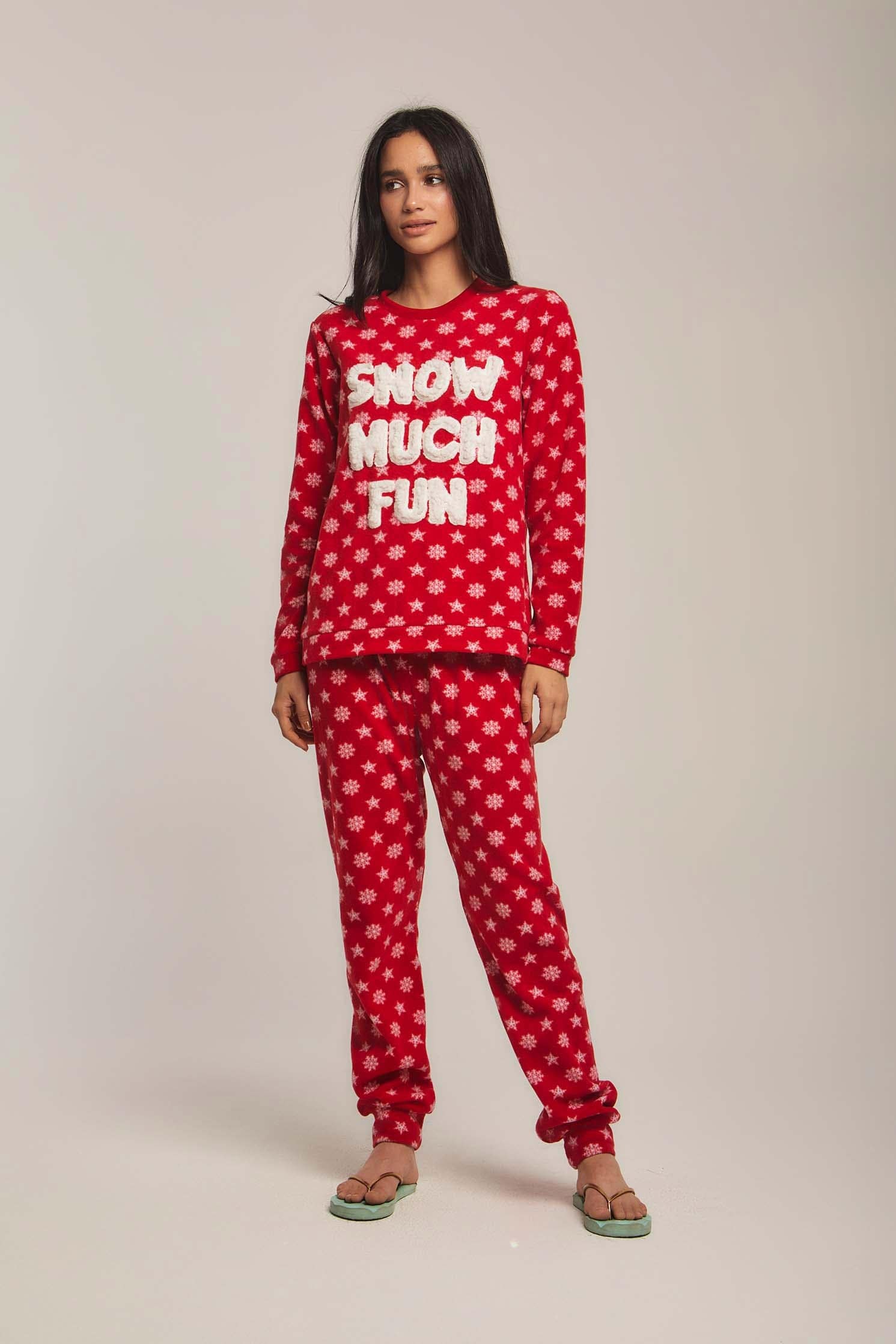 Get ready to relax in women's signature snow-style pajamas from DalyDress. This pajama is beautifully designed and modern, and is available in a gorgeous red color that adds a touch of elegance to your look. Made of high-quality materials that provide maximum sleep comfort. This pajama comes with a long-sleeved shirt and comfortable pants. Enjoy comfort and style in every moment. Get now a red snow pattern women's pajamas from Fashion Saudi Arabia and get ready to relax in your own style. Order now and enjoy the most beautiful fashion from Fashion Saudi Arabia! Manufacturer No: 240466301098