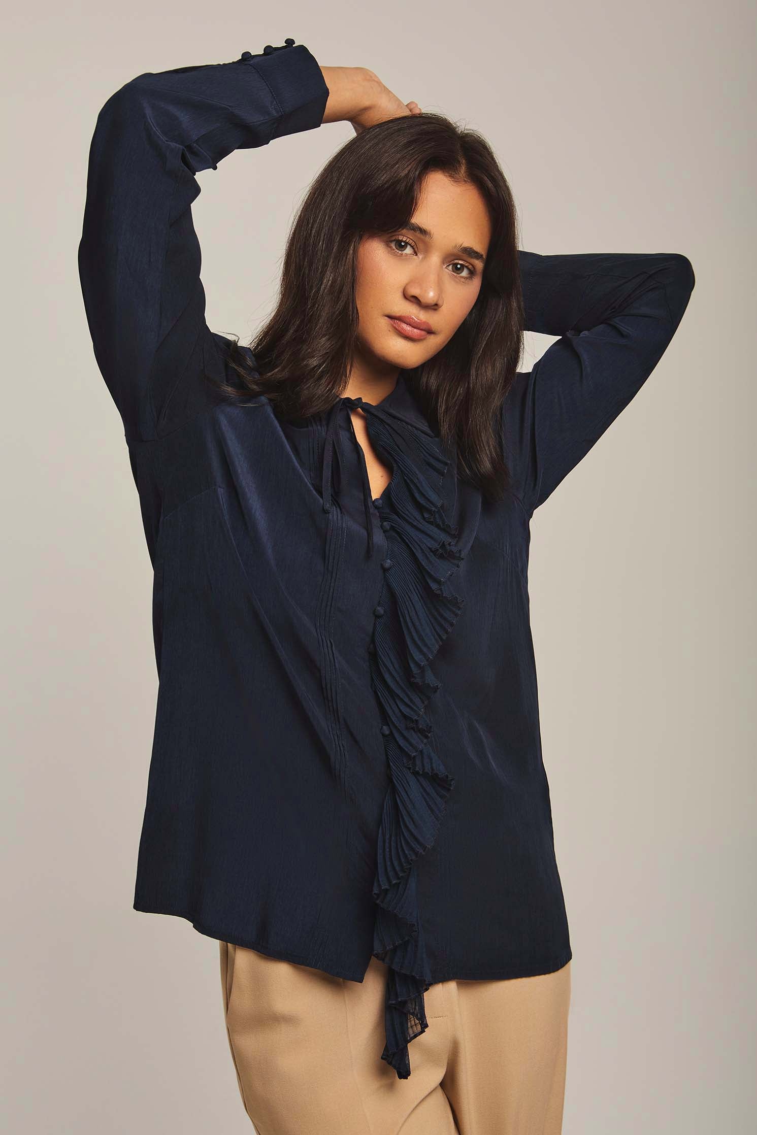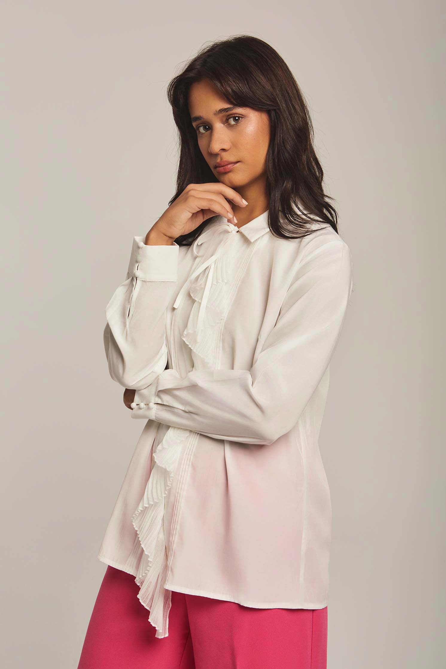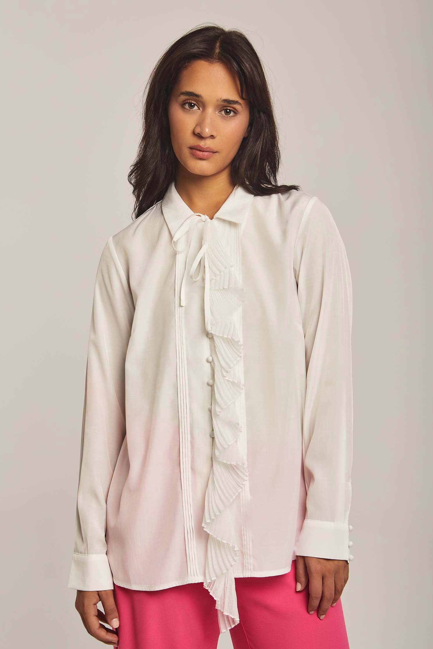 Get ready to shine with a women's blouse with ruffles along the middle of DalyDress. This blouse is available in three gorgeous colors: Orchid Black, Deep Pink, and Off White. This blouse is designed with great elegance and its meticulous details add a beautiful touch to your look. It's cut to a mid-length ruffle for a chic finish. Wear it with jeans or pants for a trendy look for all occasions. Get now a women's blouse with cornices along the middle of DalyDress Get ready to shine in your own style. Order now and enjoy the most beautiful fashion from Fashion Saudi Arabia. Manufacturer No: 240542142370