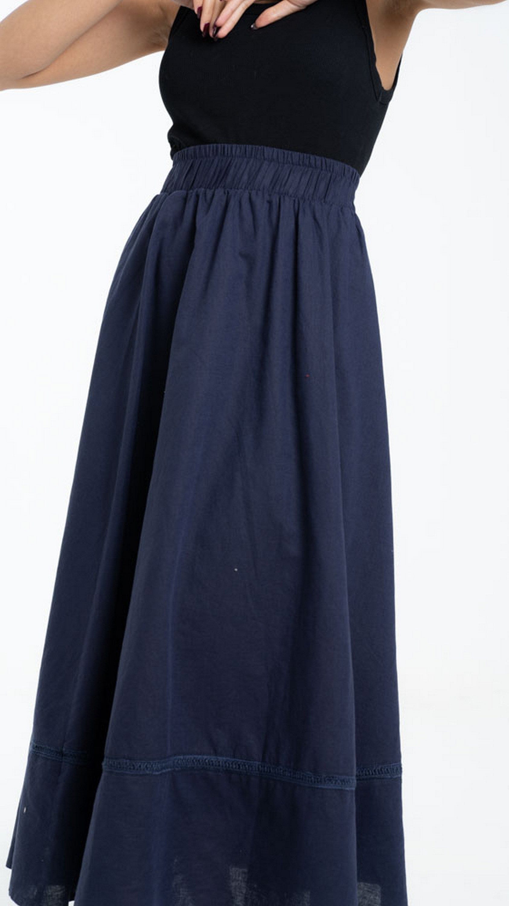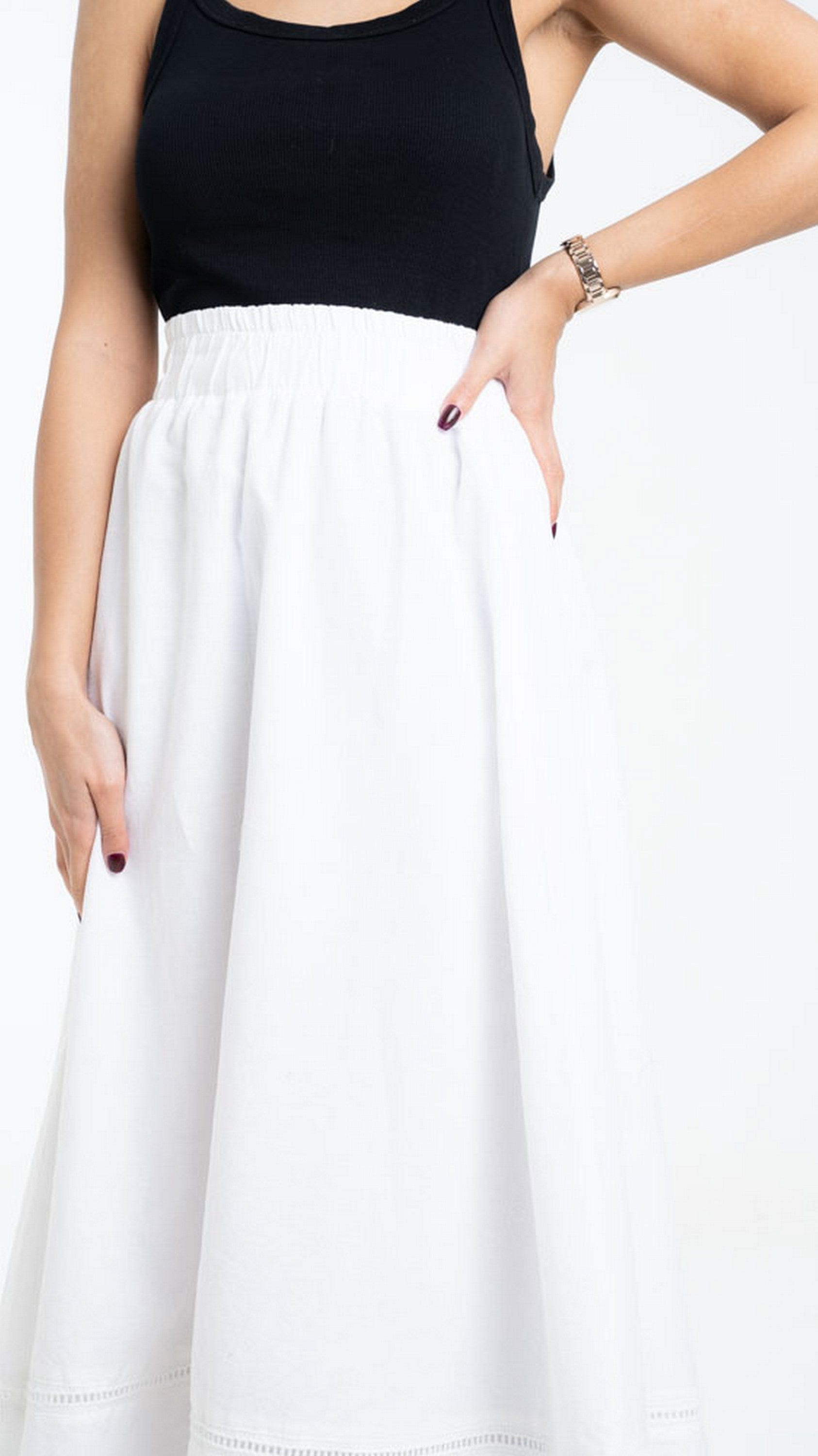 Get ready to shine in a long plain flared skirt with a stripe at the bottom for women DalyDress. This skirt is available in a variety of colors: black and white. This piece is designed with great elegance and is suitable for all times. It's cut for a loose cut that adds a touch to your look, and has a gorgeous line at the bottom for added appeal. Wear it with shirts or blouses for a conservative and elegant look. Get now a long plain flared skirt with a stripe at the bottom of women DalyDress Be elegant and radiant for every occasion. Order it now through Fashion KSA and enjoy our most beautiful outfits. Product No: 240-564-302-641