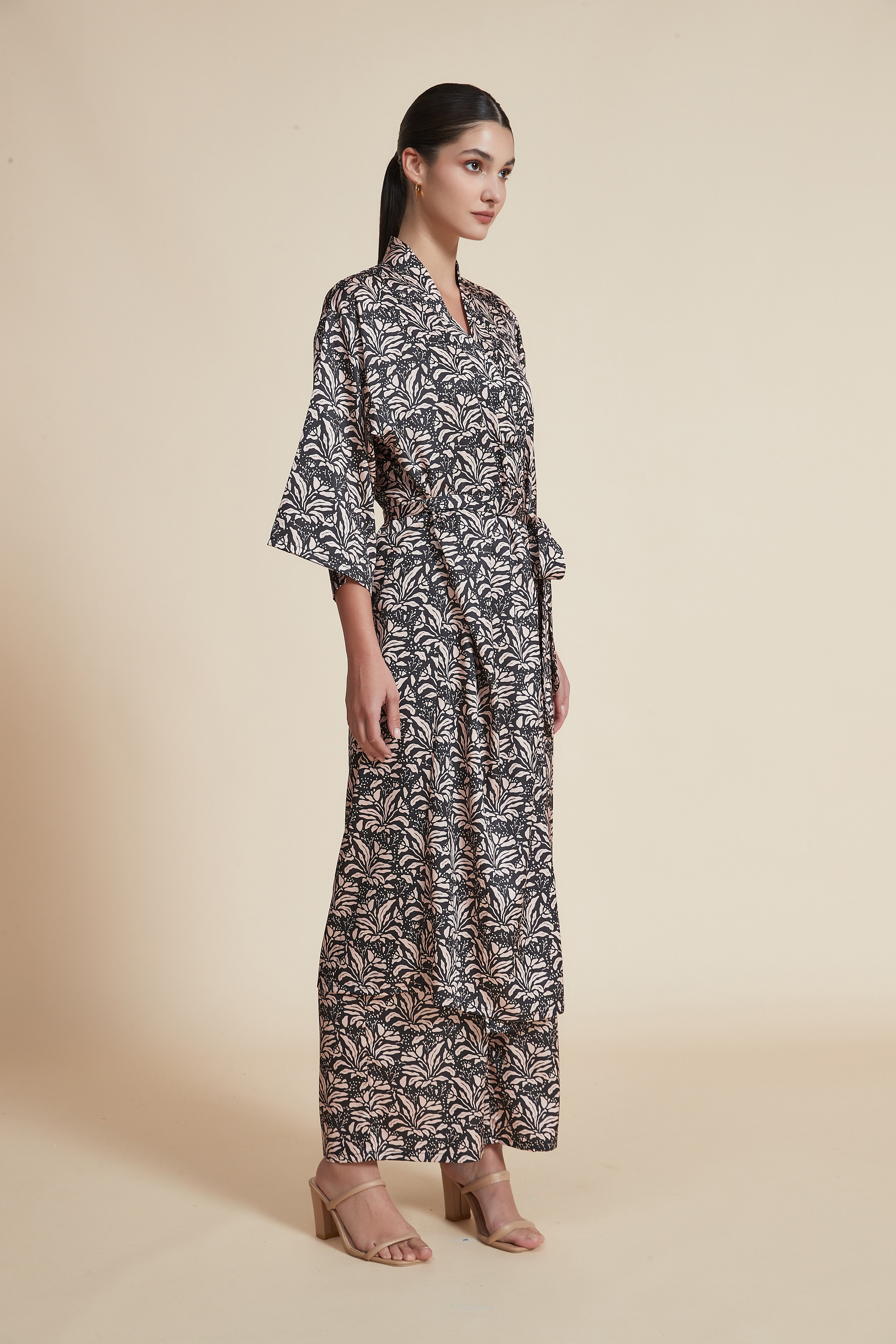 - Styling: For casual days pair with flat sandals and a denim jacket; elevate for evening with strappy heels, statement earrings and a slim clutch—belt it higher for a more defined waist.